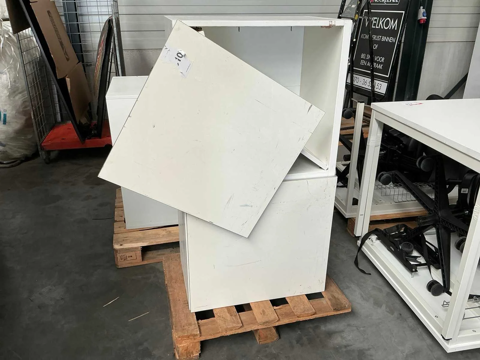 5 tafels met vaste poten, 4bureaustoelen , 1deur van kastje is kapot