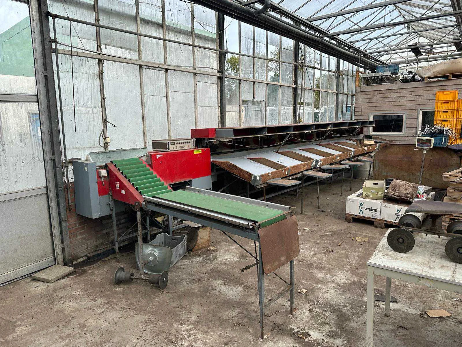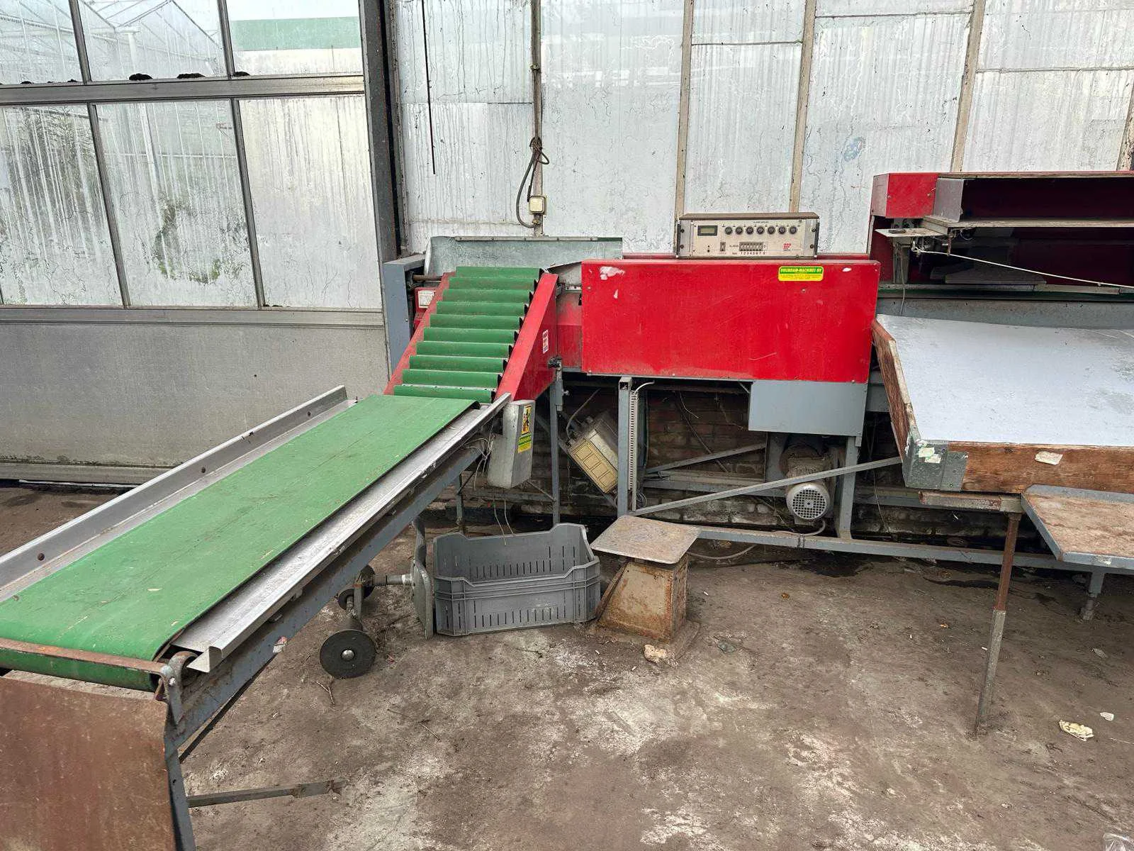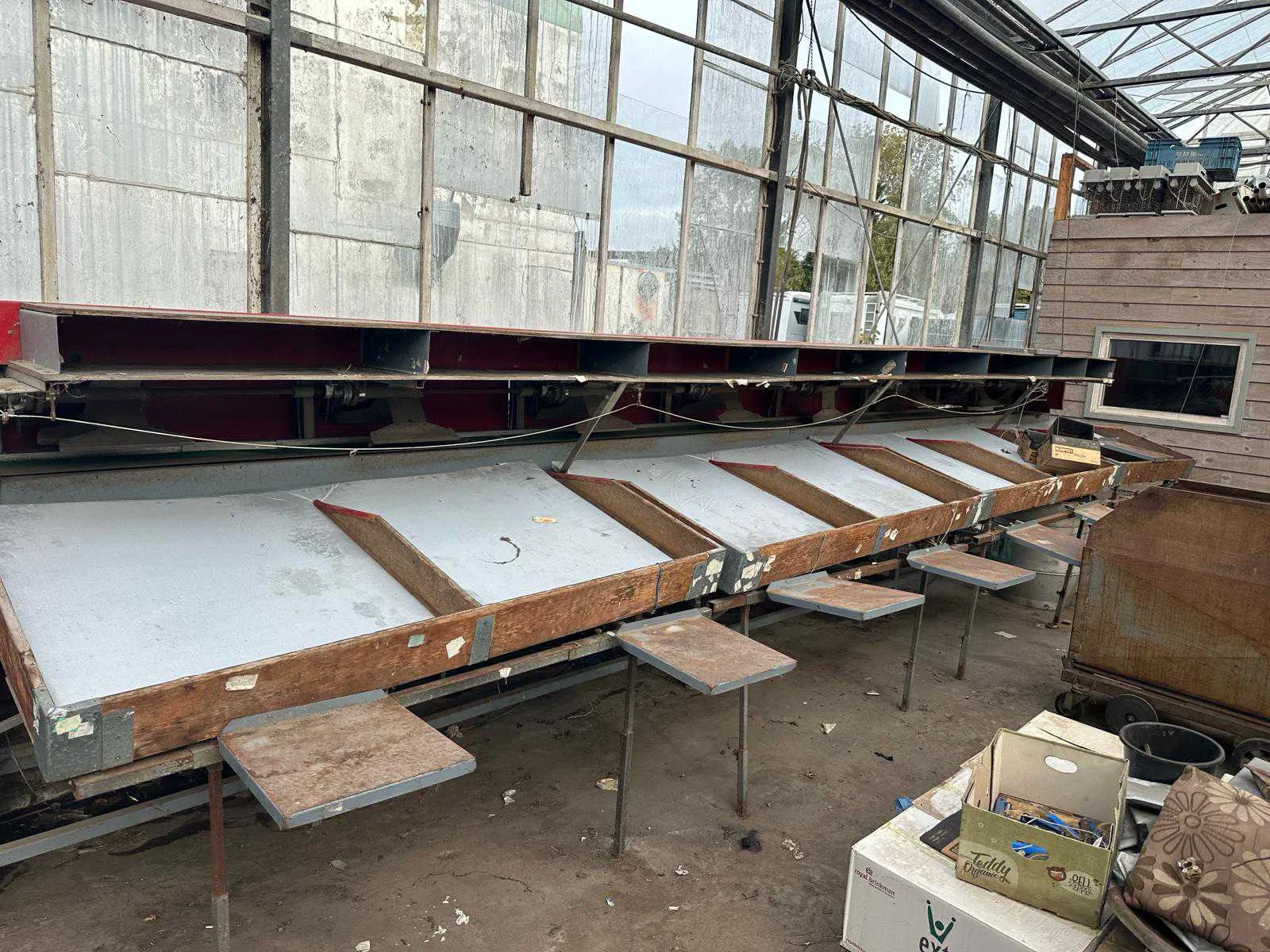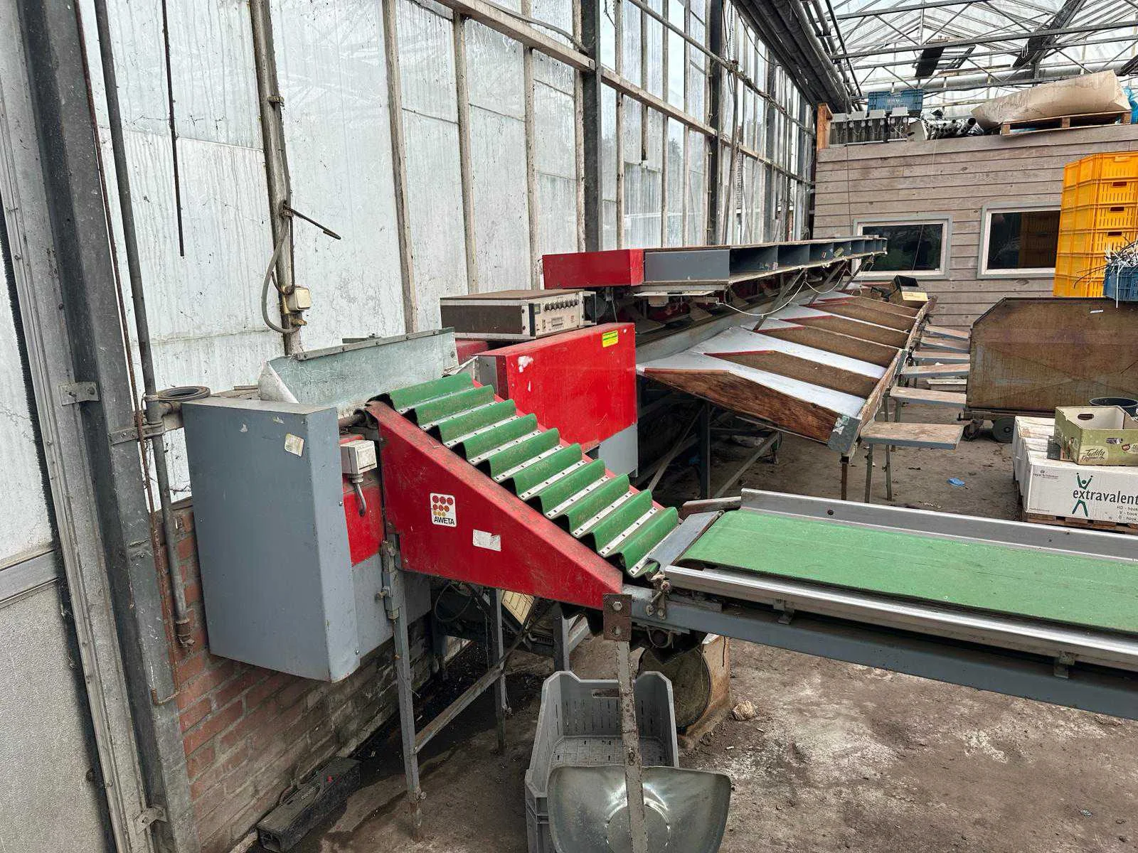 Uitgangsbakken zijn in huidige staat niet meer in te zetten, inclusief beschadigde bakken Merk: Aweta Type: E 8 Aansluiting: 380V Totale afmeting L: 8400mm Totale afmeting Breedte: 900mm Totale afmeting Hoogte: 1700mm