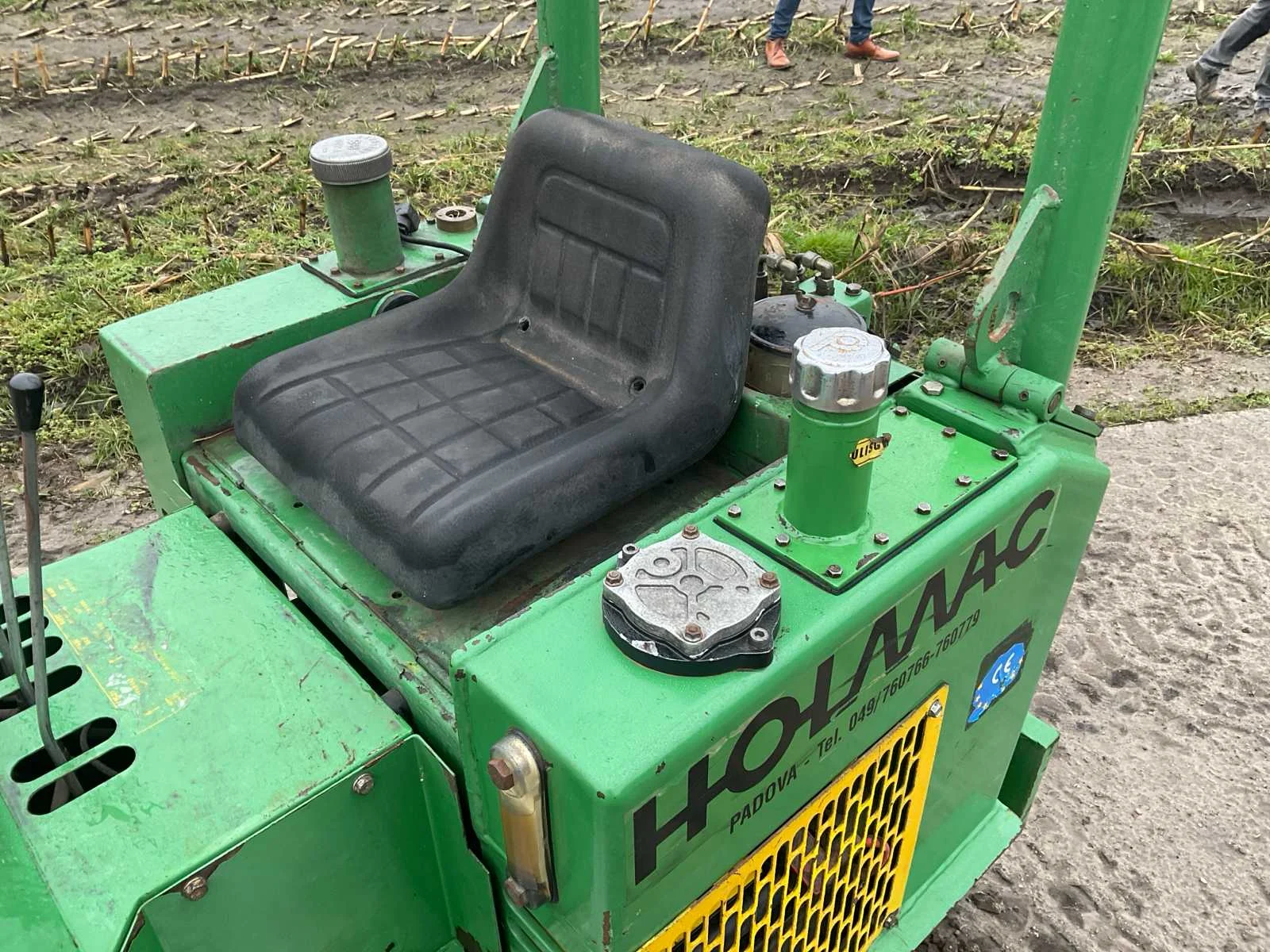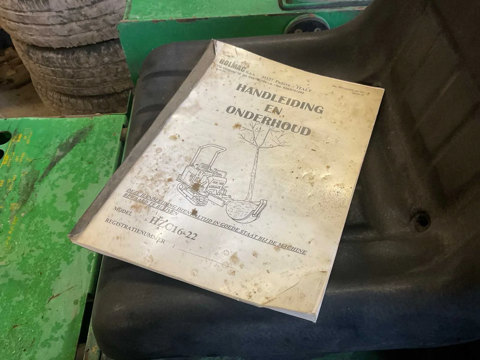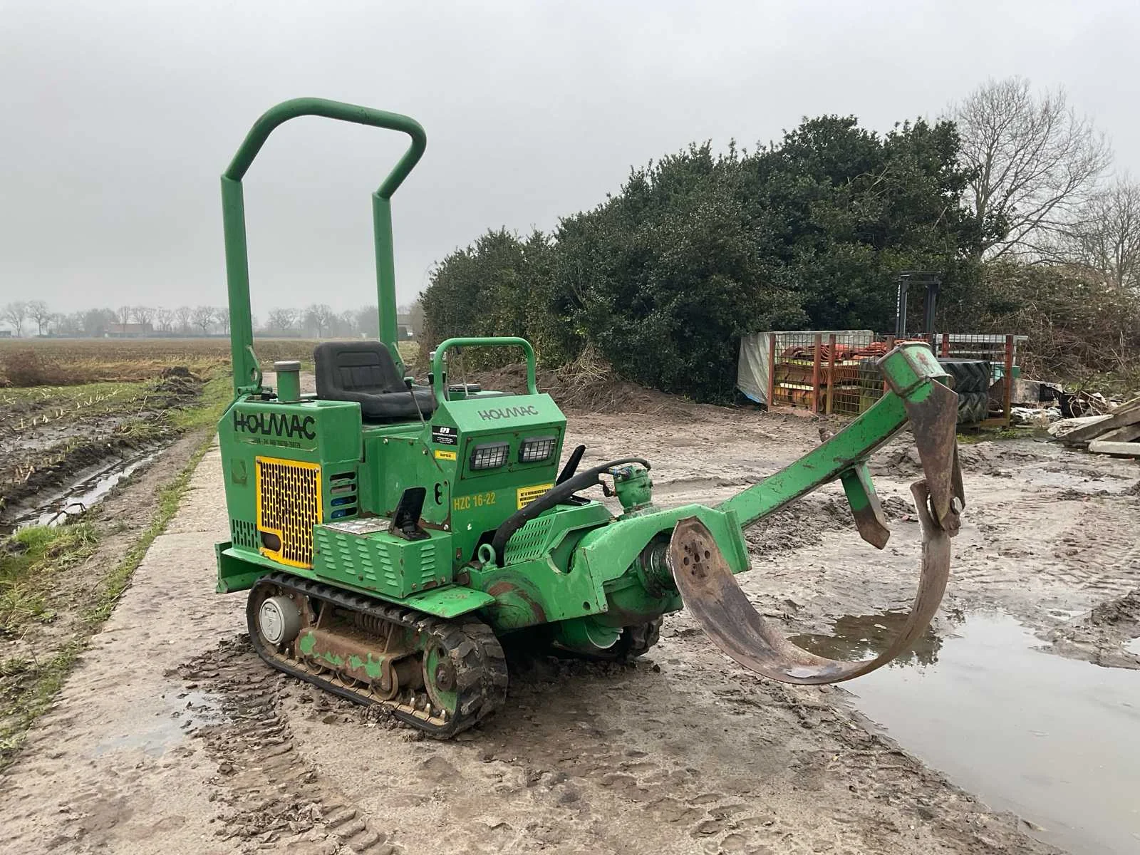 Max snelheid: 3,6 km/h, voorzien van: hydraulische rooier (700mm gemonteerd), rupsonderstel (rupsbreedte 170mm), veiligheidsbeugel, reservemessen (600, 500 en 400mm), hydraulisch afstempel bord, trilfunctie, rijmotoren vervangen in 2018, Merk: Holmac Type: HZC 16-22 Serienummer: 98040688 Bouwjaar: 1998 Motorvermogen (kW): 12kW Type motor: Lombardini 3-cilinder Brandstof: diesel Afgelezen urenstand: 1734hr Totale afmeting L: 2850mm Totale afmeting Breedte: 1000mm Totale afmeting Hoogte: 1980mm