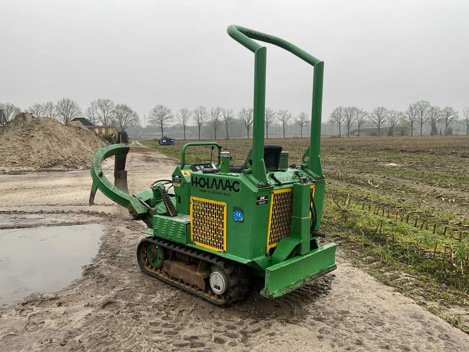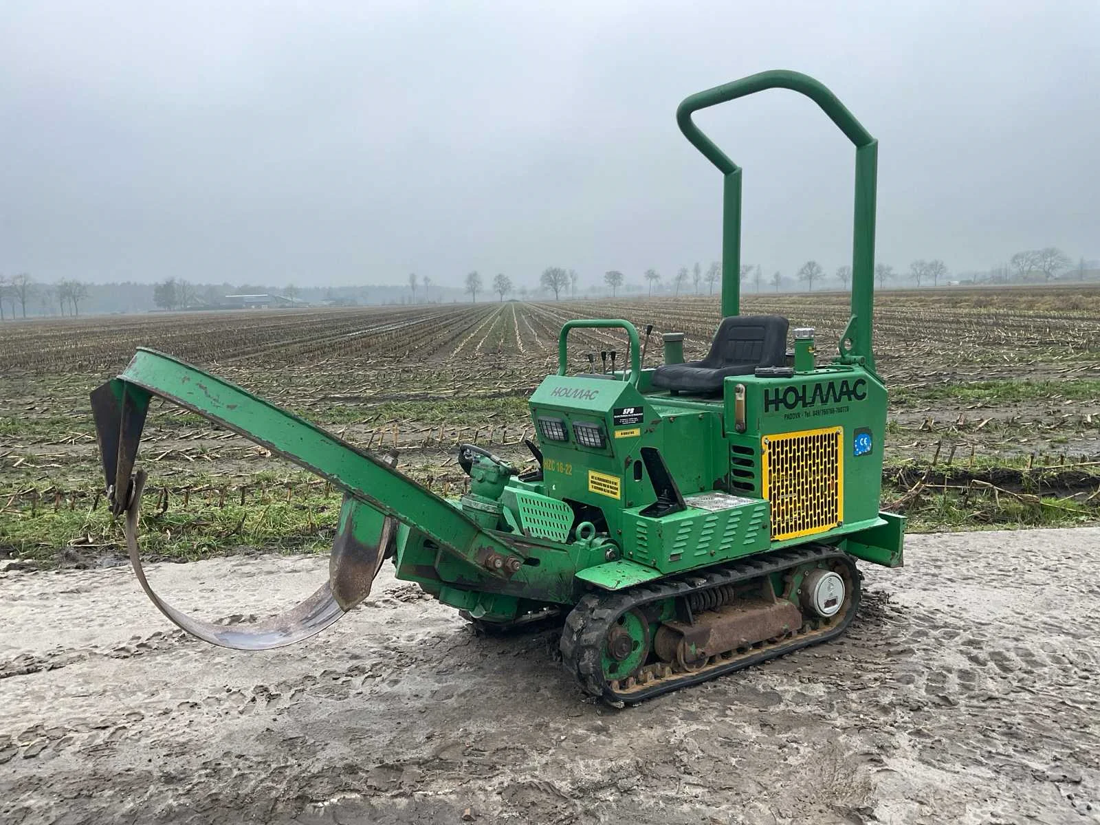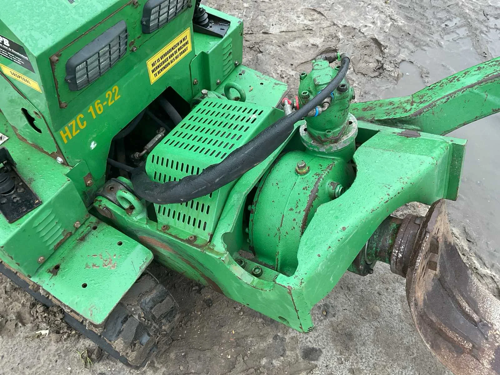 Max snelheid: 3,6 km/h, voorzien van: hydraulische rooier (700mm gemonteerd), rupsonderstel (rupsbreedte 170mm), veiligheidsbeugel, reservemessen (600, 500 en 400mm), hydraulisch afstempel bord, trilfunctie, rijmotoren vervangen in 2018, Merk: Holmac Type: HZC 16-22 Serienummer: 98040688 Bouwjaar: 1998 Motorvermogen (kW): 12kW Type motor: Lombardini 3-cilinder Brandstof: diesel Afgelezen urenstand: 1734hr Totale afmeting L: 2850mm Totale afmeting Breedte: 1000mm Totale afmeting Hoogte: 1980mm