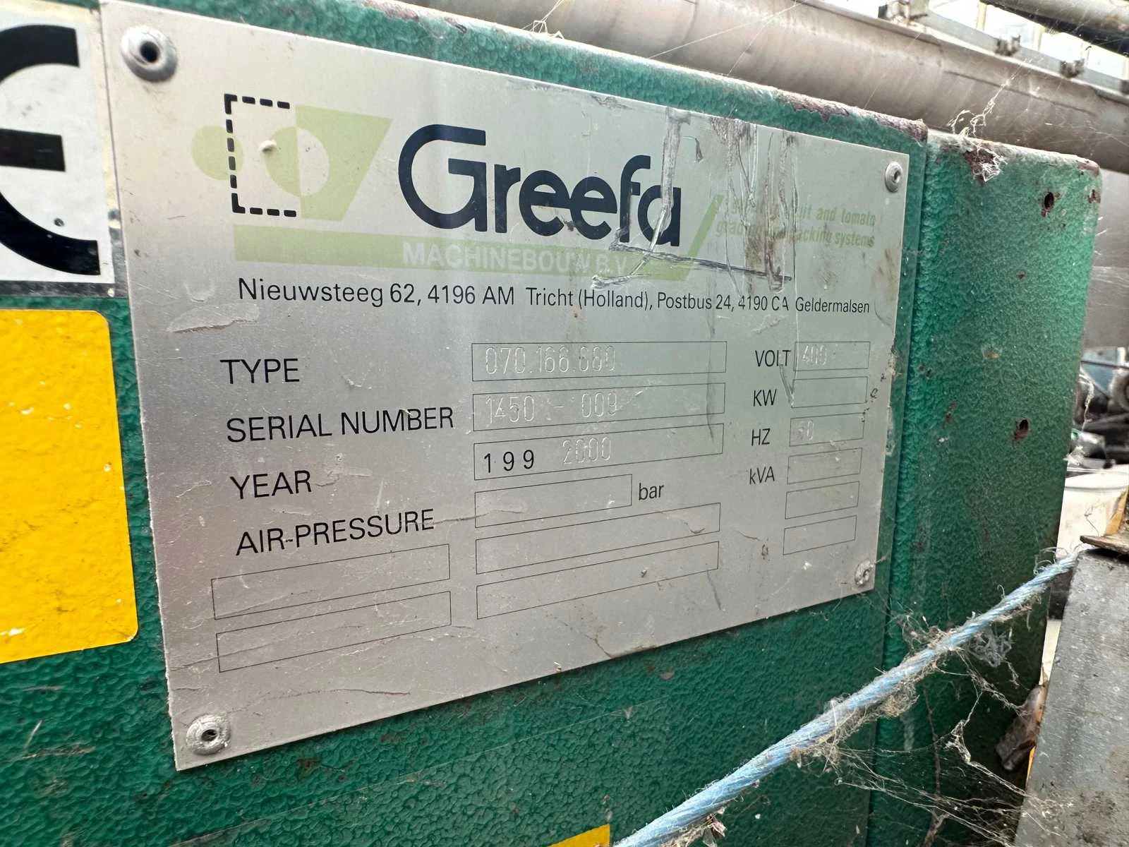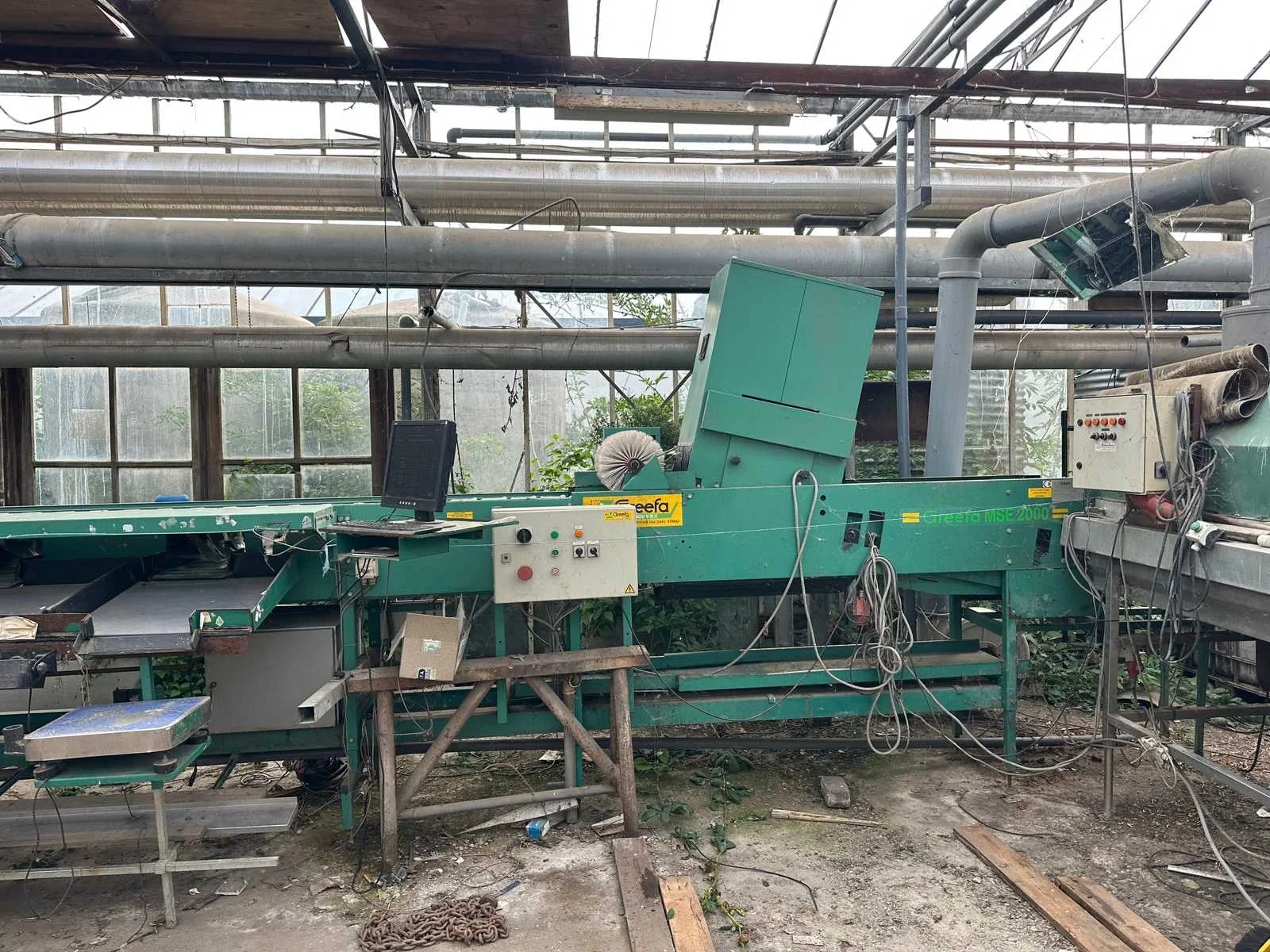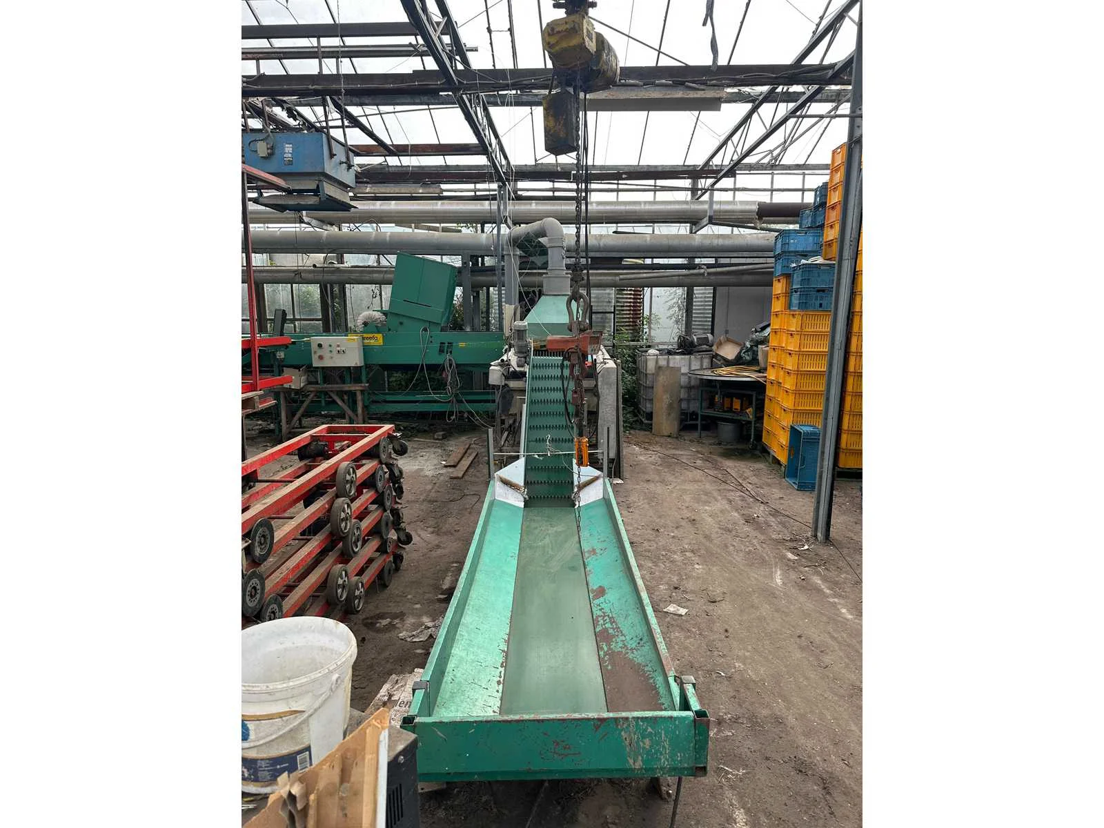 Droger is niet inbegrepen, 9 uitgangen, machine heeft transportschade aan de uitgangsplaten, de staanders zijn verbogen Merk: Greefa Type: 070.166.660 Bouwjaar: 2000 Serienummer: 1450-009 Aansluiting: 400V Totale afmeting L: 11000mm Totale afmeting Breedte: 1500mm Totale afmeting Hoogte: 2450mm