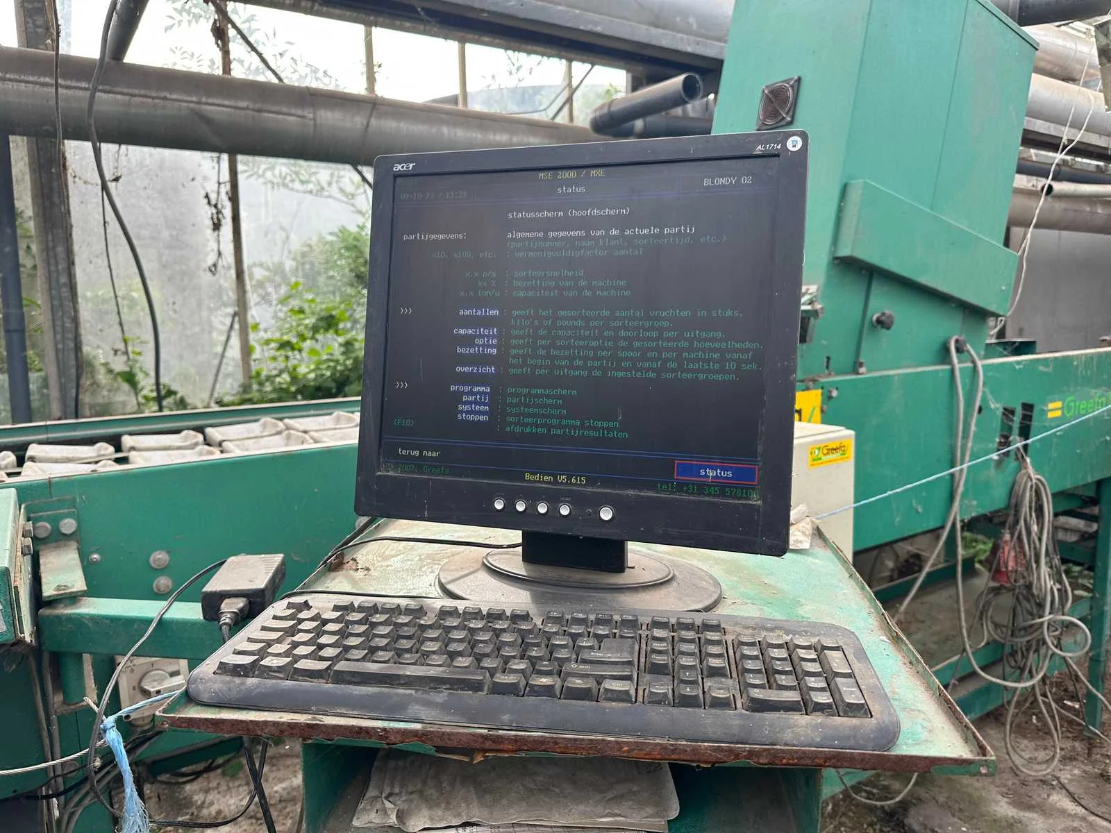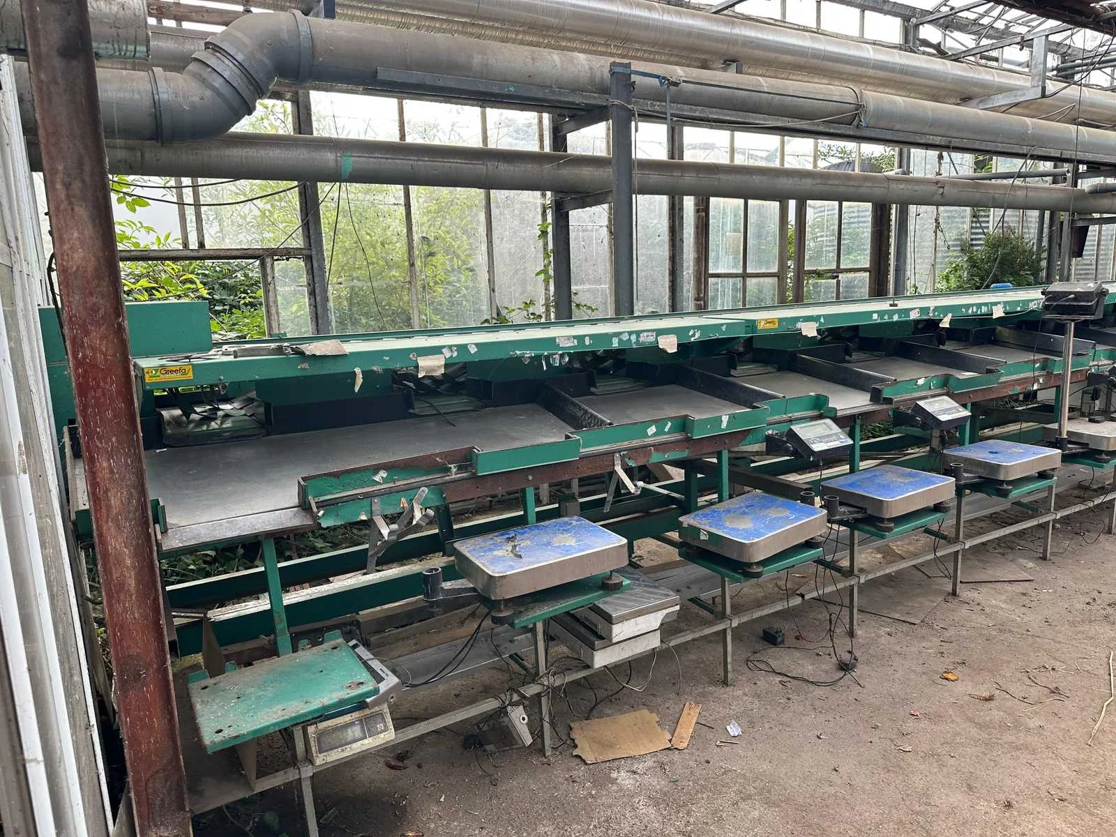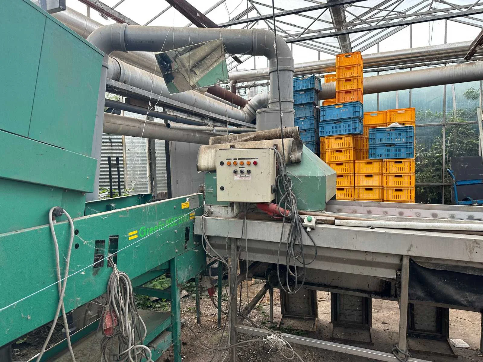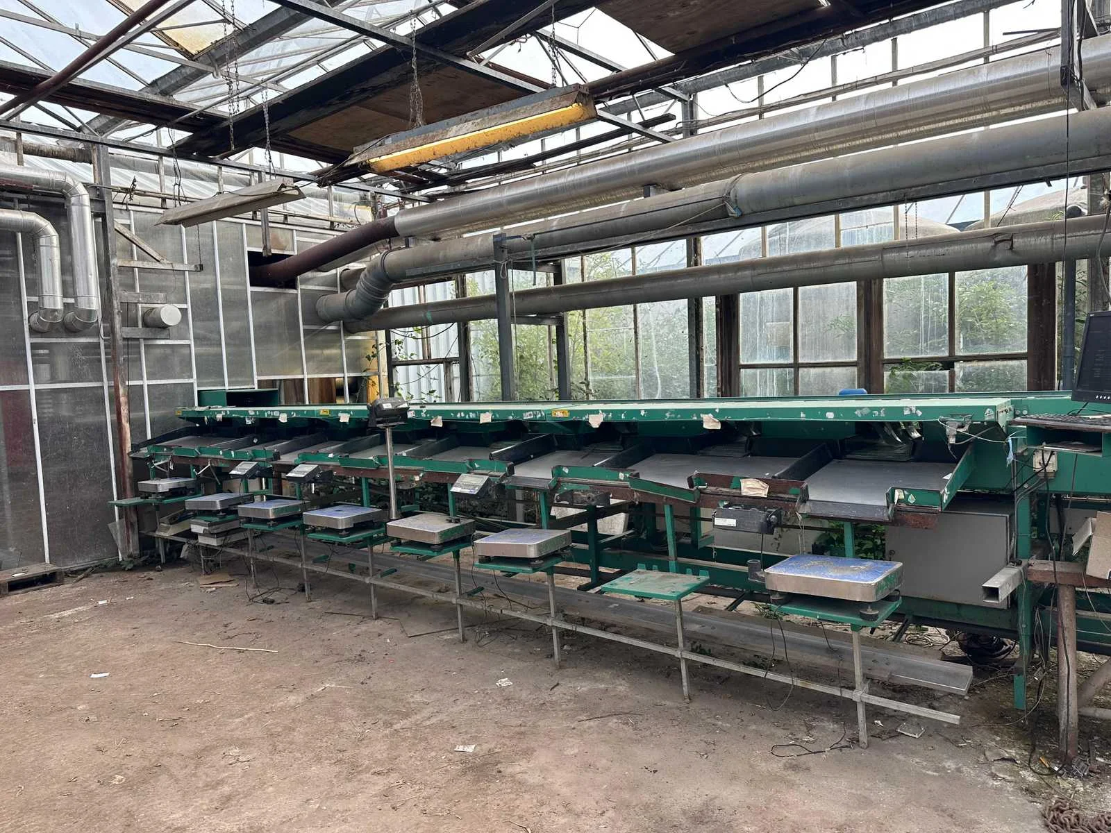Droger is niet inbegrepen, 9 uitgangen, machine heeft transportschade aan de uitgangsplaten, de staanders zijn verbogen Merk: Greefa Type: 070.166.660 Bouwjaar: 2000 Serienummer: 1450-009 Aansluiting: 400V Totale afmeting L: 11000mm Totale afmeting Breedte: 1500mm Totale afmeting Hoogte: 2450mm