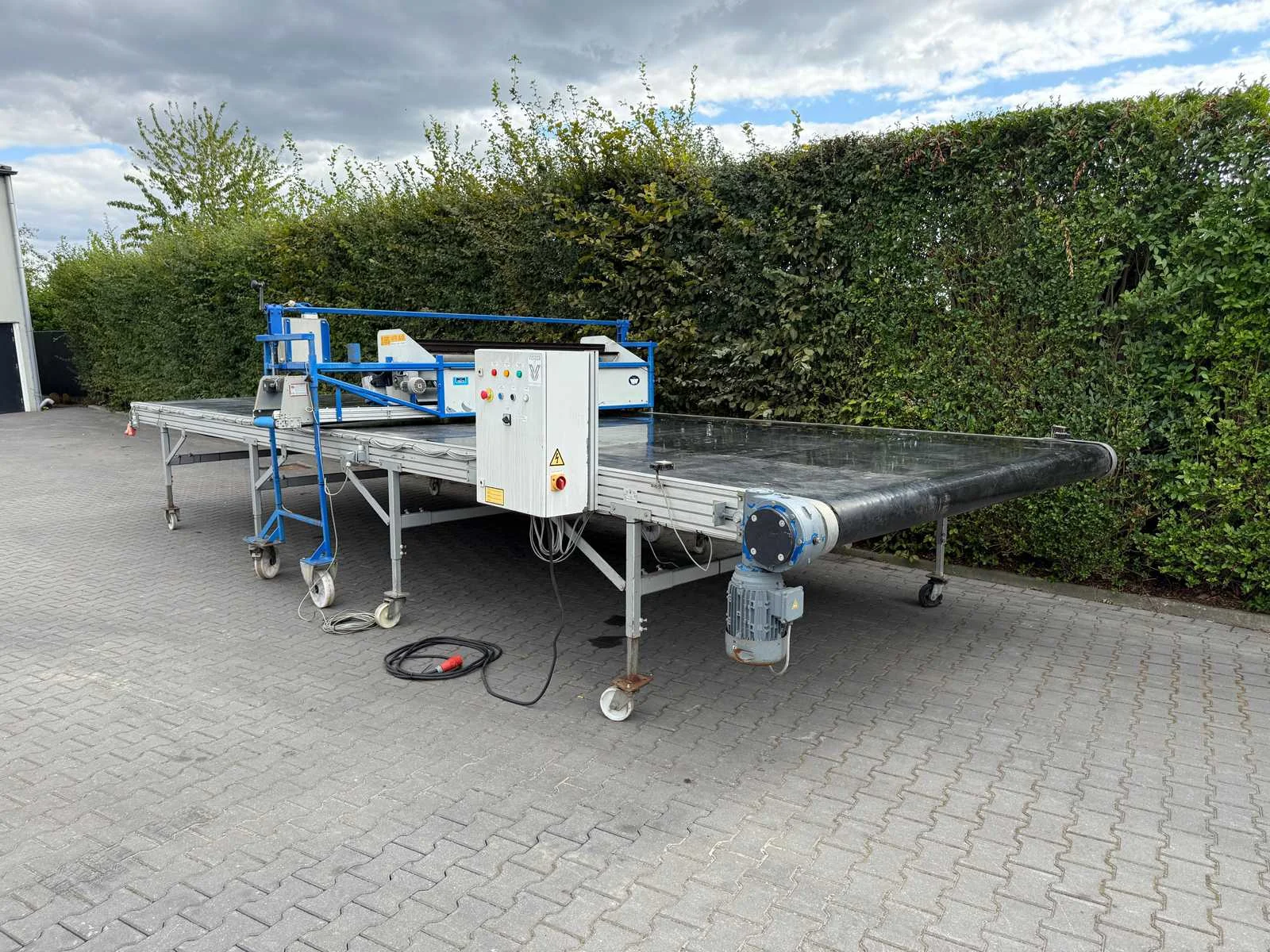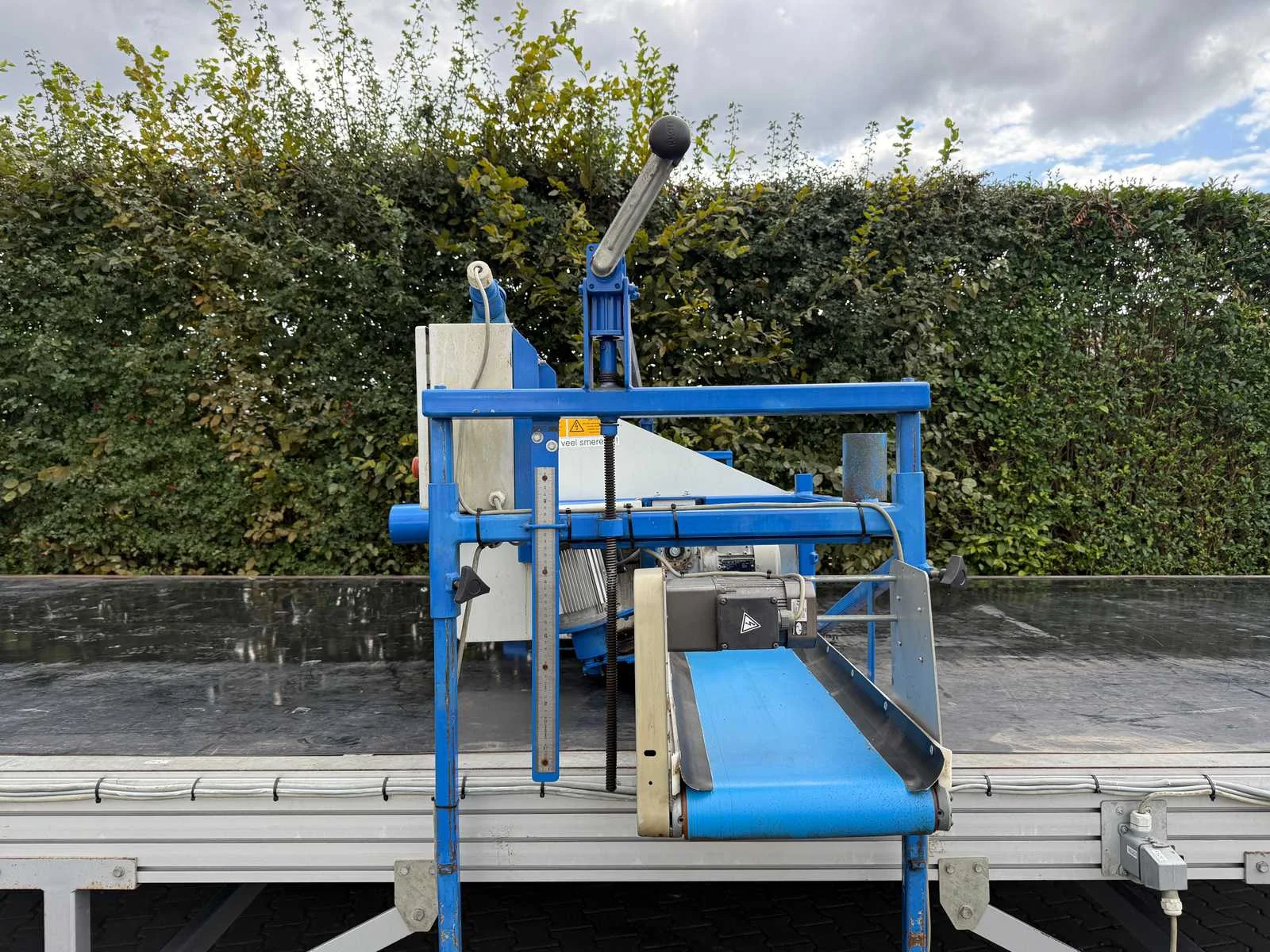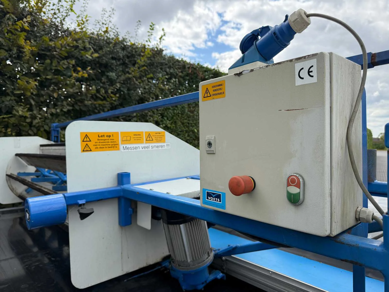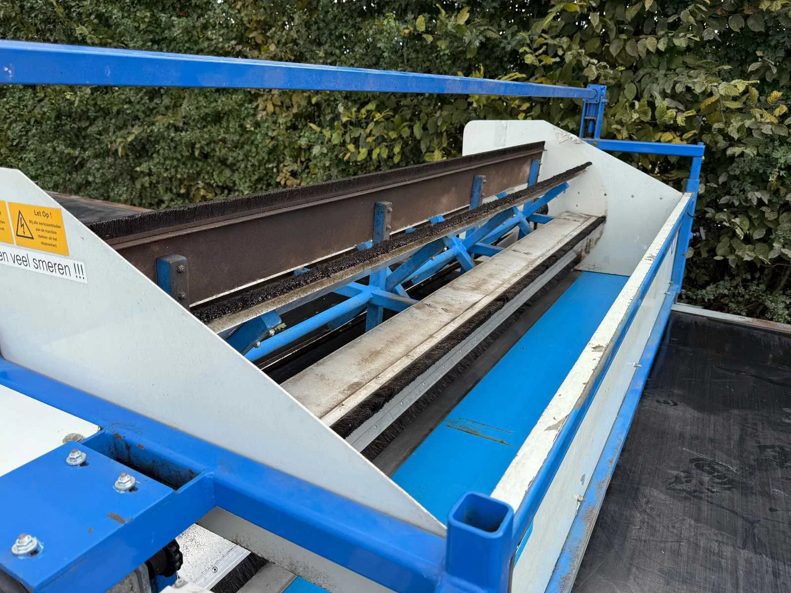 Bandbreedte: 2625mm, voorzien van: Voets stekkenknipper met borstel, (werkbreedte 2000mm, transportband 3150x320mm, regelbare snelheid), in hoogte verstelbaar, Merk: Visser Type: Brede Vitra Bouwjaar: 2006 Serienummer: 96238-40 Aansluiting: 400V Eigen gewicht: 850kg Totale afmeting L: 8000mm Totale afmeting Breedte: 3080mm Totale afmeting Hoogte: 1150mm Leveringsvoorwaarden: Heftruck aanwezig op locatie!