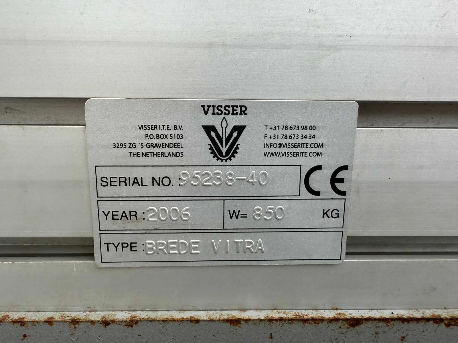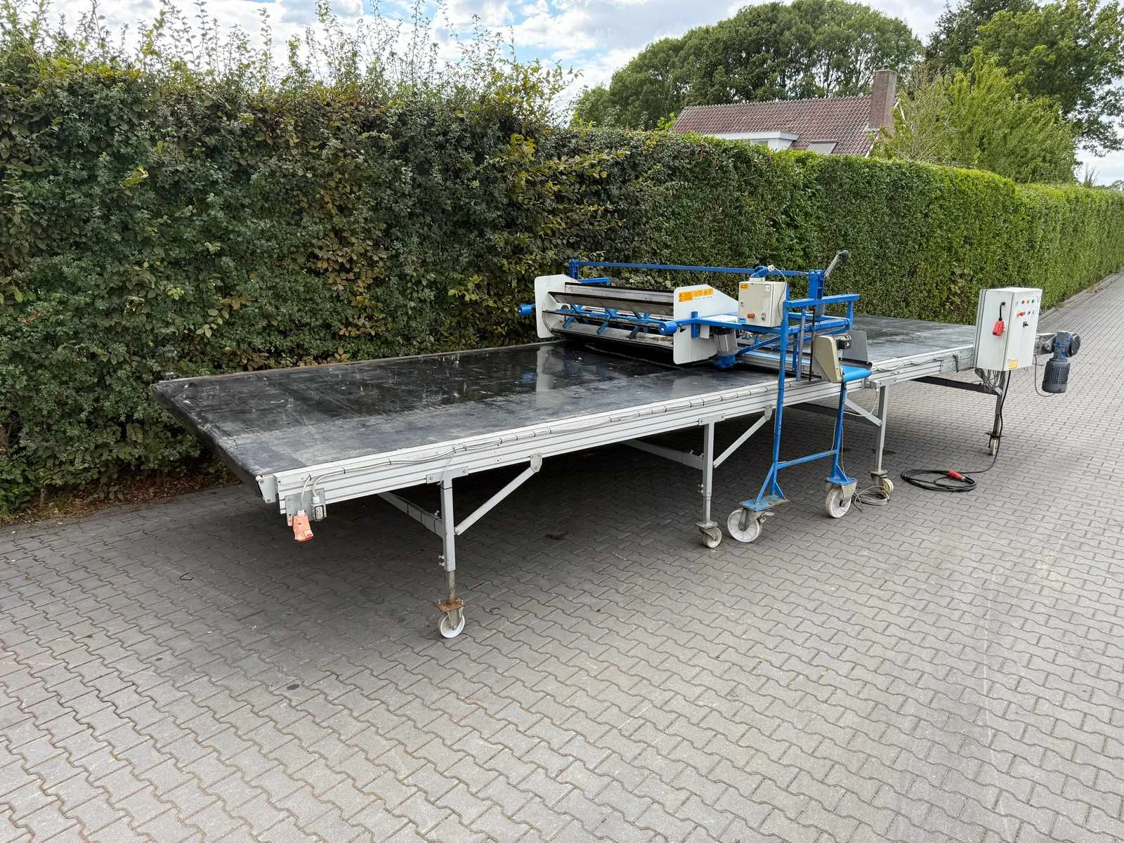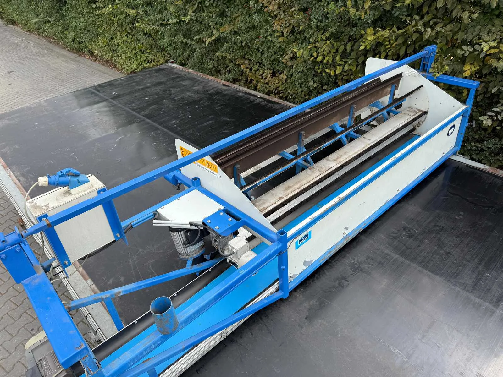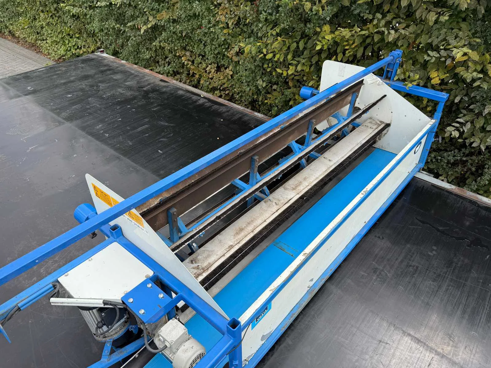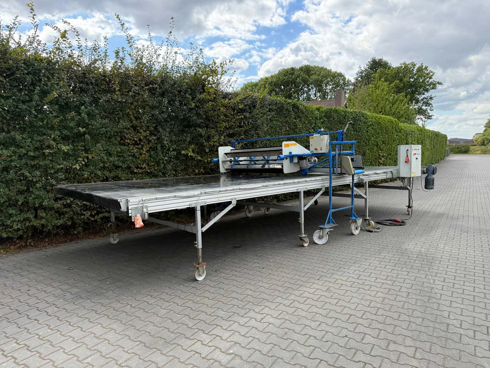 Bandbreedte: 2625mm, voorzien van: Voets stekkenknipper met borstel, (werkbreedte 2000mm, transportband 3150x320mm, regelbare snelheid), in hoogte verstelbaar, Merk: Visser Type: Brede Vitra Bouwjaar: 2006 Serienummer: 96238-40 Aansluiting: 400V Eigen gewicht: 850kg Totale afmeting L: 8000mm Totale afmeting Breedte: 3080mm Totale afmeting Hoogte: 1150mm Leveringsvoorwaarden: Heftruck aanwezig op locatie!
