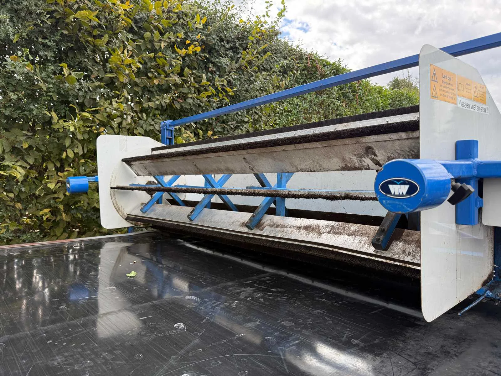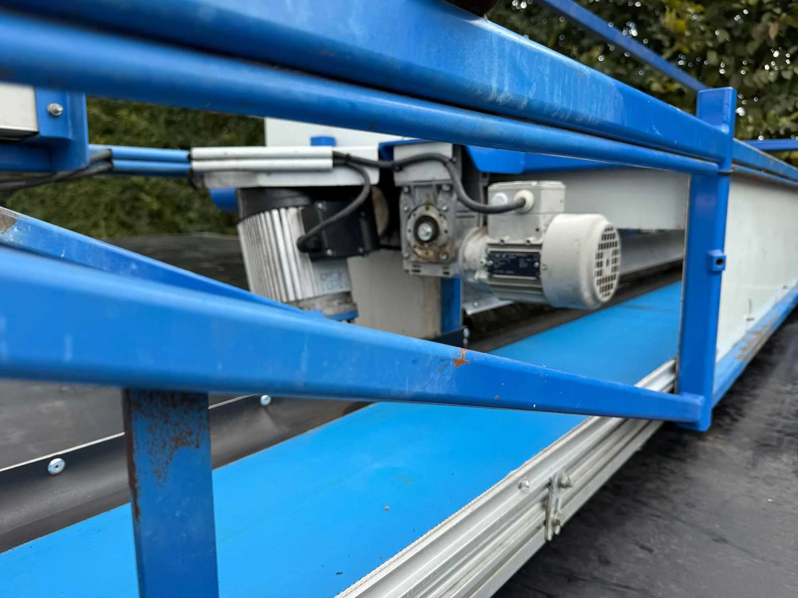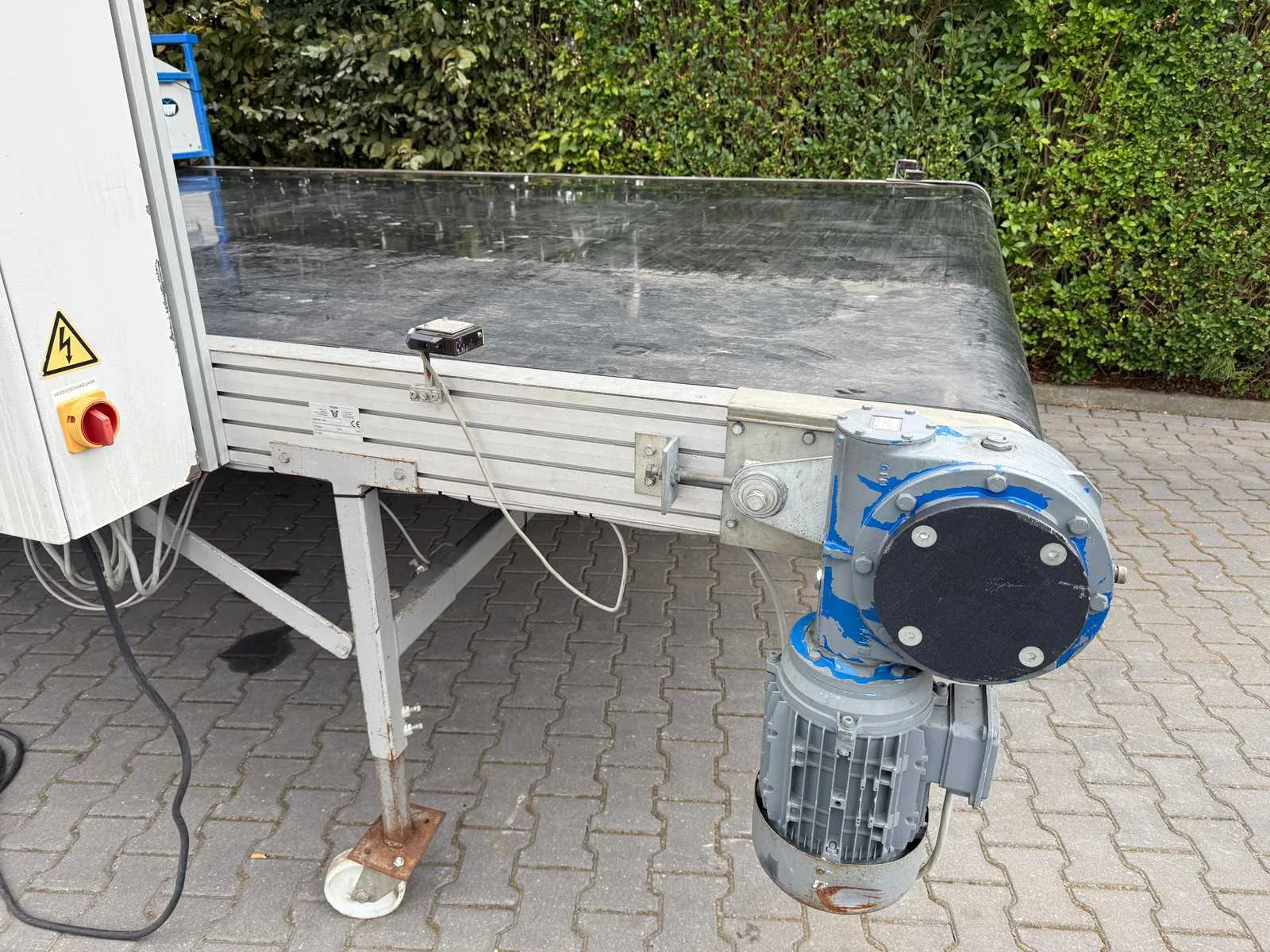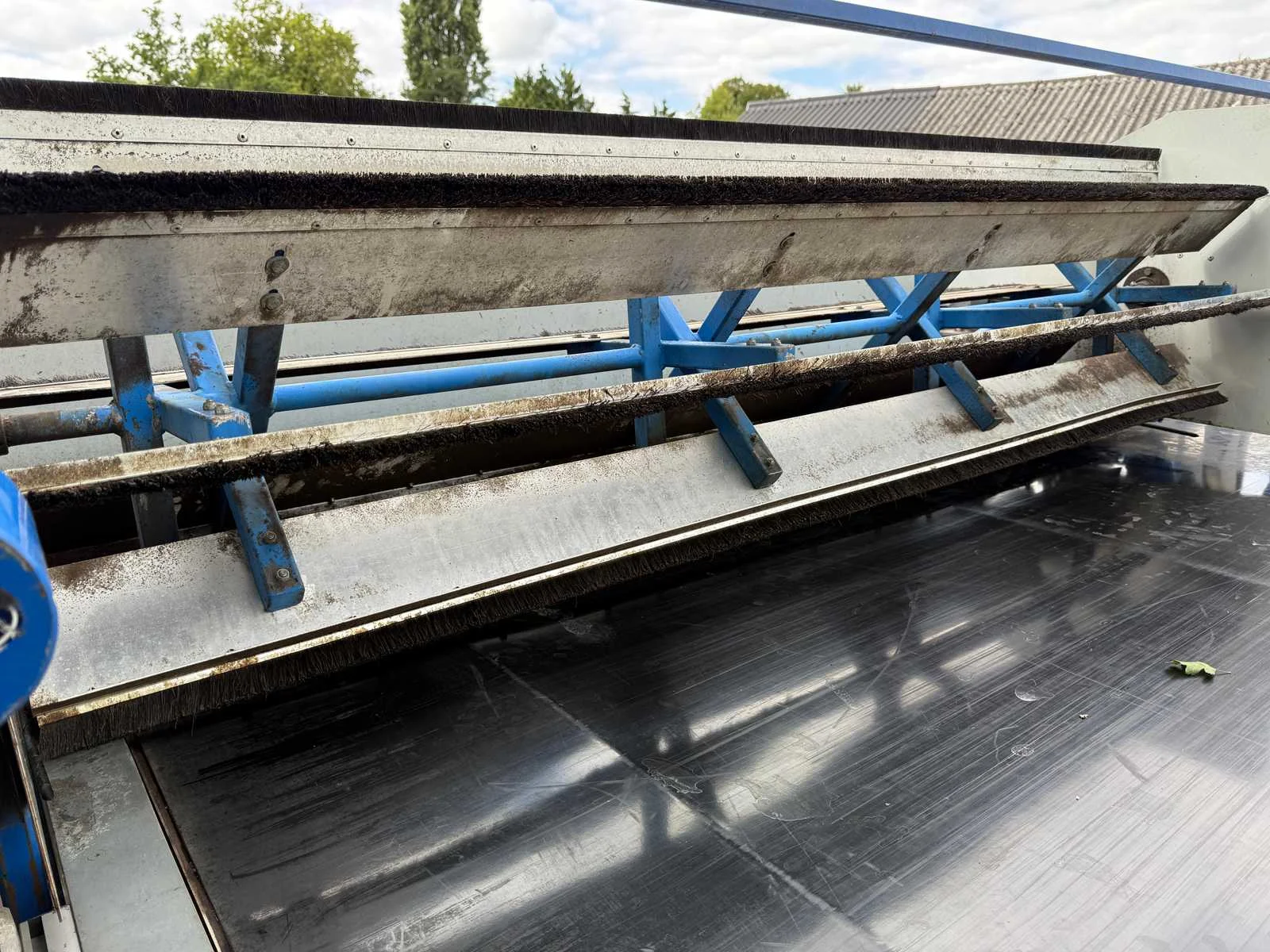 Bandbreedte: 2625mm, voorzien van: Voets stekkenknipper met borstel, (werkbreedte 2000mm, transportband 3150x320mm, regelbare snelheid), in hoogte verstelbaar, Merk: Visser Type: Brede Vitra Bouwjaar: 2006 Serienummer: 96238-40 Aansluiting: 400V Eigen gewicht: 850kg Totale afmeting L: 8000mm Totale afmeting Breedte: 3080mm Totale afmeting Hoogte: 1150mm Leveringsvoorwaarden: Heftruck aanwezig op locatie!