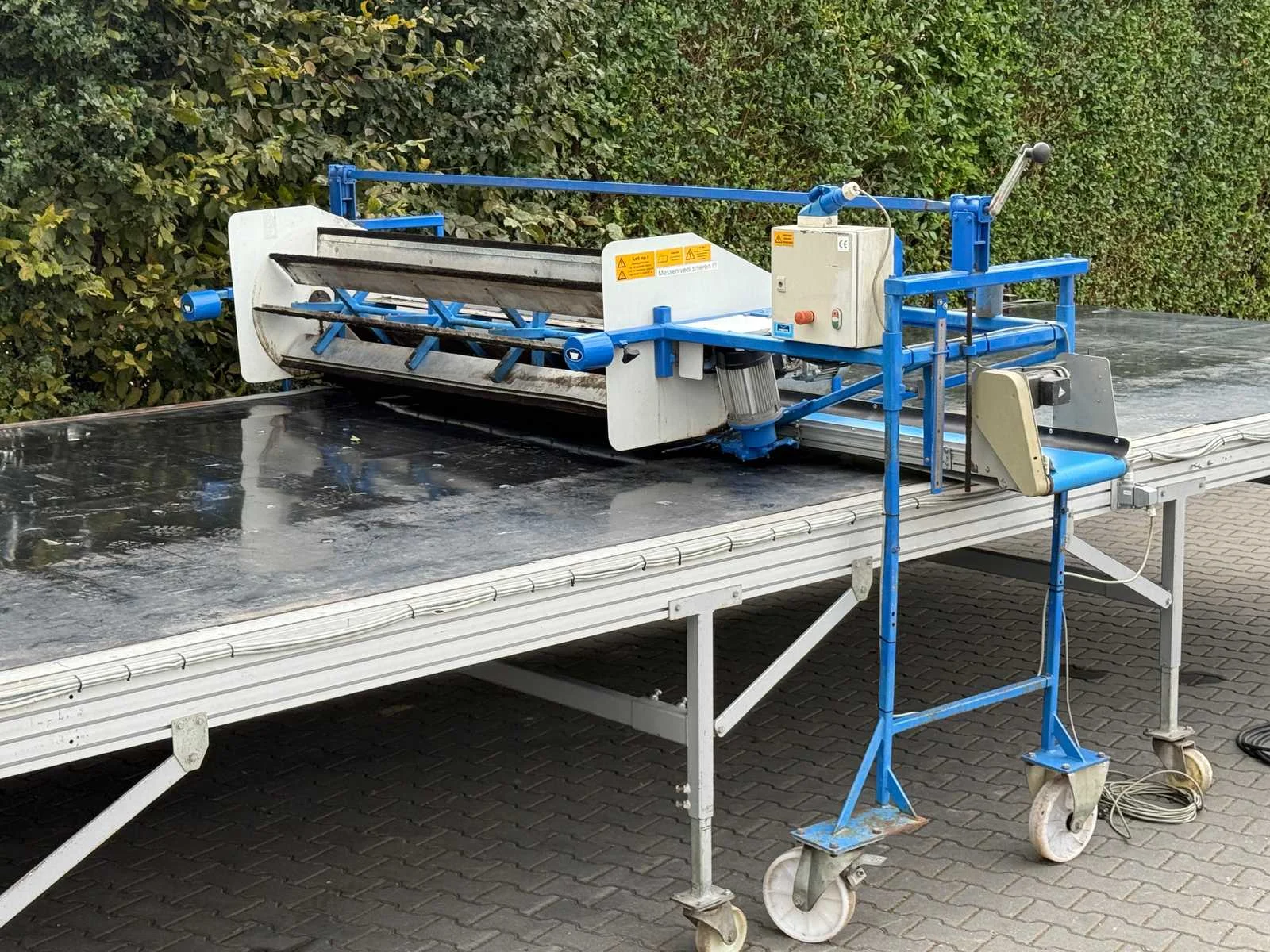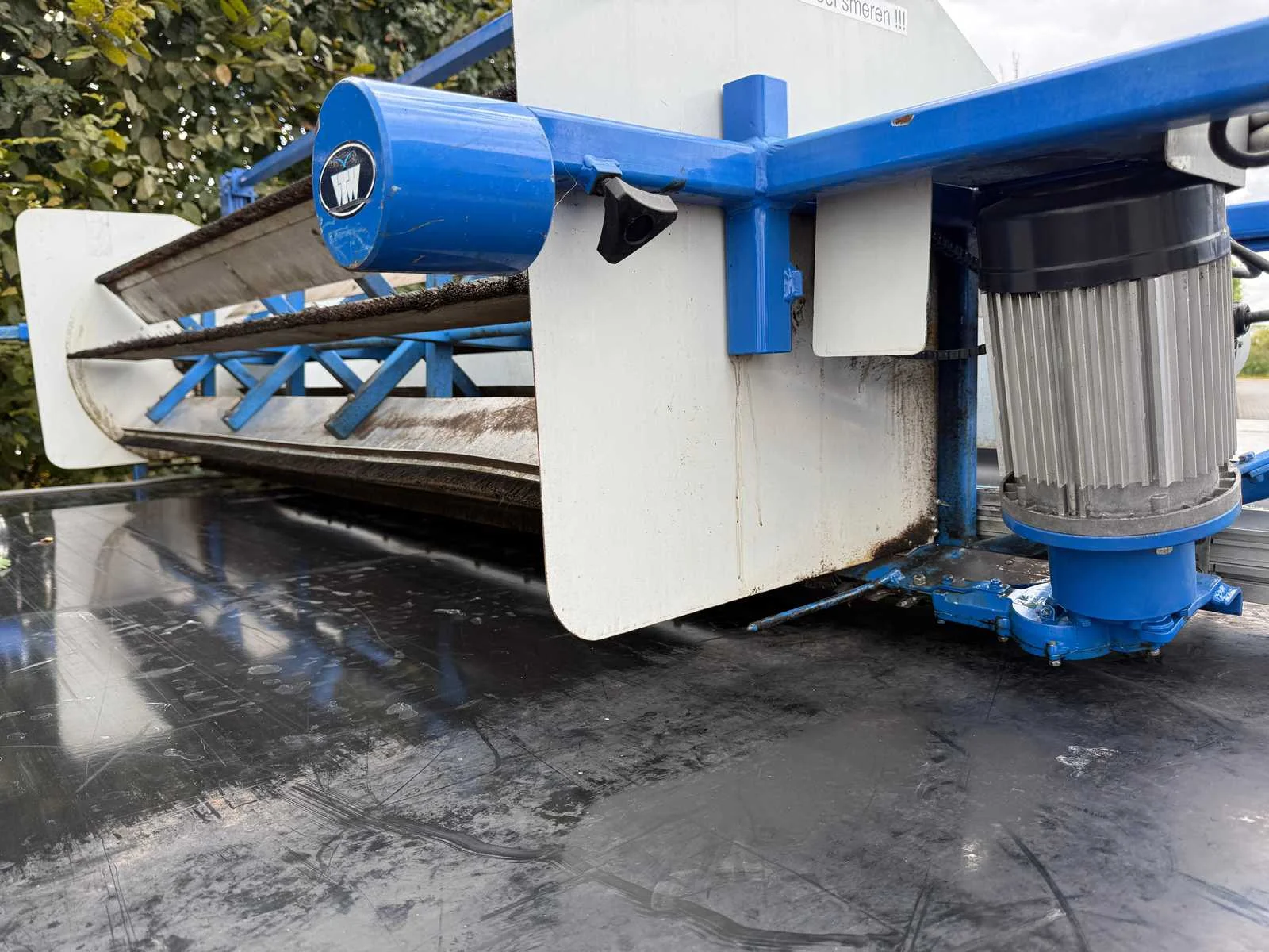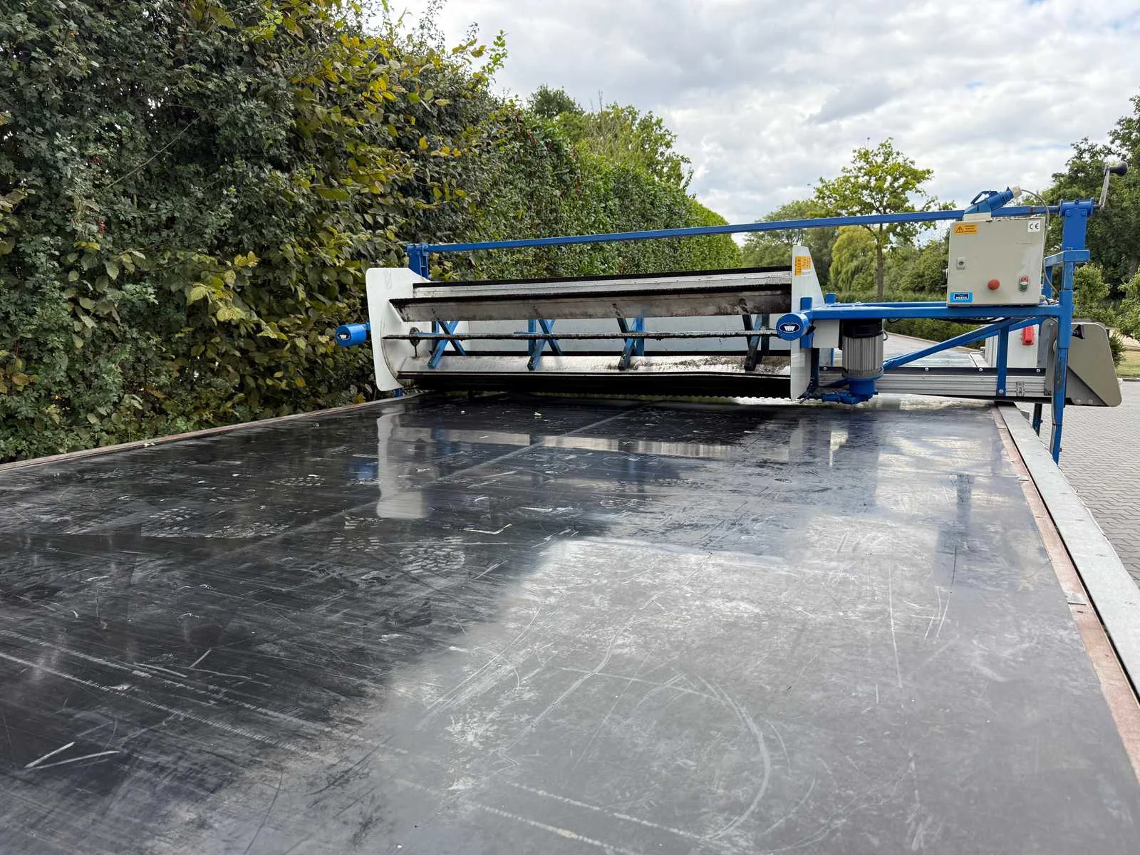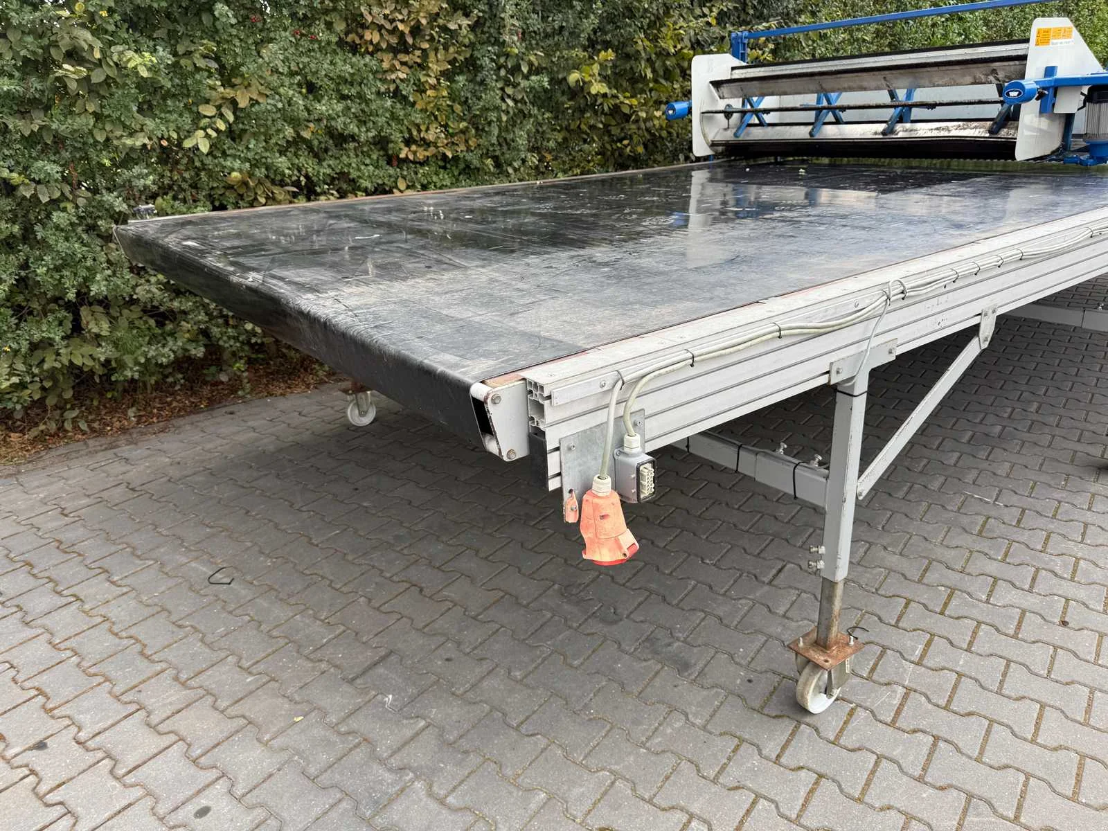 Bandbreedte: 2625mm, voorzien van: Voets stekkenknipper met borstel, (werkbreedte 2000mm, transportband 3150x320mm, regelbare snelheid), in hoogte verstelbaar, Merk: Visser Type: Brede Vitra Bouwjaar: 2006 Serienummer: 96238-40 Aansluiting: 400V Eigen gewicht: 850kg Totale afmeting L: 8000mm Totale afmeting Breedte: 3080mm Totale afmeting Hoogte: 1150mm Leveringsvoorwaarden: Heftruck aanwezig op locatie!