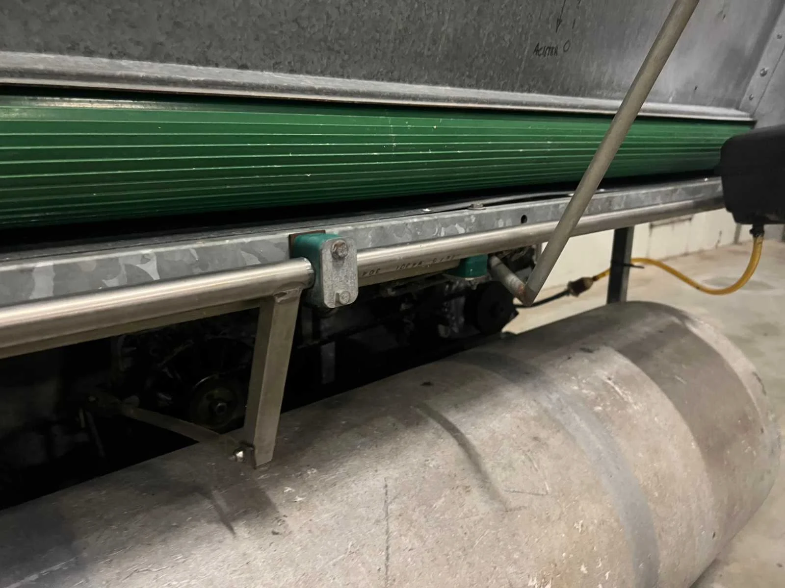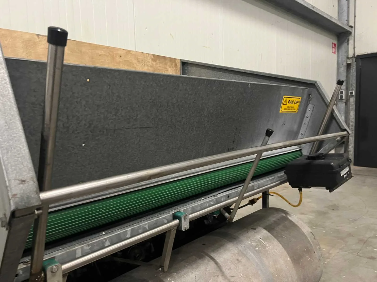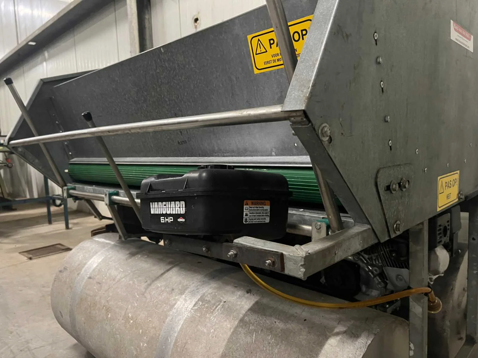 1400mm brede aanvoerband, 1300mm brede aluminium rollen, gegalvaniseerd frame, Honda benzinemotor Merk: Hans van der Poel Totale afmeting L: 1300mm Totale afmeting Breedte: 1450mm Totale afmeting Hoogte: 1300mm