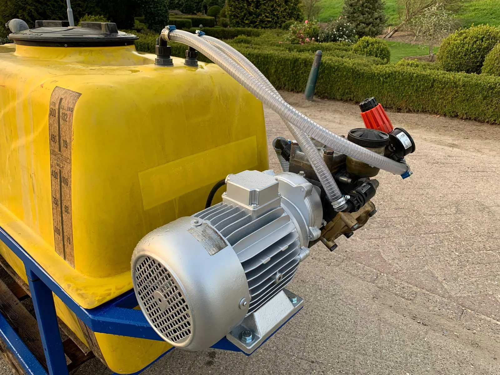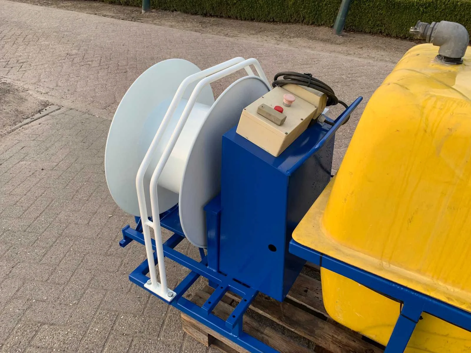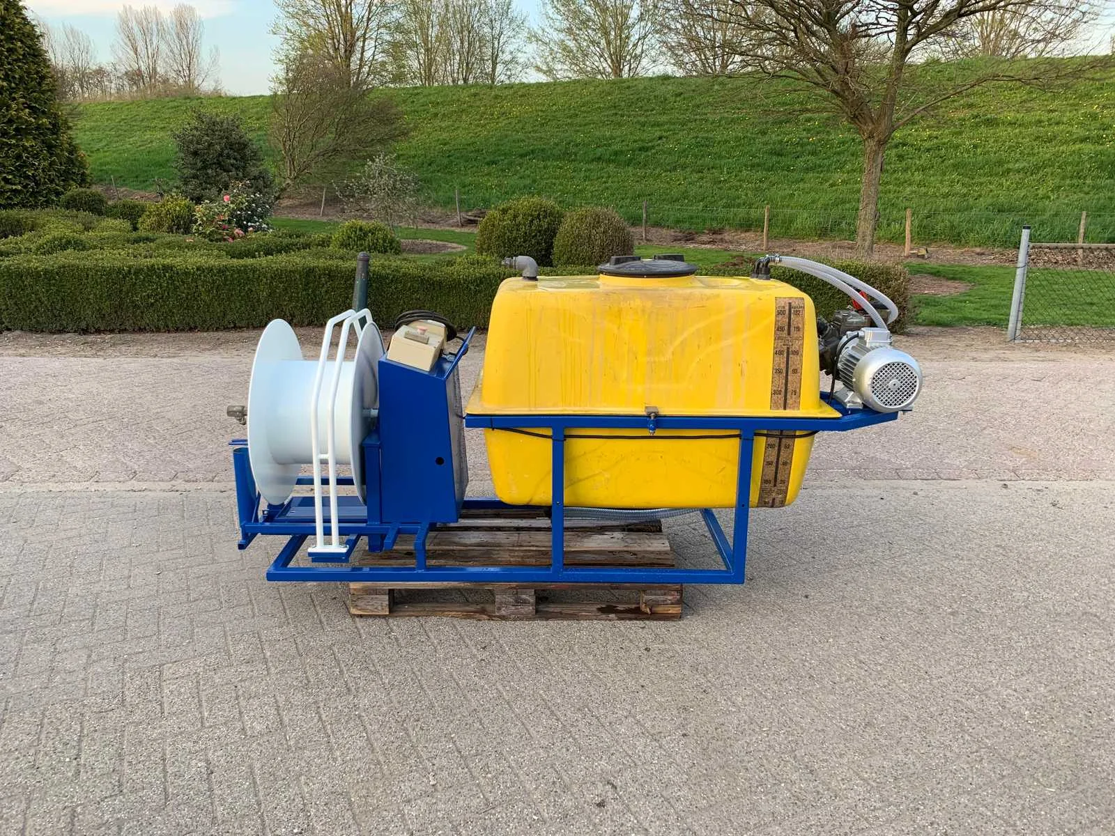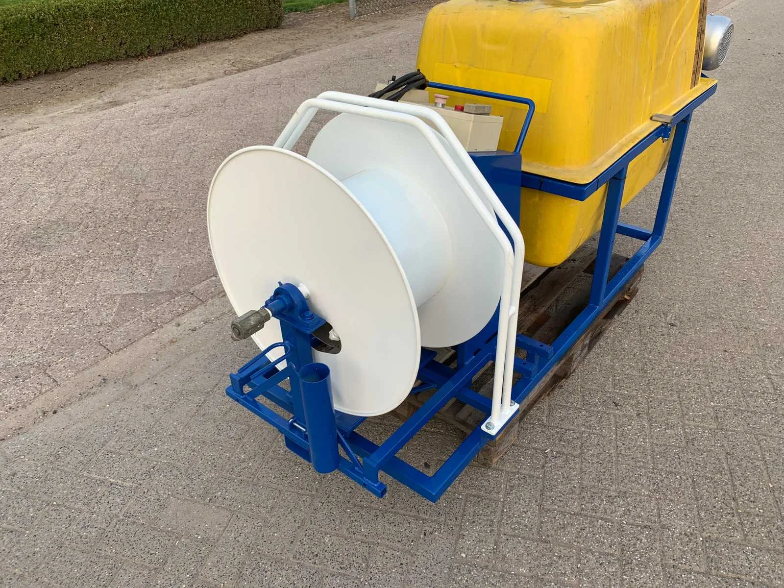Met radiografische afstandsbediening met antenne, 400 volt elektromotor aangedreven membraanpomp, op stalen frame haspel snelheid regelbaar ,slangenbegeleiding, 16 Ah 5-polige stekker, Tankinhoud: 500l Totale afmeting L: 3000mm Totale afmeting Breedte: 1000mm Totale afmeting Hoogte: 1300mm