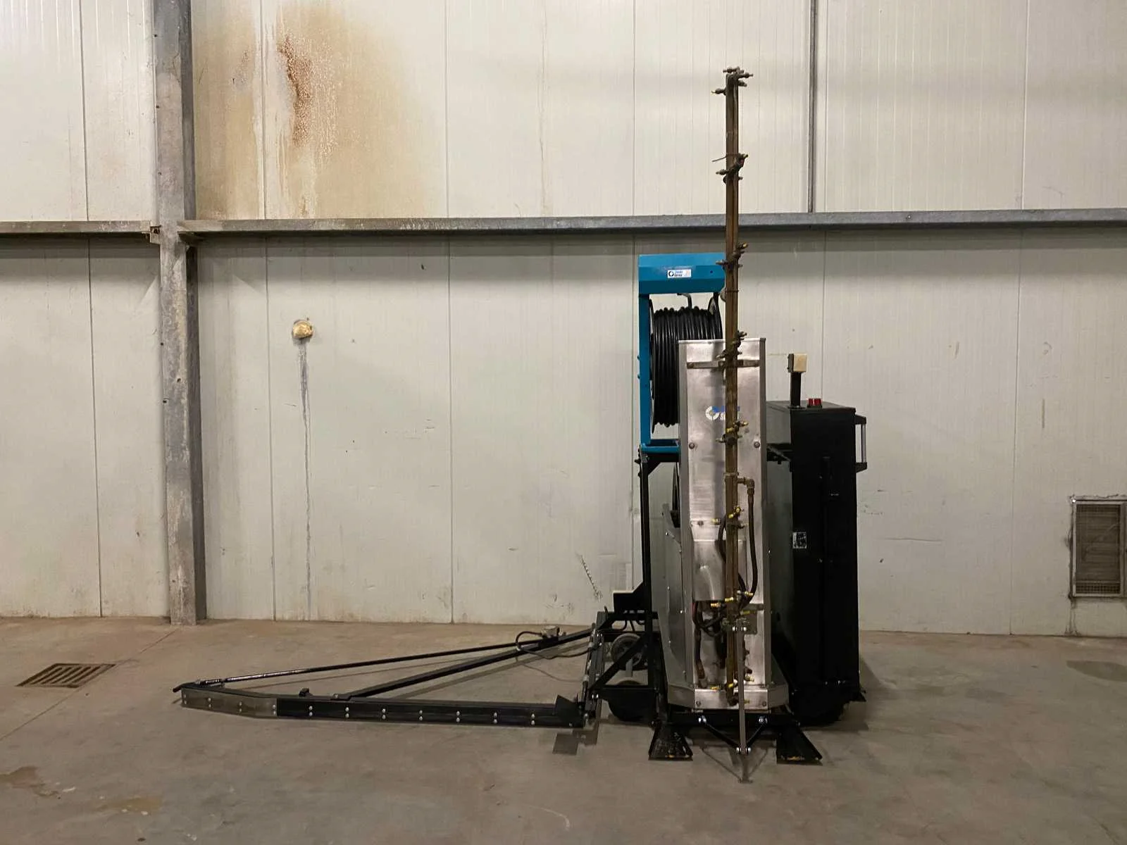 Voorzien van 2 haspels, lengte 2 x 60 meter, 32-kops sproeiarm, bedieningspaneel, geschikt voor buisrailmaat 425 mm Merk: Berg Hortimotive Totale afmeting L: 1550mm Totale afmeting Breedte: 1250mm Totale afmeting Hoogte: 2200mm