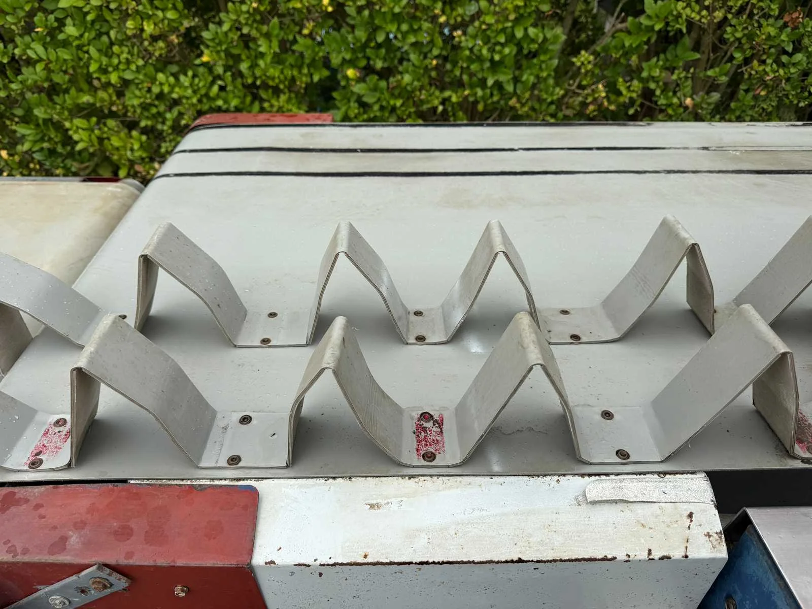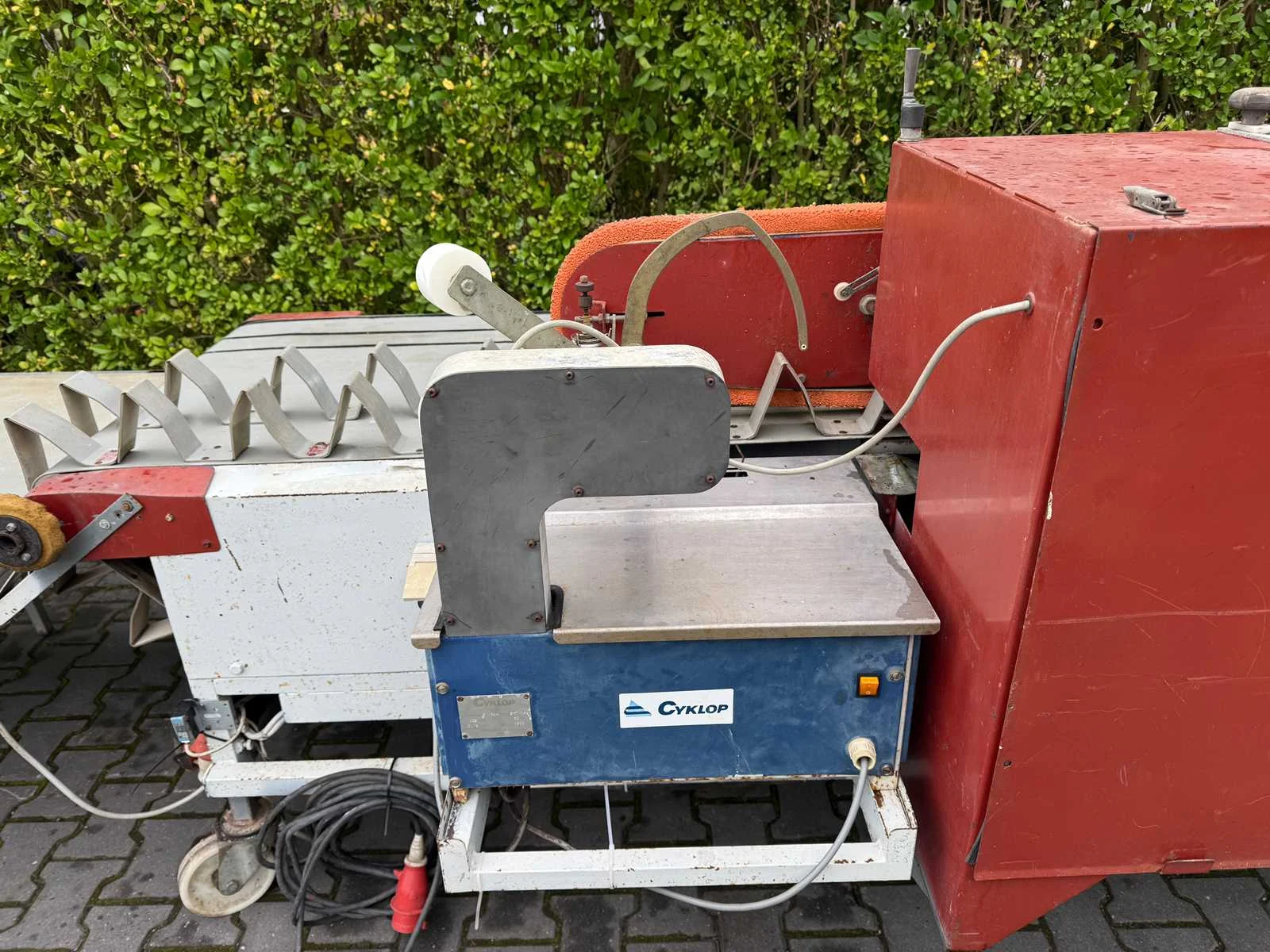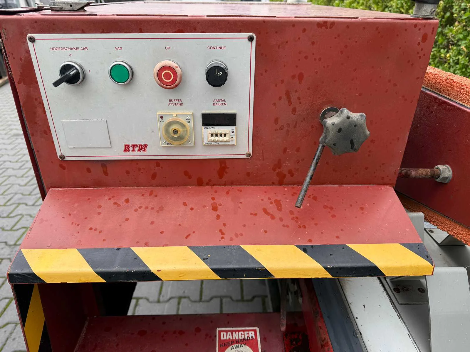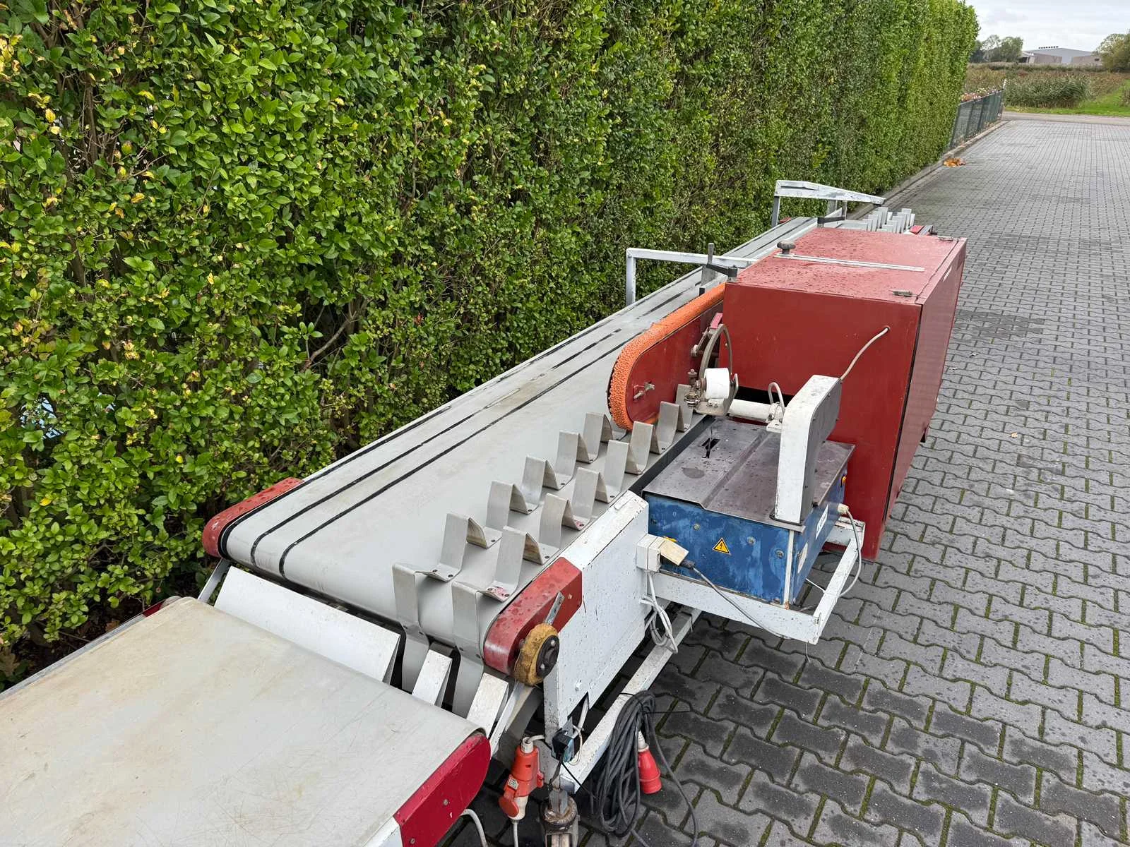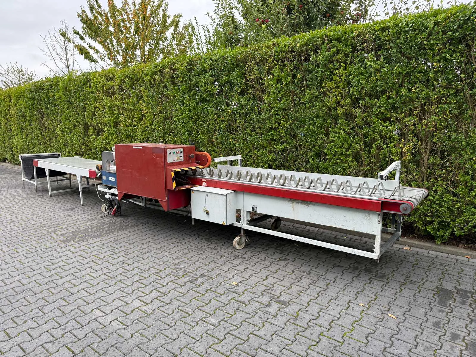 Inclusief EM16A binder, bufferband (260x85cm), bloemen opvangzak (90x85cm), zaagunit en ontlaadunit aanwezig, dubbel daks band, sponsband in hoogte verstelbaar, (80 bandbreedte, 85 bufferband) Merk: BTM Type: T1000 Totale afmeting L: 5000mm Totale afmeting Breedte: 1500mm