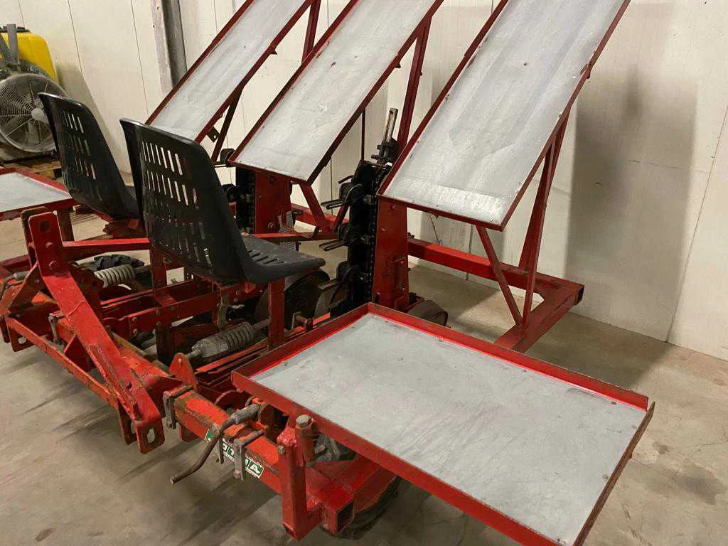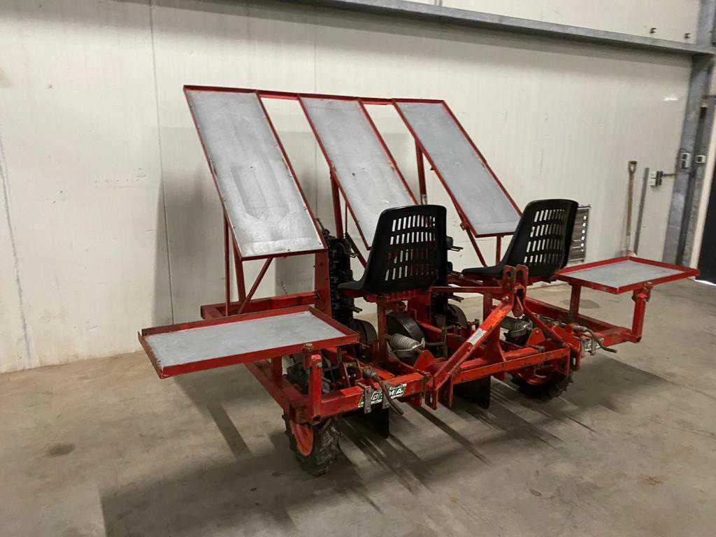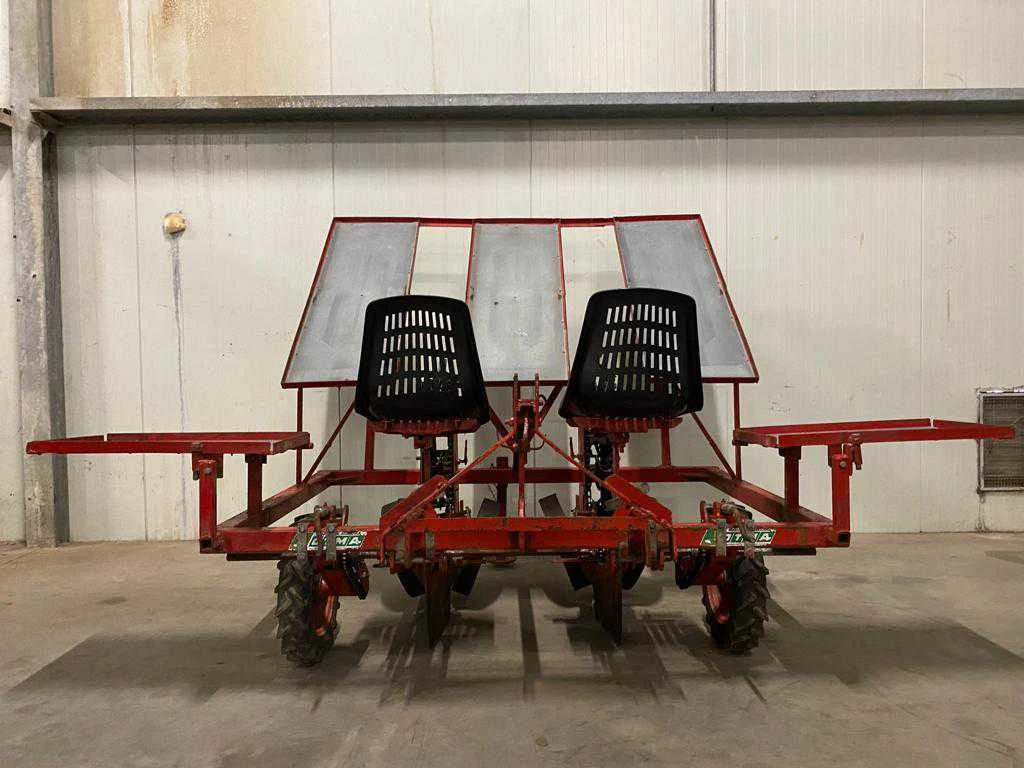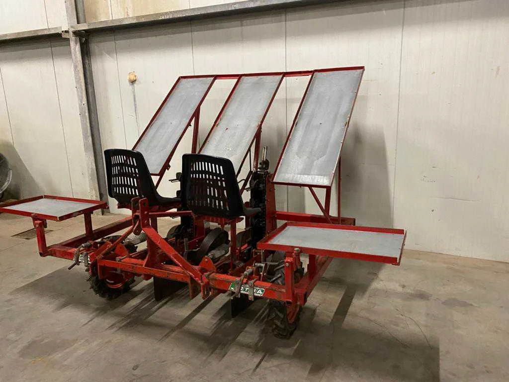Diepte verstelbaar loopwiel; wiel aangedreven machine; poot band; 2 zittingen; driepunt aansluiting, plantelementen verstelbaar, Merk: Otma Type: TRU 2 Serienummer: 133672 Aantal rijen: 2 Rijenafstand: 690mm Totale afmeting L: 2100mm Totale afmeting Breedte: 2100mm Totale afmeting Hoogte: 2100mm