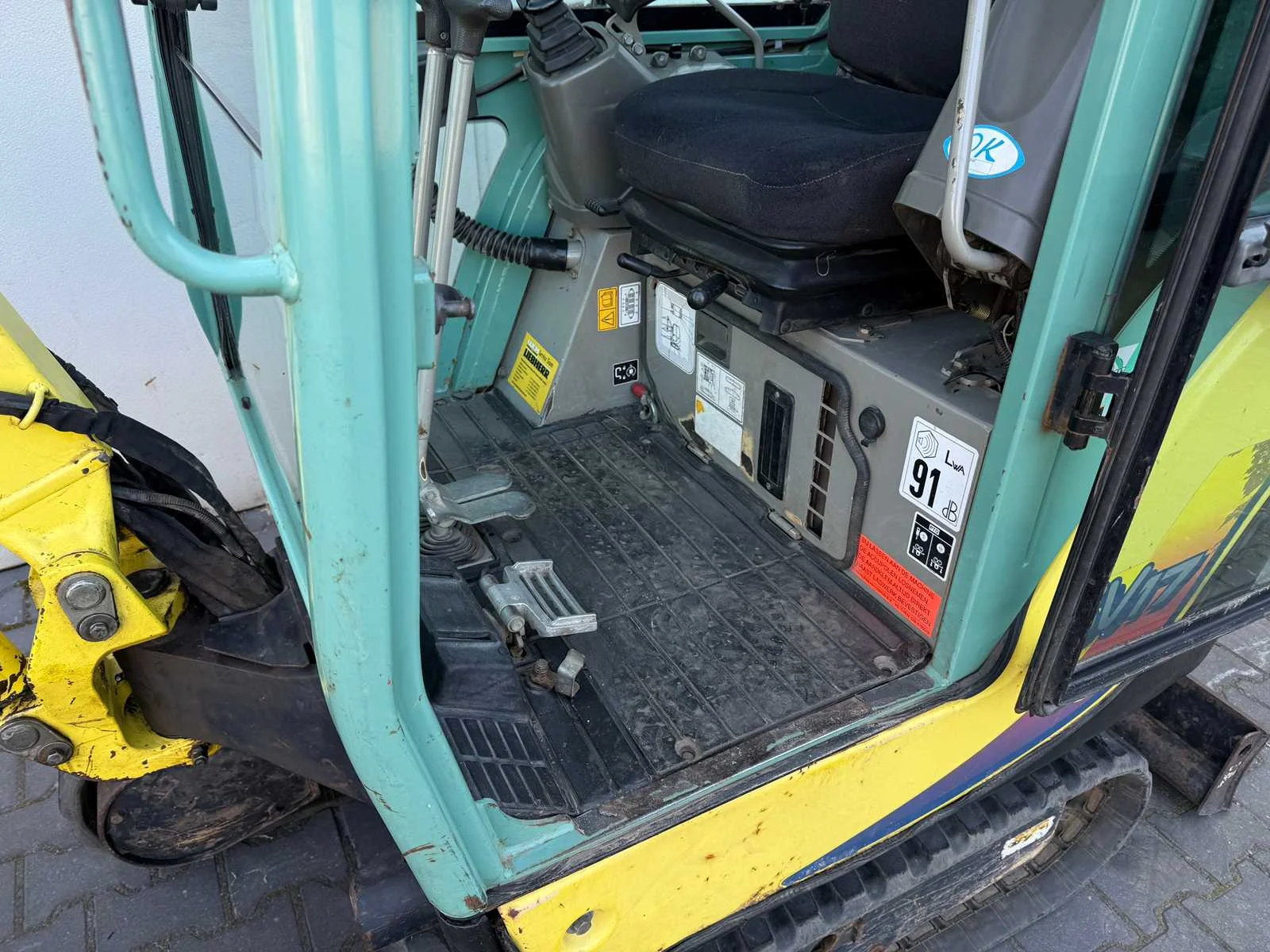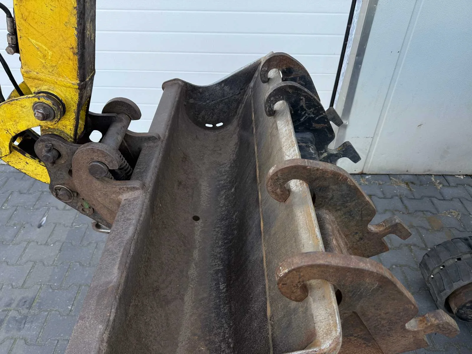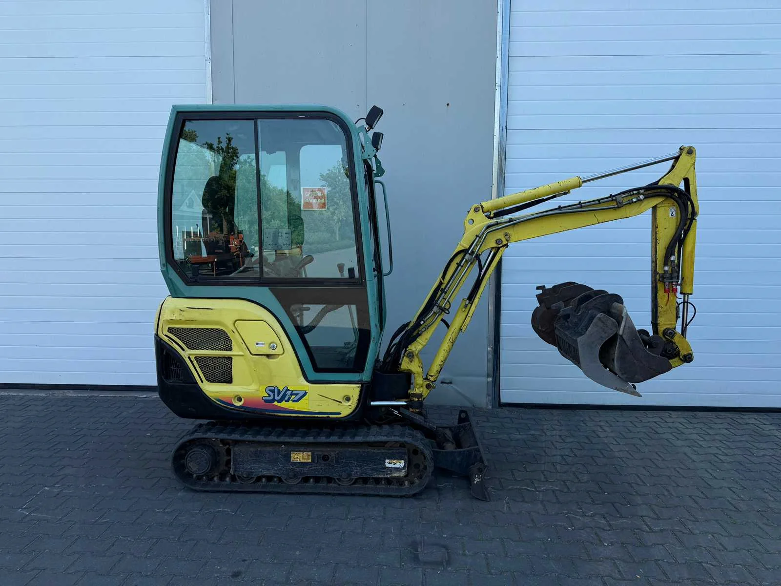 CW05 hydraulische snelwissel, CW05 slotenbak 1000mm, CW05 puinbak 500mm, CW05 banaanbak 220mm, 3e functie, zwenkgiek, Schuifblad 980mm, radio Merk: Yanmar Type: SV17 Bouwjaar: 2010 Serienummer: AYR0SV17L8R105063 Merk motor: Yanmar 3TNV70-V Motorvermogen (kW): 9.5kW Aantal cilinders: 3 Brandstof: Diesel Bedrijfsgewicht: 1790kg Gieklengte: 1850mm Inclusief graafbak: Yes Rups breedte: 230mm Afgelezen urenstand: 5373 Totale afmeting L: 3200mm Totale afmeting Breedte: 1000mm Totale afmeting Hoogte: 2200mm