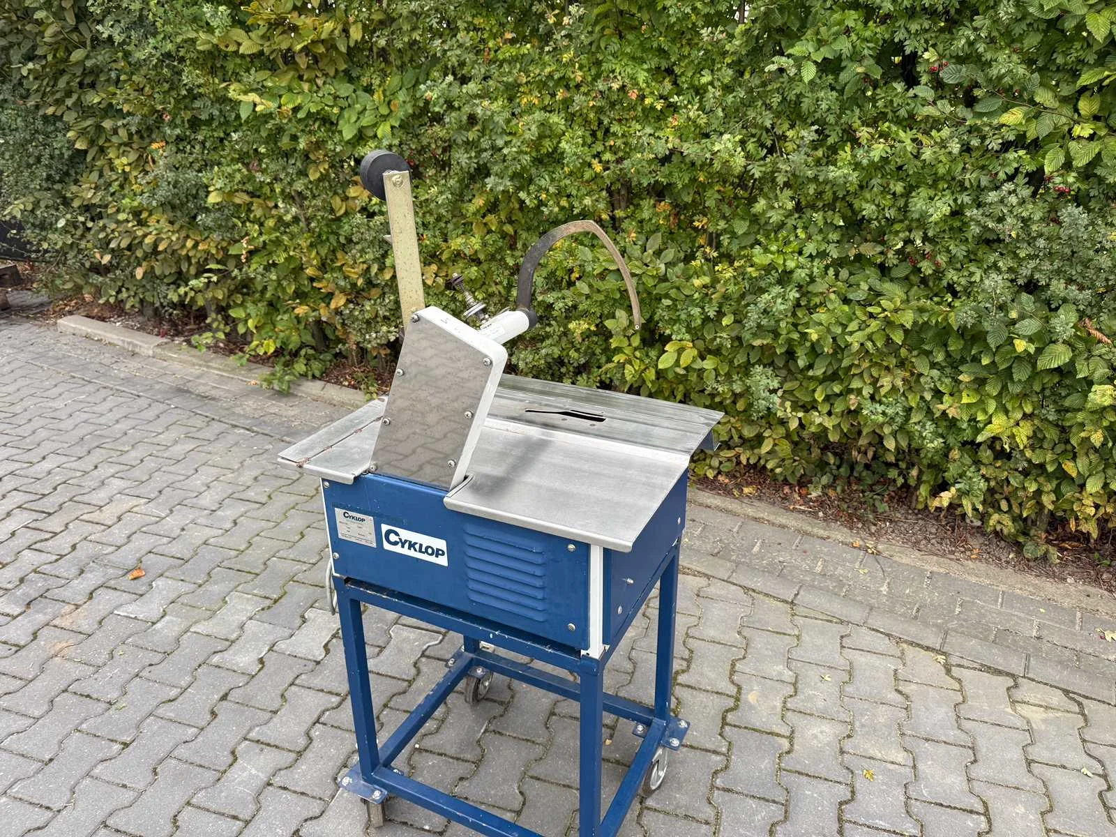 5-polige stekker, 0.18kW, zonder onderstel, stand alone Merk: Cyklop Type: EM-15 Serienummer: 17904 Aansluiting: 220V Totale afmeting L: 500mm Totale afmeting Breedte: 650mm Totale afmeting Hoogte: 700mm