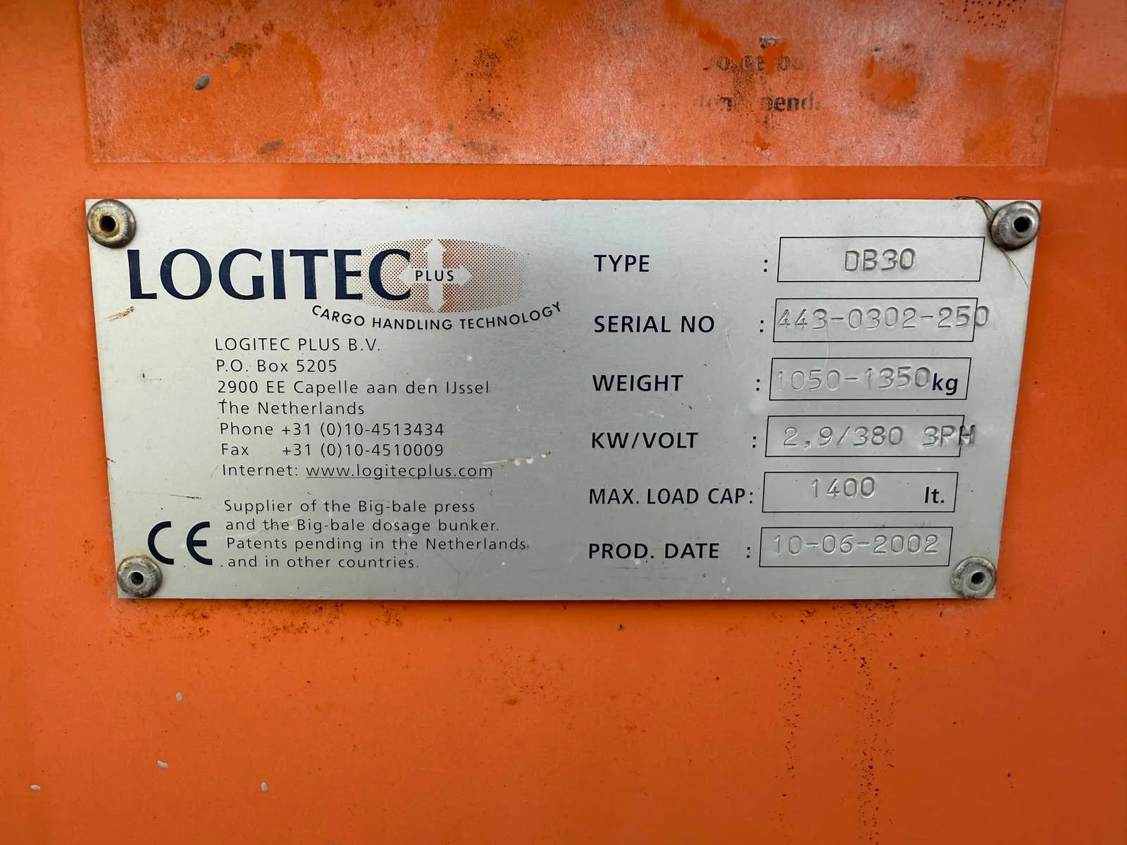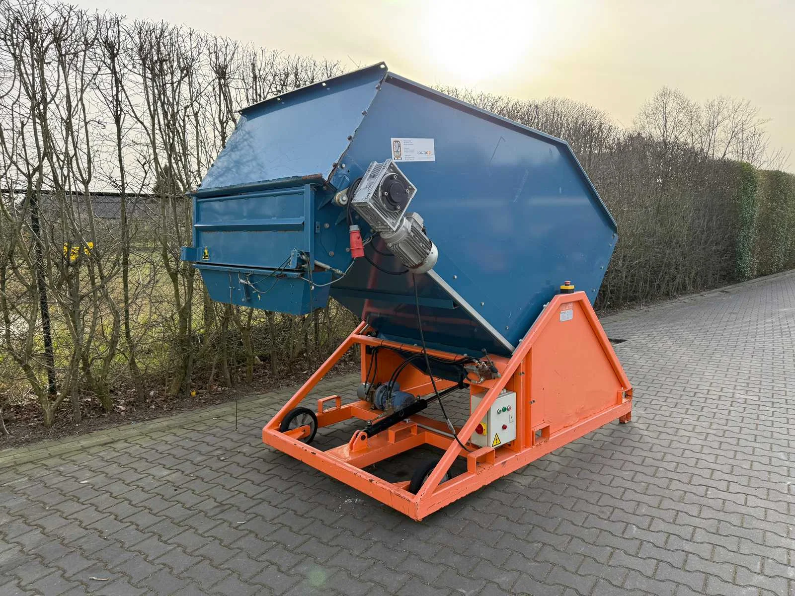 Verrijdbaar, Hydraulisch kantelbaar, Inhoud 1400L Merk: Logitec Type: DB90 Bouwjaar: 2002 Serienummer: 443-0302-250 Band afm. b: 1250mm Elektrisch aangedreven: true Aansluiting: 400V Eigen gewicht: 1350kg Totale afmeting L: 3050mm Totale afmeting Breedte: 1550mm Totale afmeting Hoogte: 2250mm