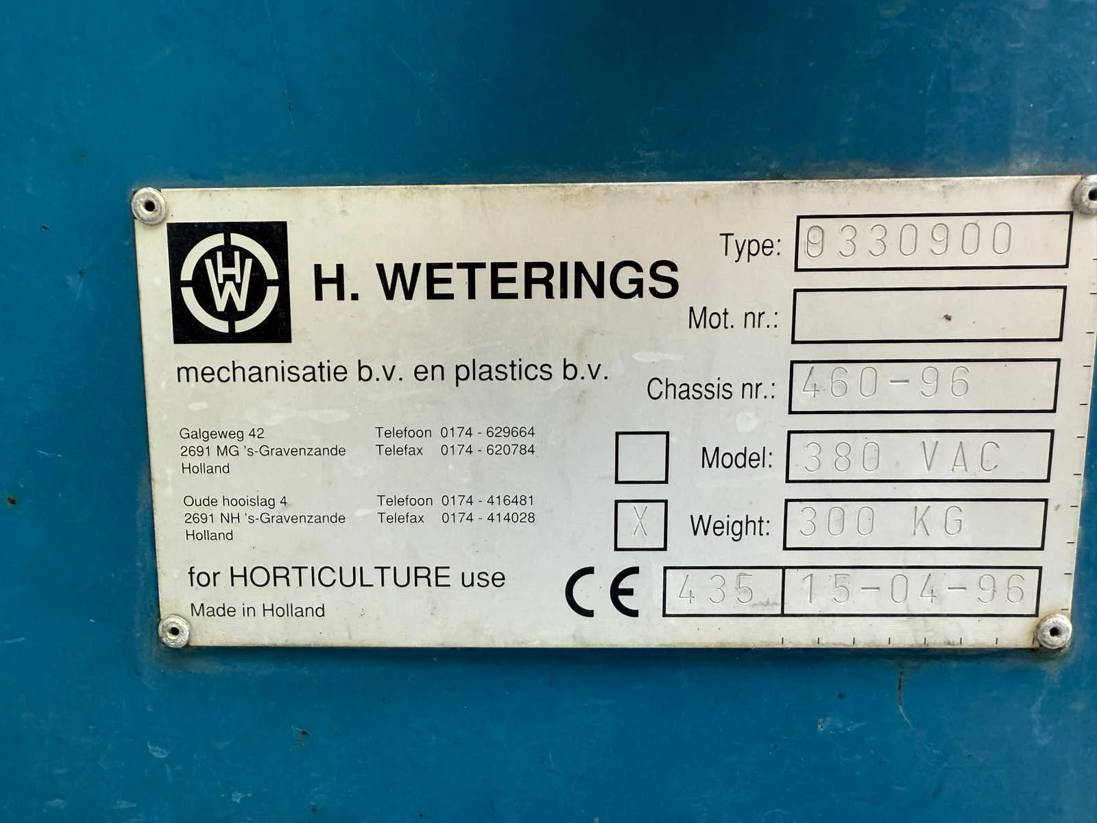 400V 16A 5-polige stekker, Grundfos pomp, haspel in snelheid regelbaar, met slang begeleider, afstandsbediening, Merk: Wetering Type: 380VAC Bouwjaar: 1996 Serienummer: 460-96 Waterhaspel: true