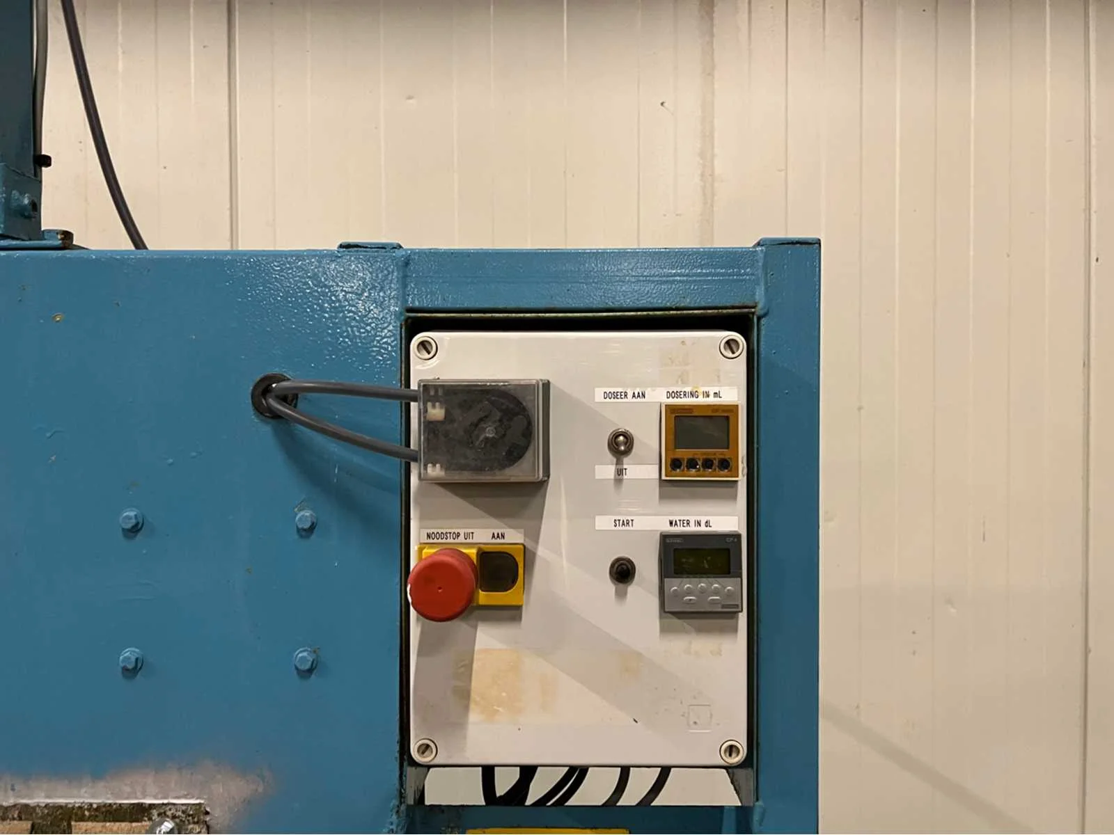 Voorzien van digitale aflezing (deciliter) en dosering Merk: Berg produkt de Lier Type: 40130/BEM05C Serienummer: 1119 Aansluiting: 380V Eigen gewicht: 60kg Totale afmeting L: 880mm Totale afmeting Breedte: 760mm Totale afmeting Hoogte: 231mm