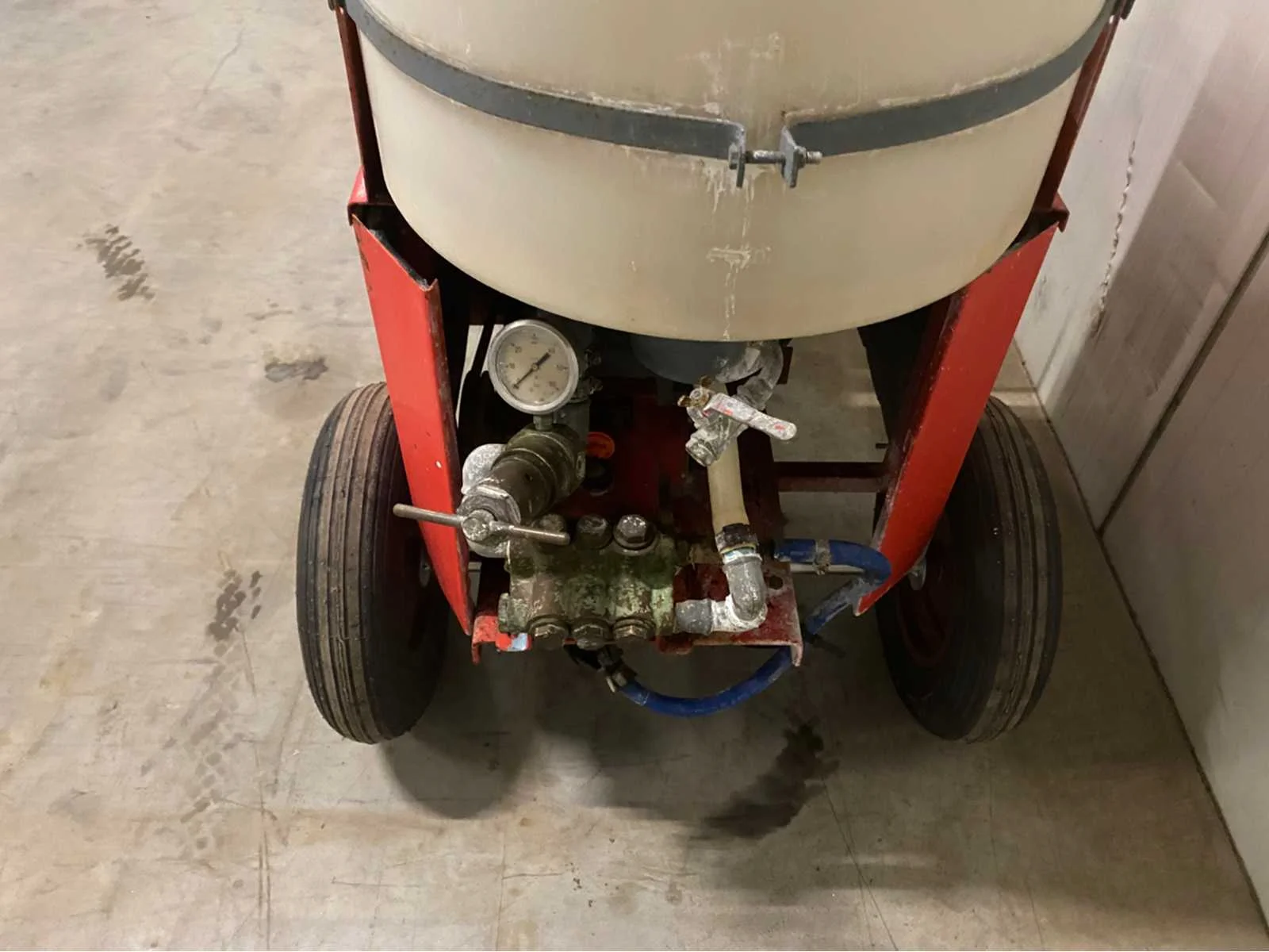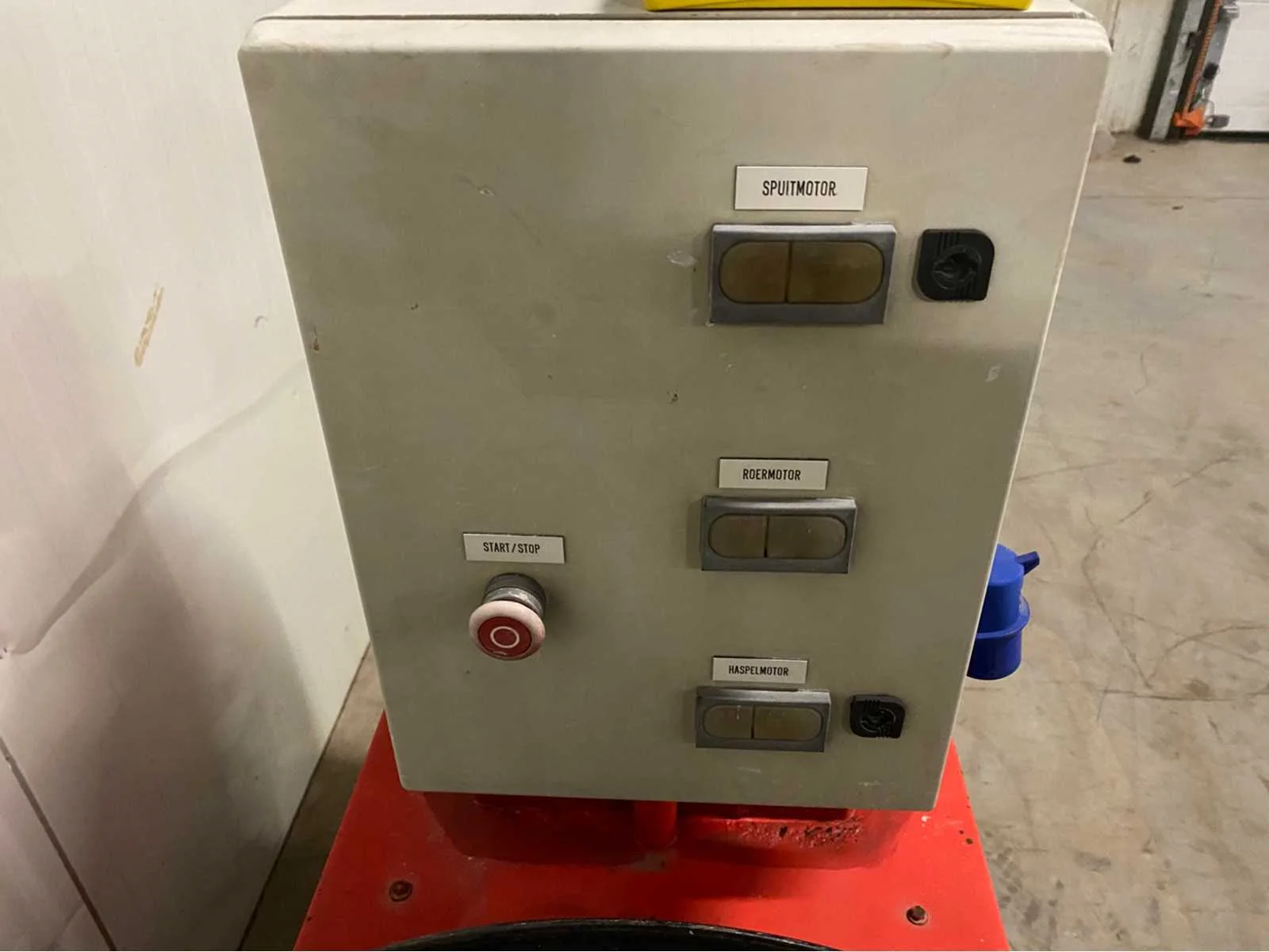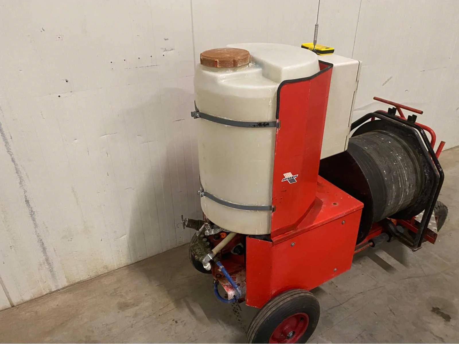 Voorzien van haspel met plunjerpomp,slangenbegeleiding , volume inhoud: 80 liter ,zender aanwezig, Totaal afmeting: L 1700 x B 750 x H 1350 mm Merk: Brinkman Diameter ca.: 600mm