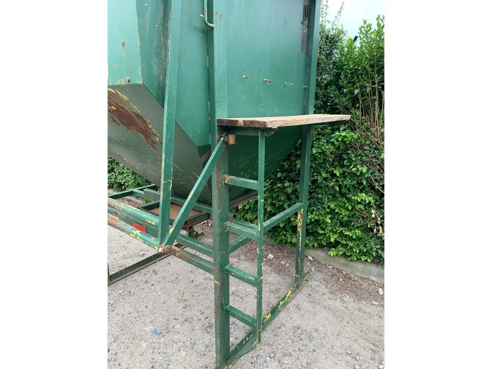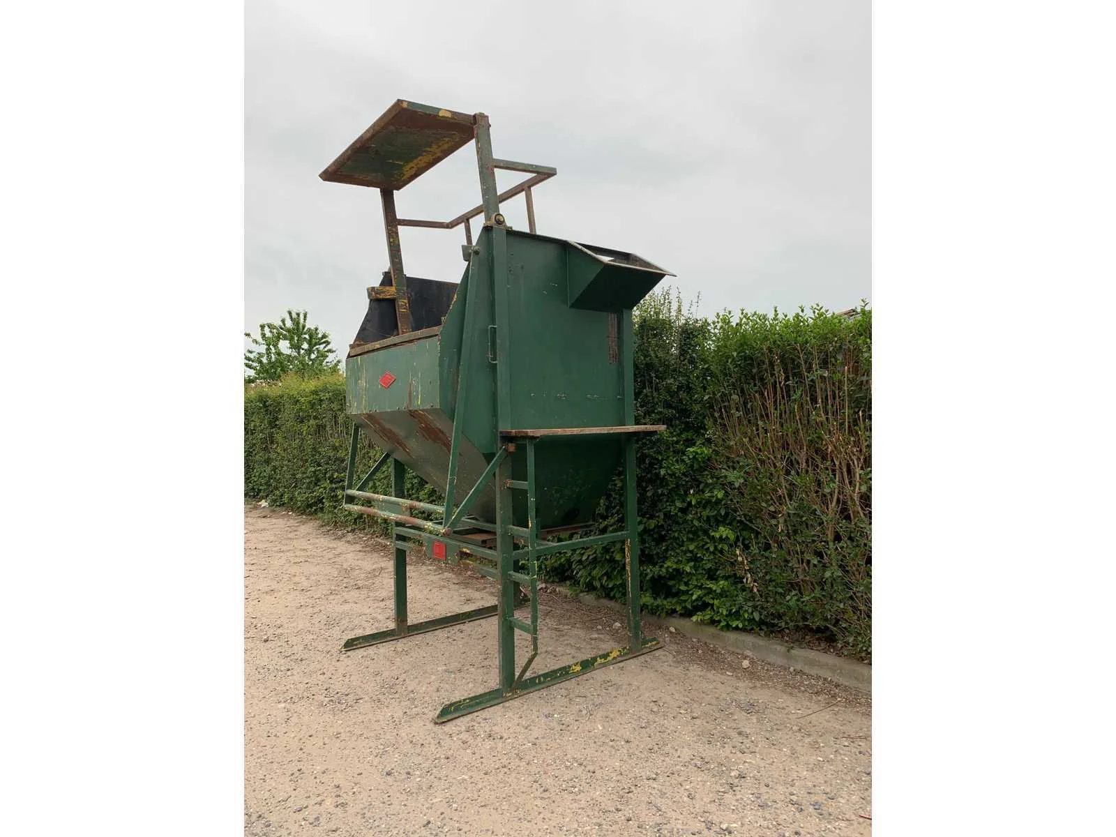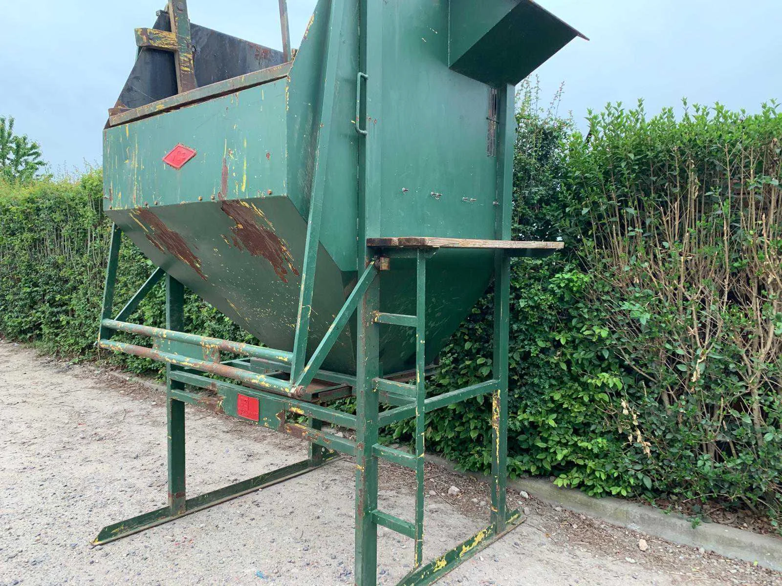 Kisten kantelaar plateau afmetingen bxdxh = 1450x1000x1400mm, stortopening zit circa op 850mm, mechanische 500mm brede doseerschuif, met valbreker Merk: Kooijman Kratafmeting l: 1100mm Kratafmeting b: 1450mm Totale afmeting L: 2100mm Totale afmeting Breedte: 2100mm Totale afmeting Hoogte: 3800mm