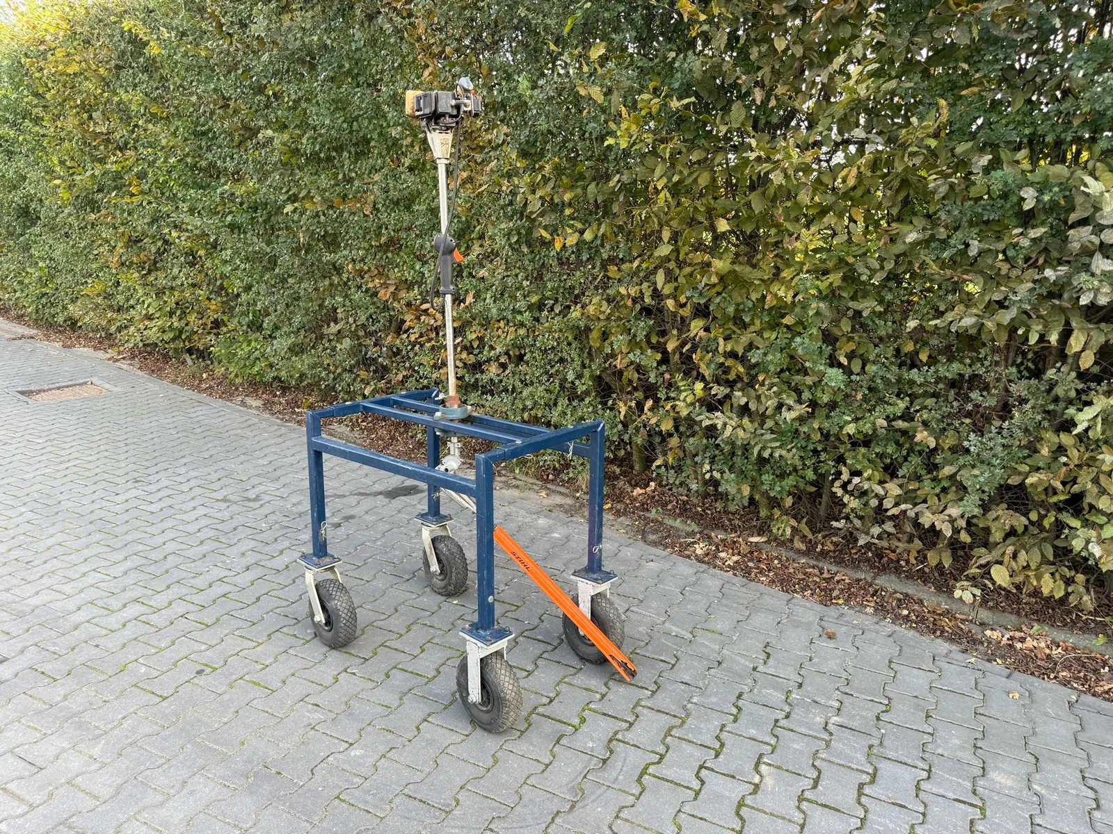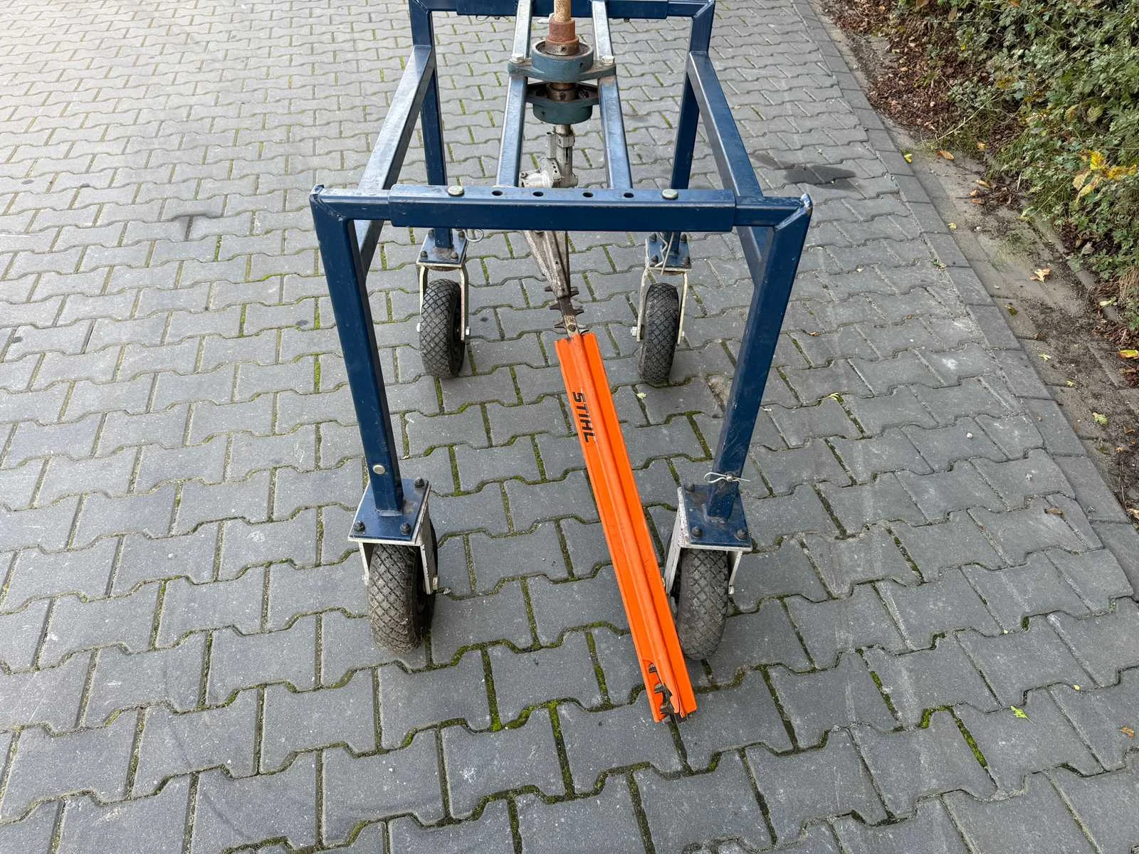 Meslengte: 800mm, in hoogte, breedte en schuinte te verstellen, mes van 550mm los erbij, Merk: Stihl Totale afmeting L: 1200mm Totale afmeting Breedte: 700mm Totale afmeting Hoogte: 2100mm