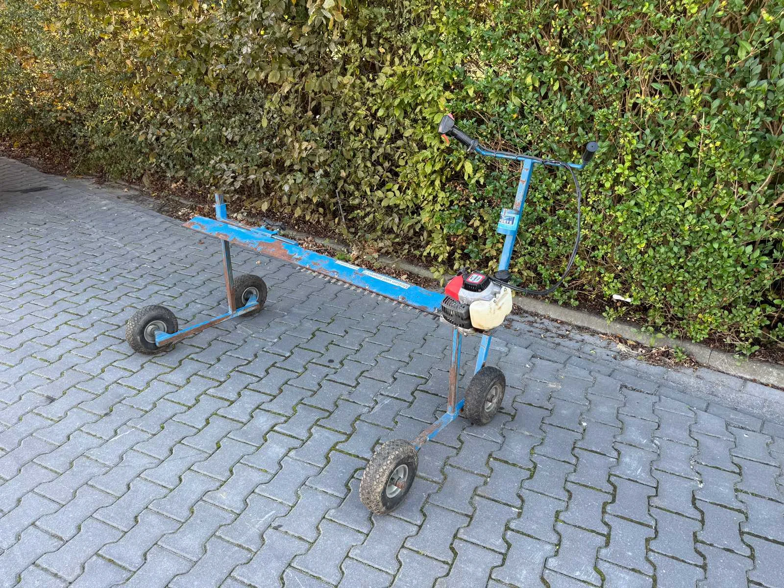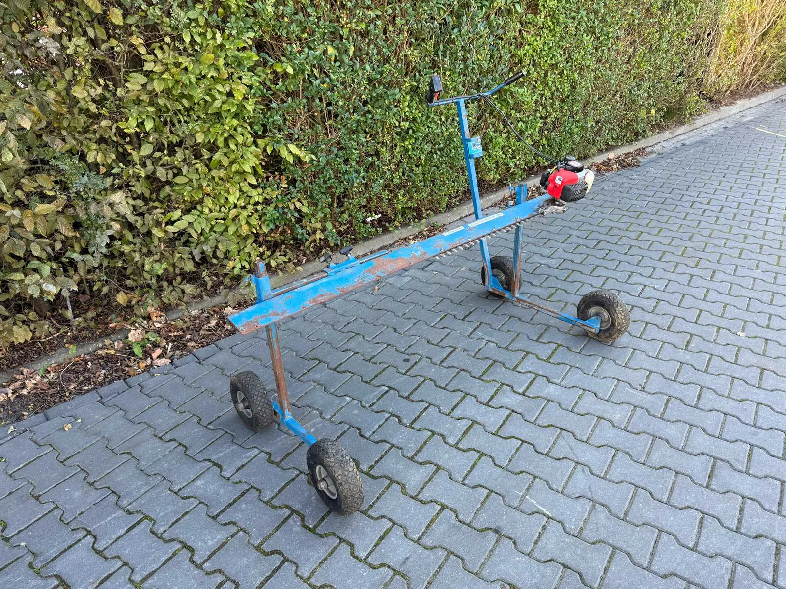 Voorzien van: benzinemotor, maaibreedte 700mm, spoor en hoogte te verstellen, Merk: Voets Totale afmeting L: 800mm Totale afmeting Breedte: 2000mm Totale afmeting Hoogte: 1200mm