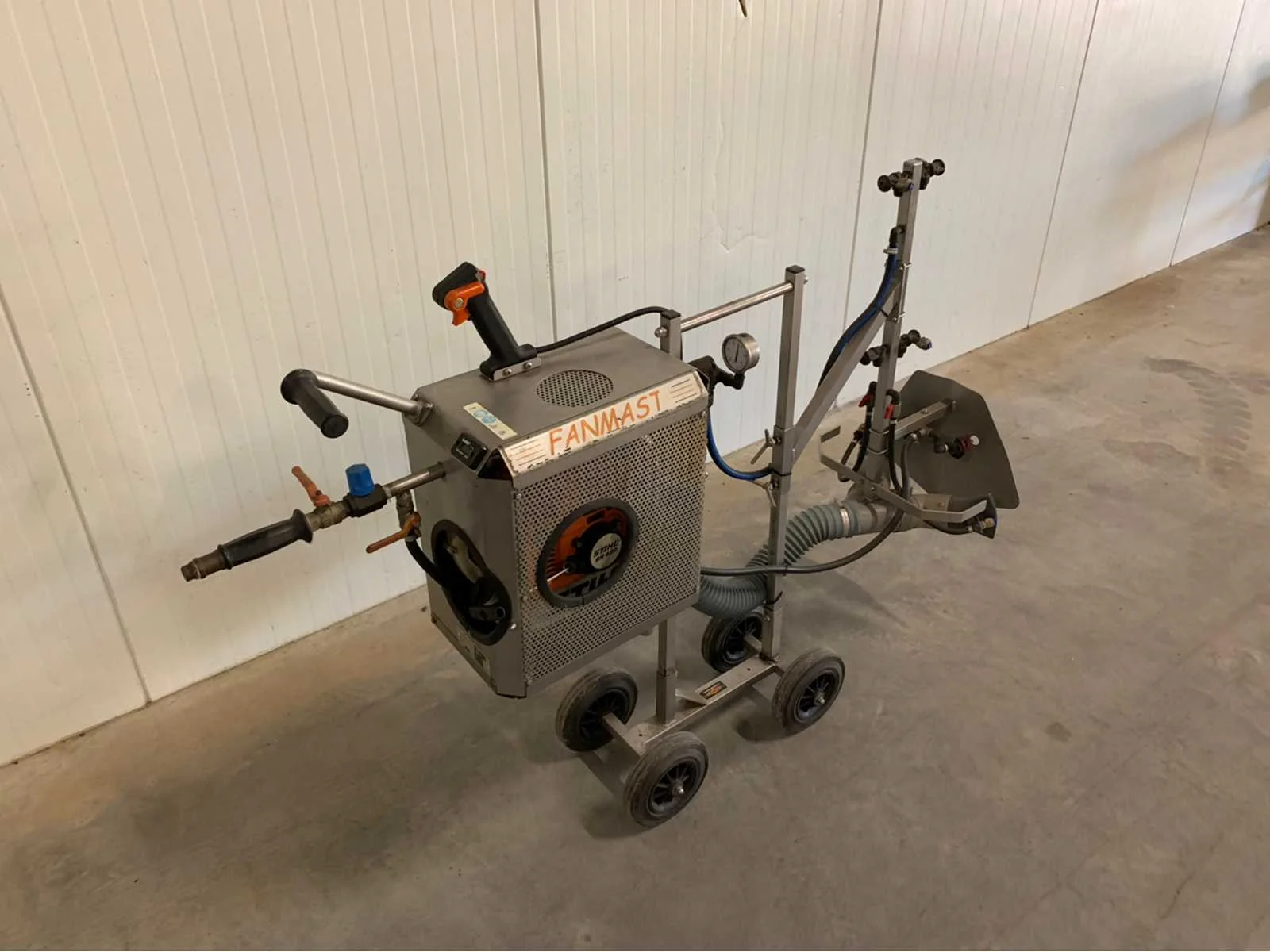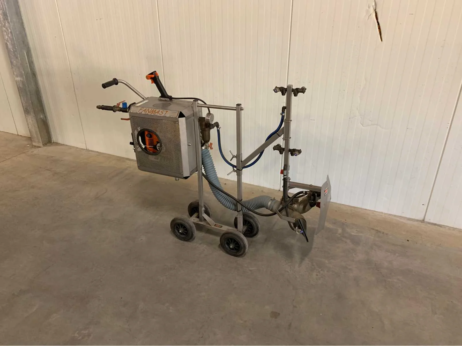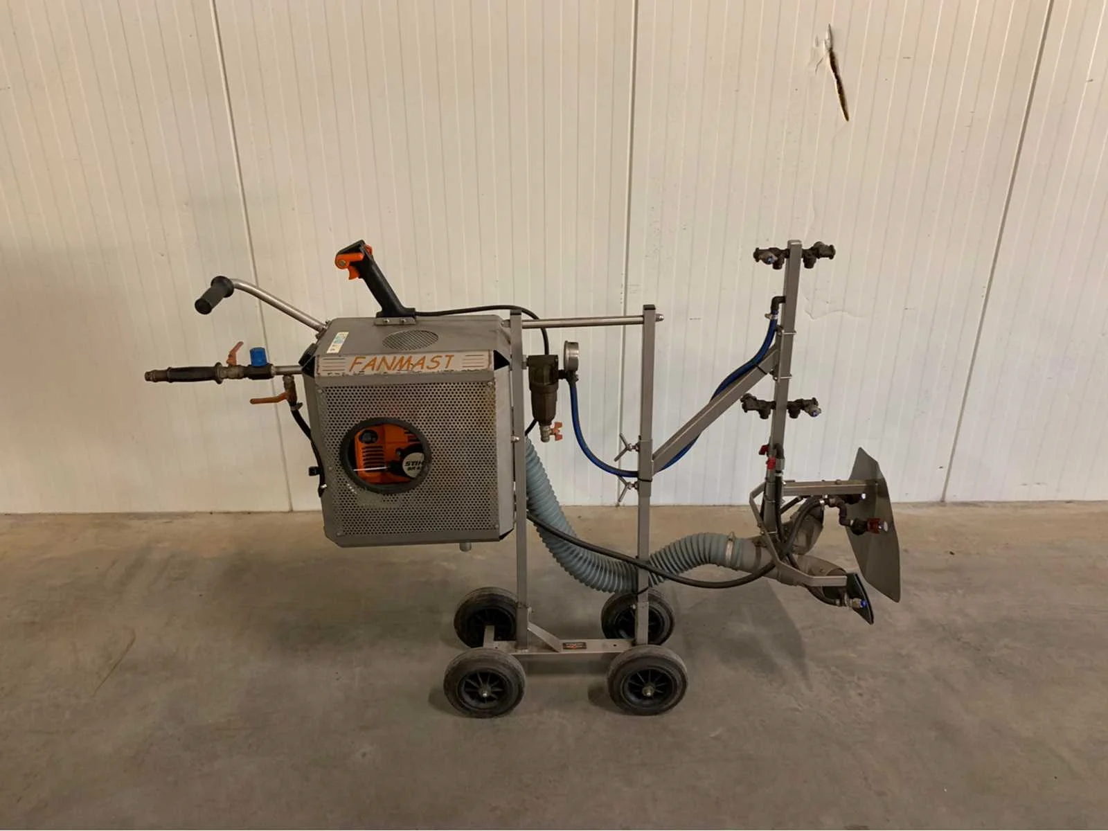 Geheel RVS, voorzien van: Stihl bladblazer motor, verstelbare spuitkoppen, luchtondersteuning, spuithoogte verstelbaar, spoorbreedte 230mm, Merk: Empas Fanmast Totale afmeting L: 1700mm Totale afmeting Breedte: 400mm Totale afmeting Hoogte: 1150mm