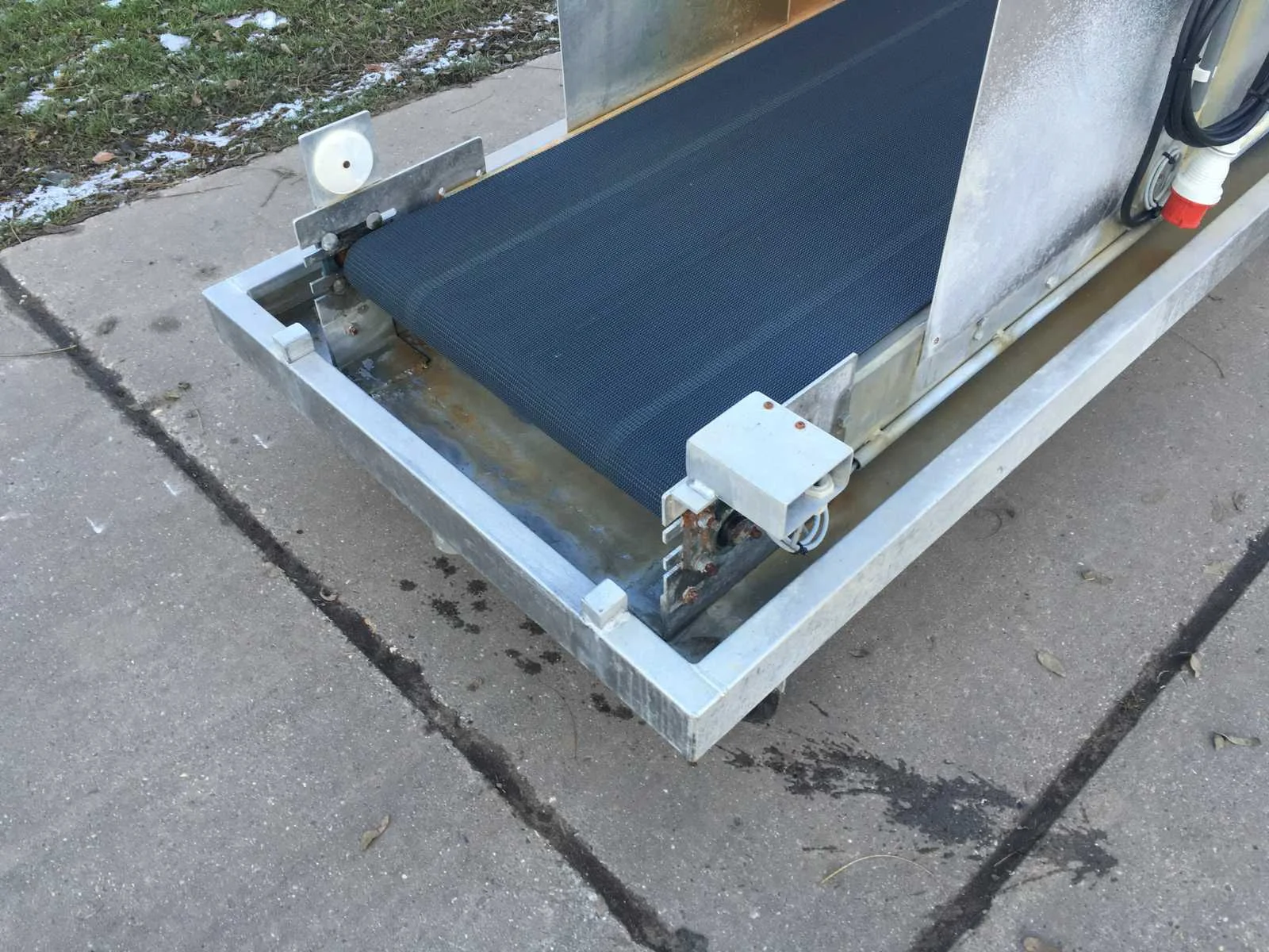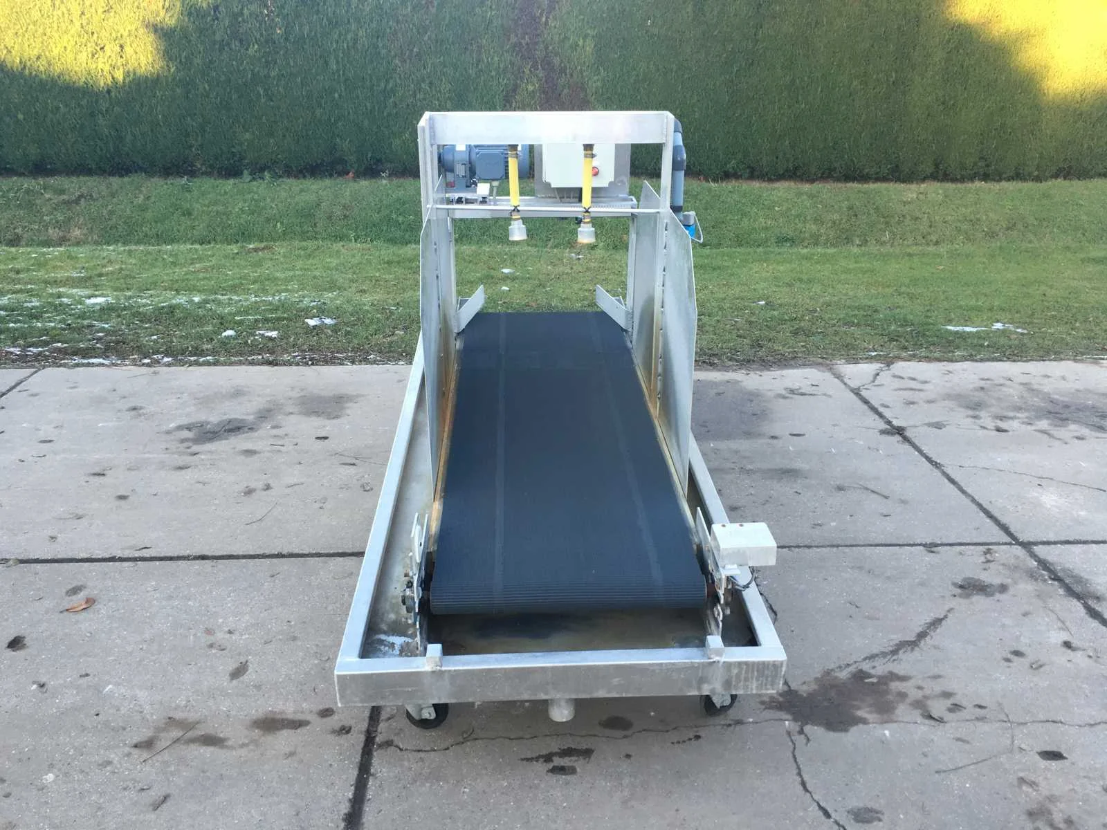 400v 16A 5-polige stekker, GK koppeling watertoevoer, Elektrische kraan, transportband 600mm breed, Opvangbak, verrijdbaar, Aansluiting: 400V Totale afmeting L: 2200mm Totale afmeting Breedte: 960mm Totale afmeting Hoogte: 1300mm