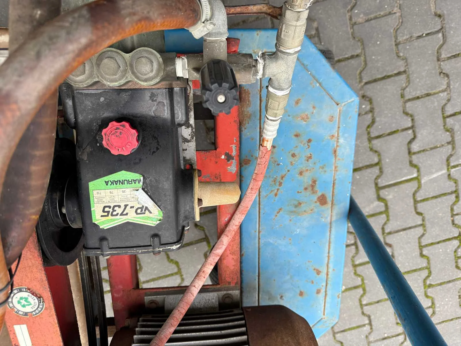 Plungerpomp, 35l/min, 75 Bar, 400V 16A 5-polige stekker, Ster/driehoek schakeling, 30mm sleepoog Merk: Wetering Capaciteit.: 35l/min Tankinhoud: 400l Totale afmeting L: 1800mm Totale afmeting Breedte: 1050mm Totale afmeting Hoogte: 1350mm