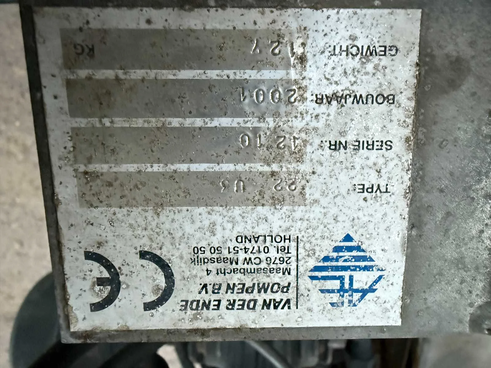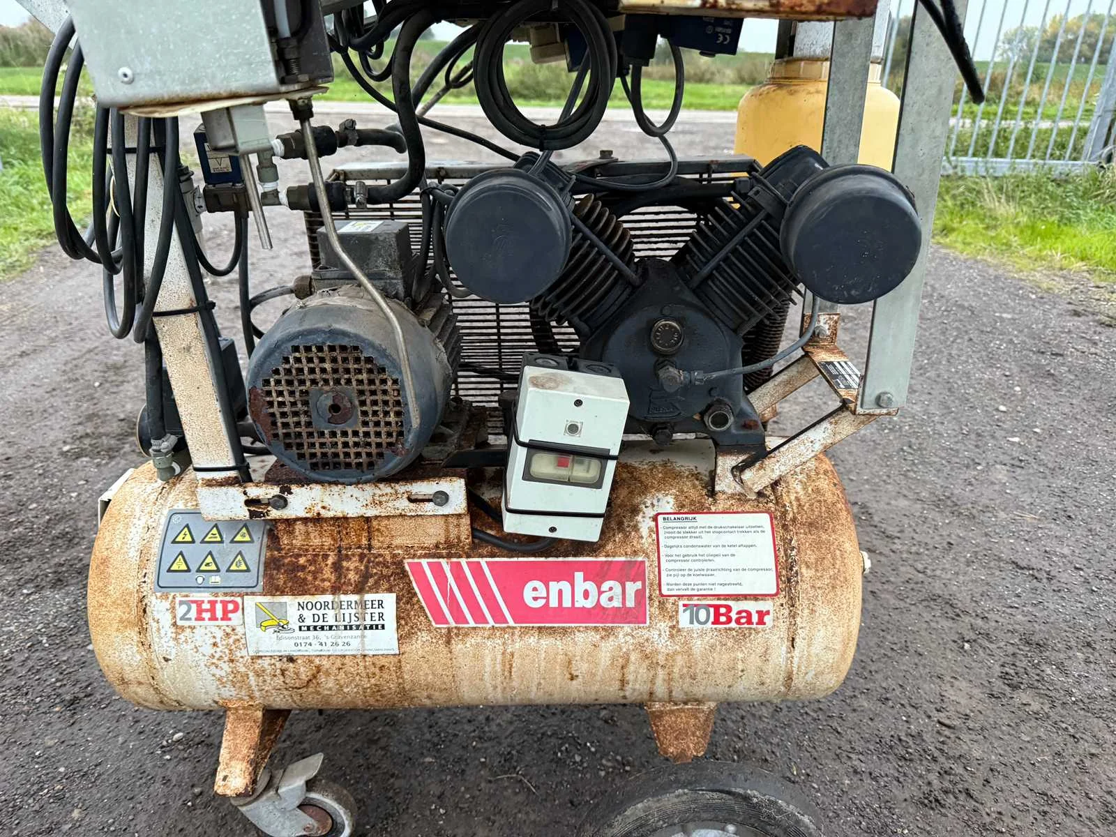 Pulska 400V compressor max 10 bar, timers 0,5-4 uur neveltijd, 0.5-7,50 uur voorventileren, Merk: enbar Type: 22-U3 Bouwjaar: 2001 Serienummer: 1210 Eigen gewicht: 127kg Totale afmeting L: 1000mm Totale afmeting Breedte: 900mm Totale afmeting Hoogte: 1300mm
