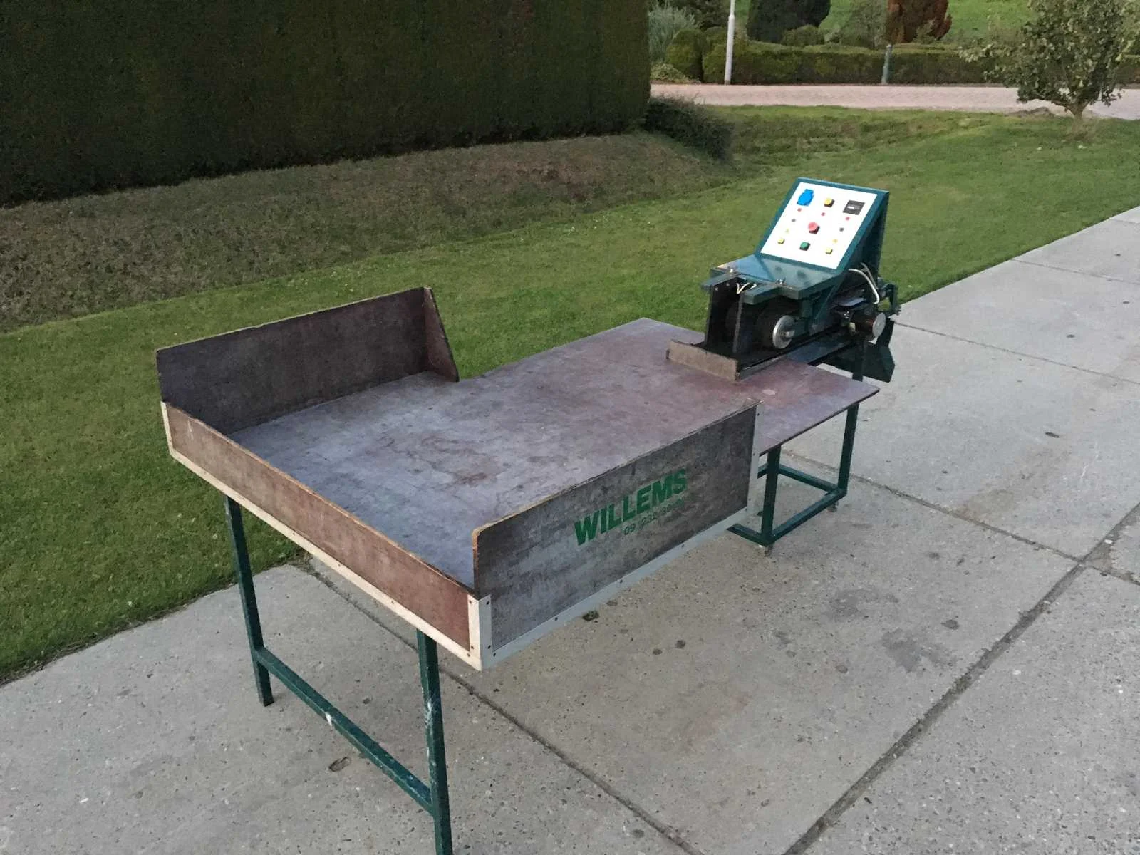 Klemrollen 235mm breed, mes links en rechts, max 295mm breed, verstelbare platen, houten werktafel Merk: Willems Patrick Aansluiting: 230V Totale afmeting L: 1000mm Totale afmeting Breedte: 550mm Totale afmeting Hoogte: 1200mm