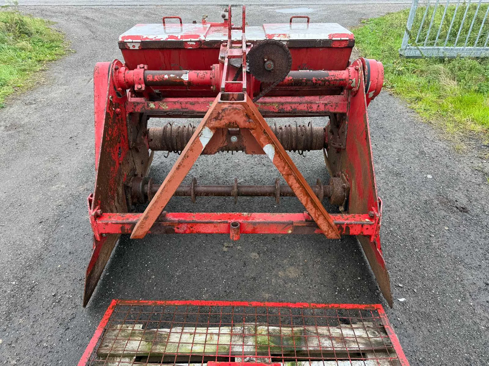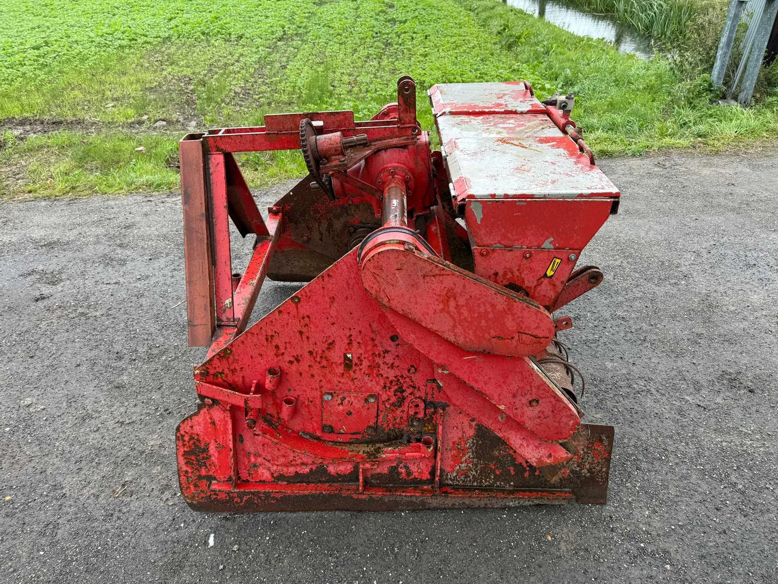 Accord aansluiting, PTO aangesloten, Spitbladen los aanwezig, verkruimelrol, Zaaimachine hydraulisch regelbaar met RVS bak Merk: De Clippeleir Werkbreedte: 1200mm Totale afmeting L: 1500mm Totale afmeting Breedte: 1450mm Totale afmeting Hoogte: 1250mm