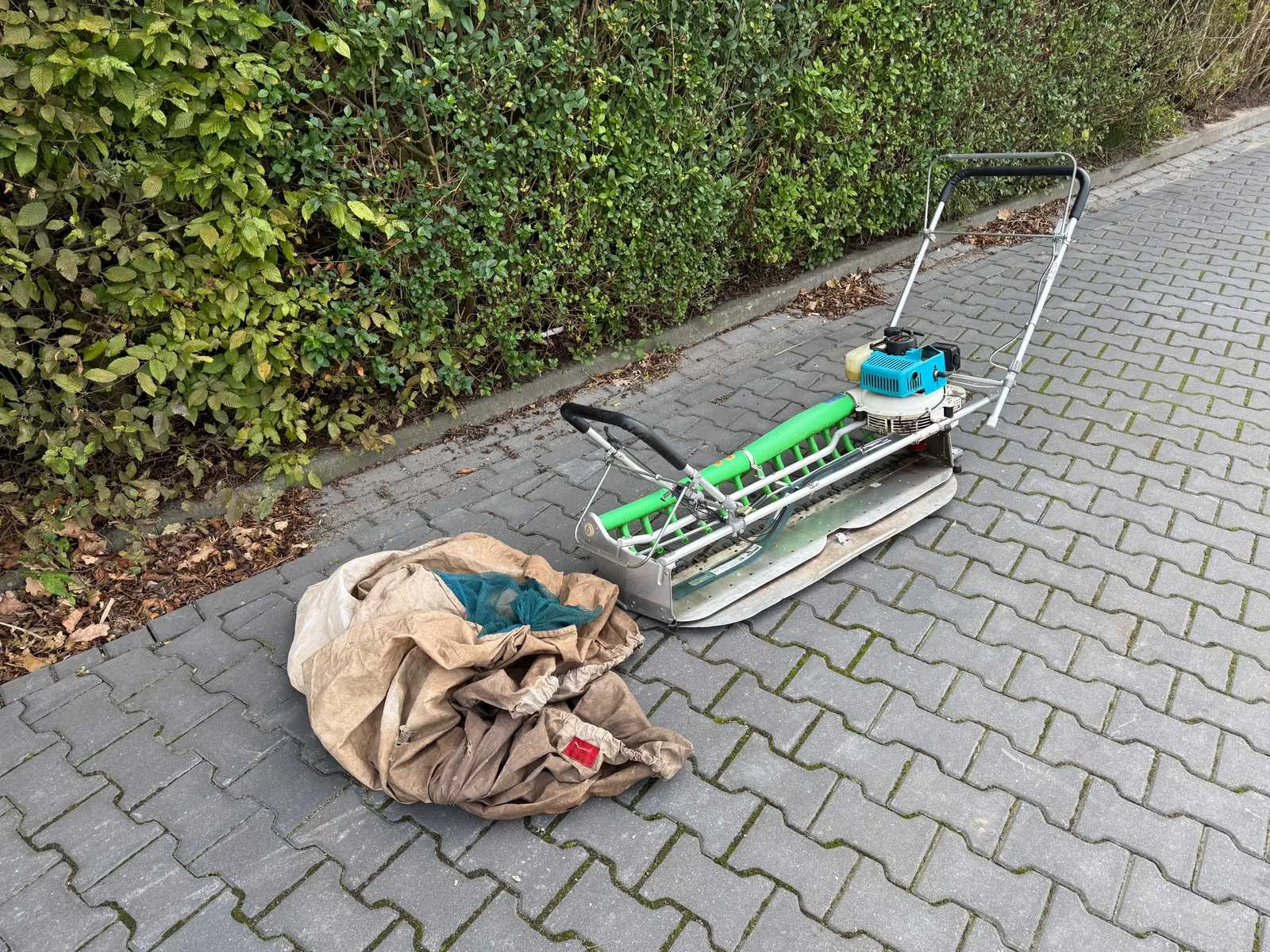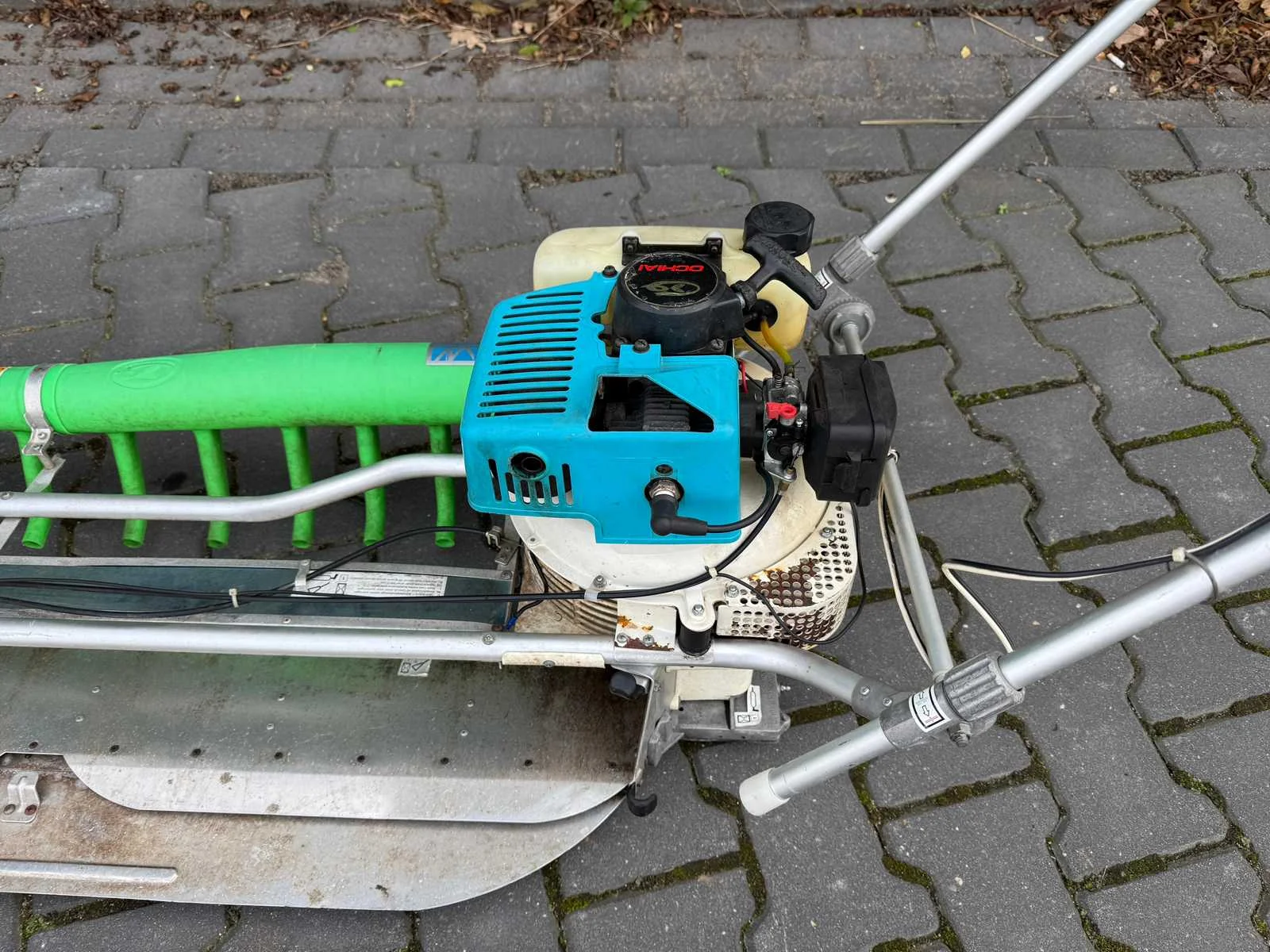 Met blaasbuis, Ochiai benzine motor, met opvangzak Merk: Easycut Type: Supercut 2000 NT Bouwjaar: 2001 Serienummer: A3154-000103 Lengte: 1150mm Brandstofmotor aangedreven: true Brandstof: Benzine Totale afmeting L: 550mm Totale afmeting Breedte: 1300mm Totale afmeting Hoogte: 950mm