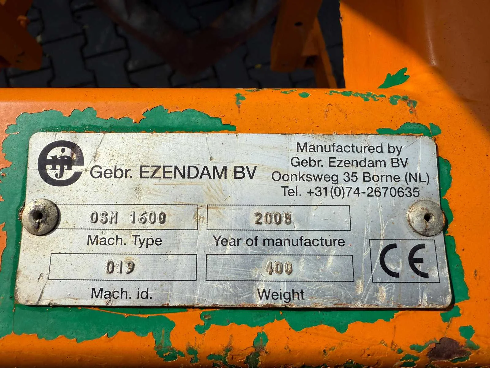 3-punt hef, in diepte verstelbaar, mes 1550mm breed, Merk: Ezendam Type: OSM1600 Bouwjaar: 2008 Serienummer: 019 Eigen gewicht: 400kg Werkbreedte: 1550mm Totale afmeting L: 2100mm Totale afmeting Breedte: 2200mm Totale afmeting Hoogte: 1600mm