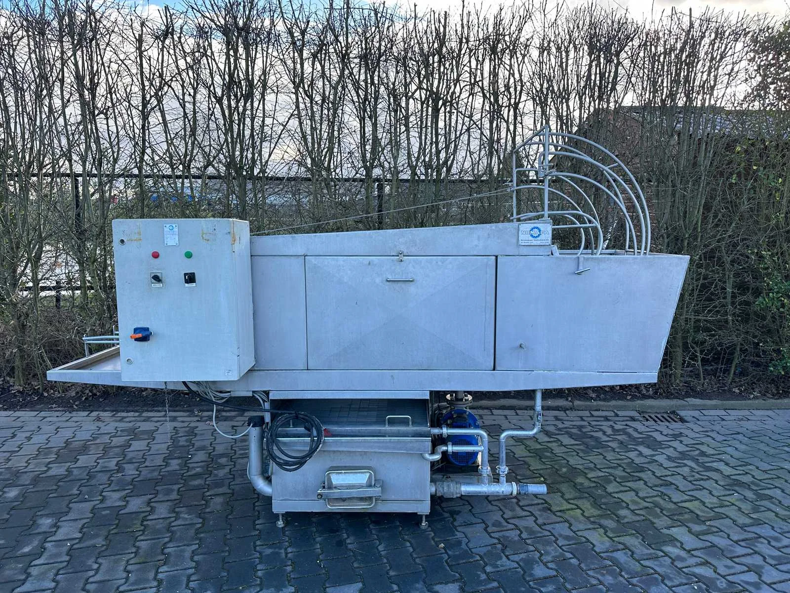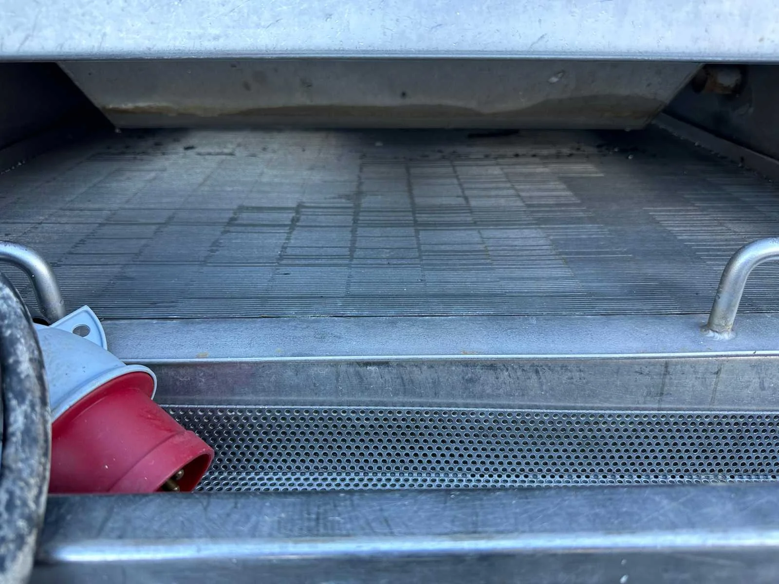Breedte en hoogte verstelbaar, breedte max 750mm, 400V 32A 5-polige stekker, geschikt voor 600x400mm kisten, met verwarming Merk: Numafa Type: N HWR200/3 Serienummer: 400119 Doorvoerhoogte: 350mm Aansluiting: 400V Eigen gewicht: 300kg Totale afmeting L: 3150mm Totale afmeting Breedte: 1400mm Totale afmeting Hoogte: 2000mm