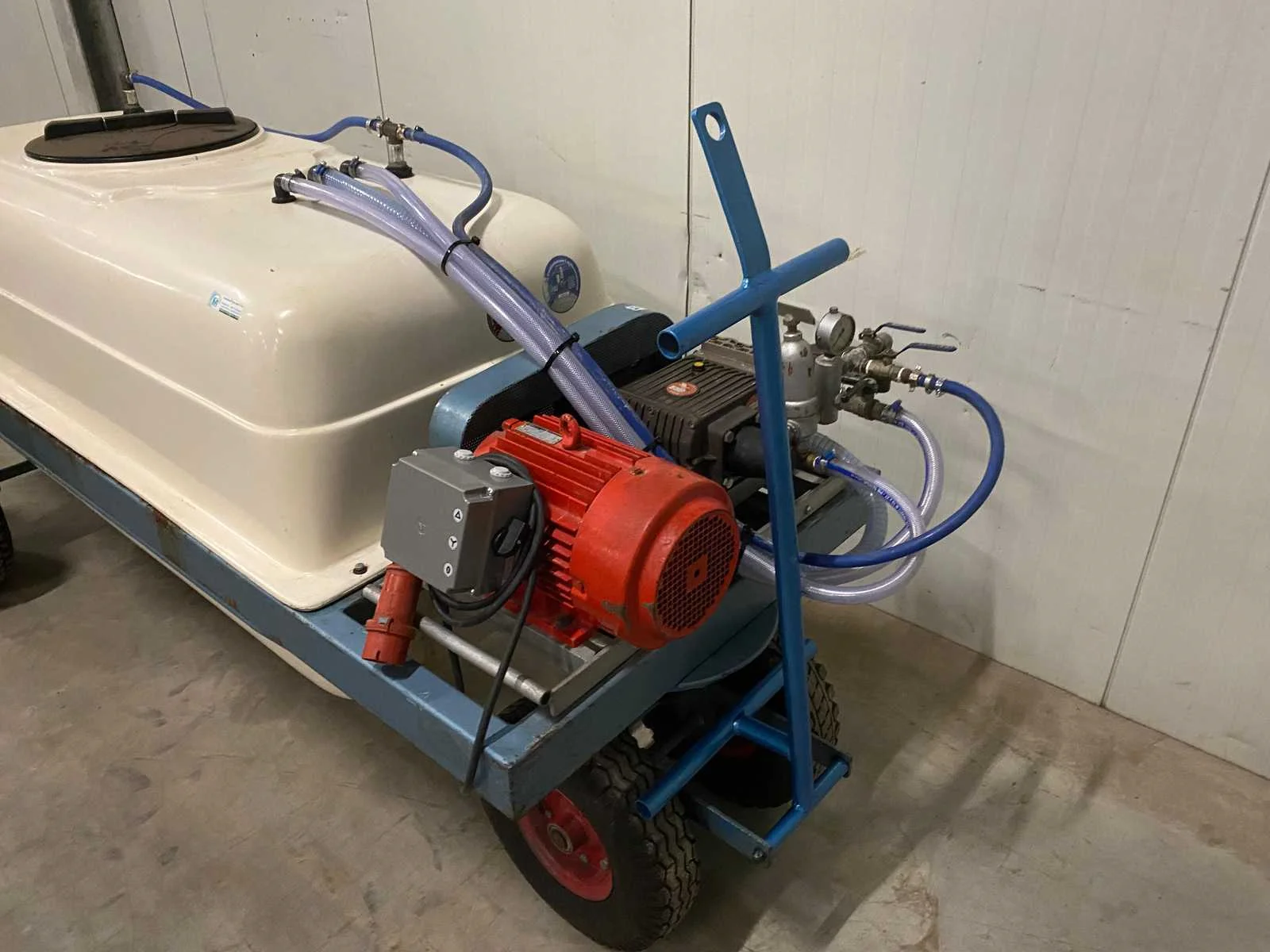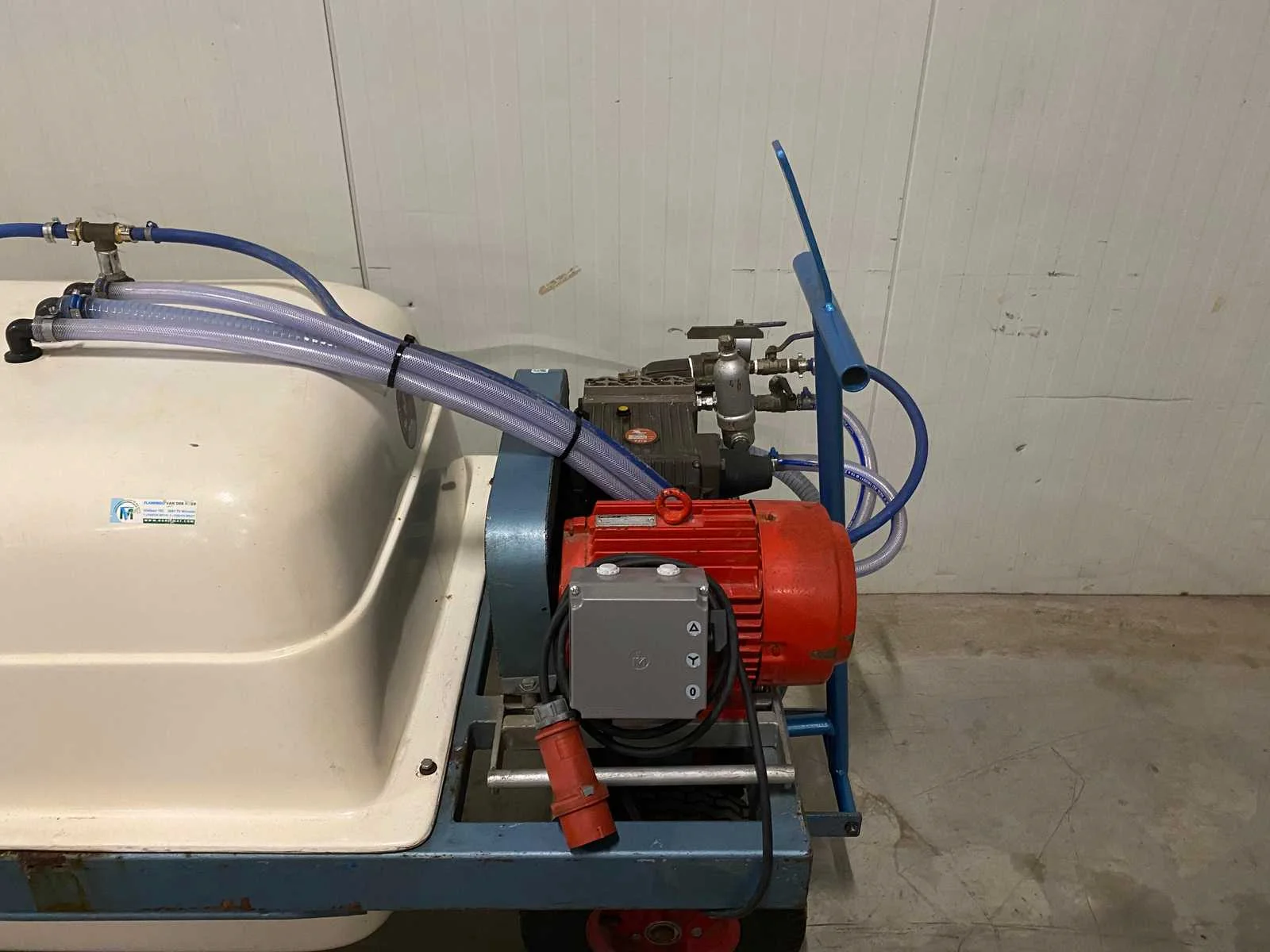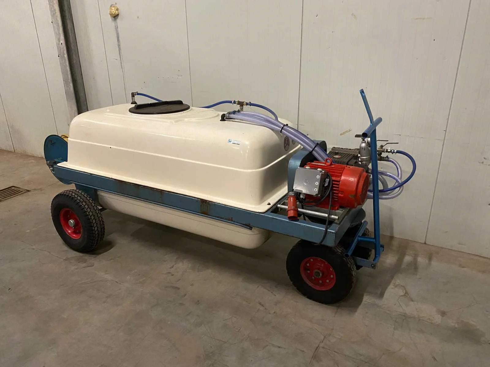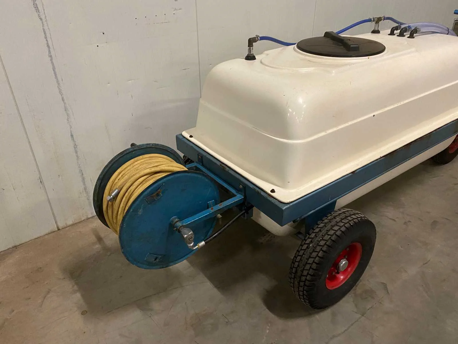 Voorzien van Ripa plunjerpomp capaciteit: 50 bar, 37 liter per min. elektrisch aangedreven, volume tank inhoud: 1000 liter. met haspel voorzien van circa 25 meter slang Tankinhoud: 1000l Totale afmeting L: 3350mm Totale afmeting Breedte: 1300mm Totale afmeting Hoogte: 1350mm