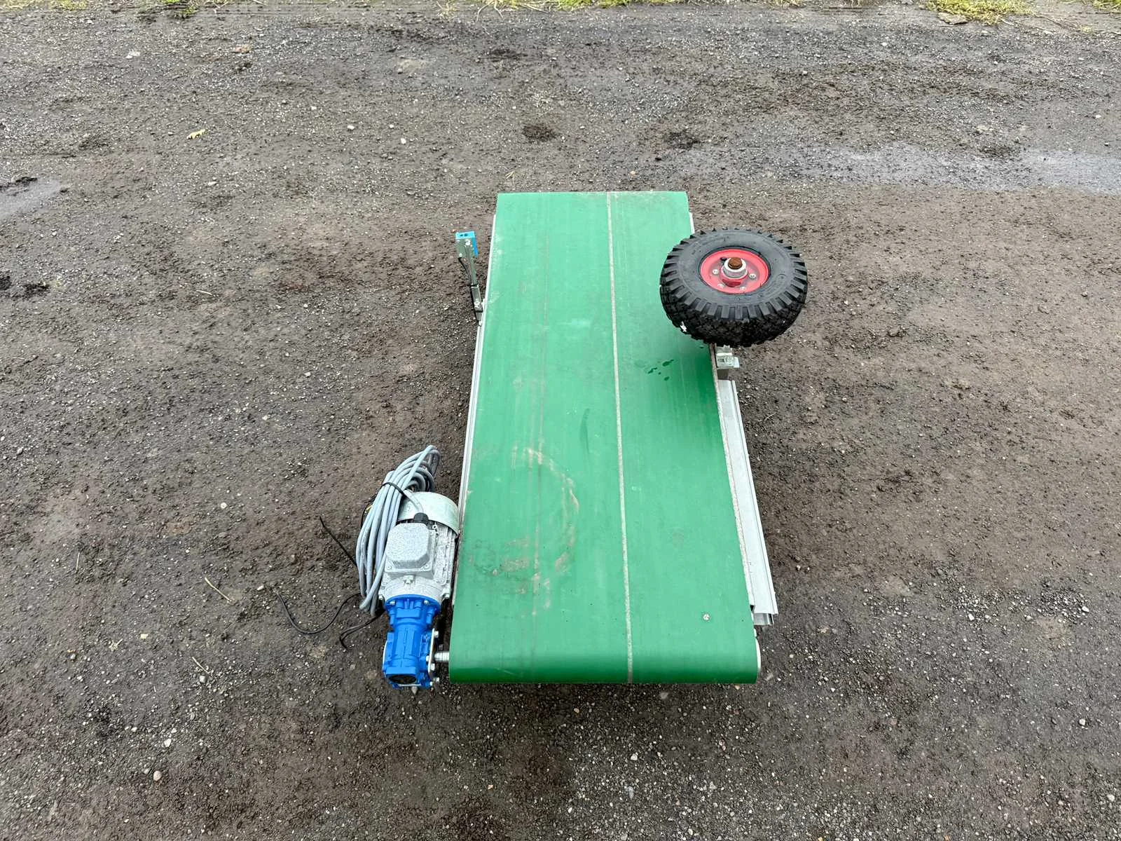 230Vm , 4.00-4 wiel ter begeleiding, sensor, bandbreedte 480mm Merk: BTM Lengte: 130cm Breedte: 85cm Hoogte: 50cm