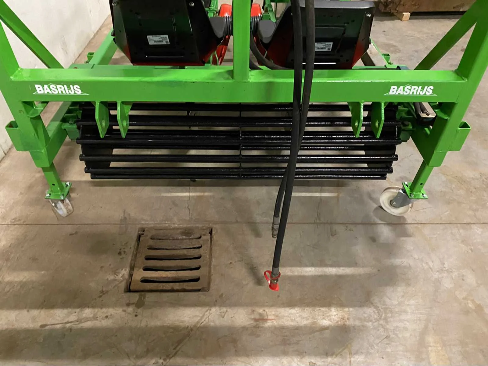3-punt hef, Hydraulisch aangedreven, snelheid regelbaar, verstelbare rijen, zaaischijf 700mm doorsnee, RVS vorentrekker Merk: Basrijs Totale afmeting L: 2550mm Totale afmeting Breedte: 1650mm Totale afmeting Hoogte: 1200mm