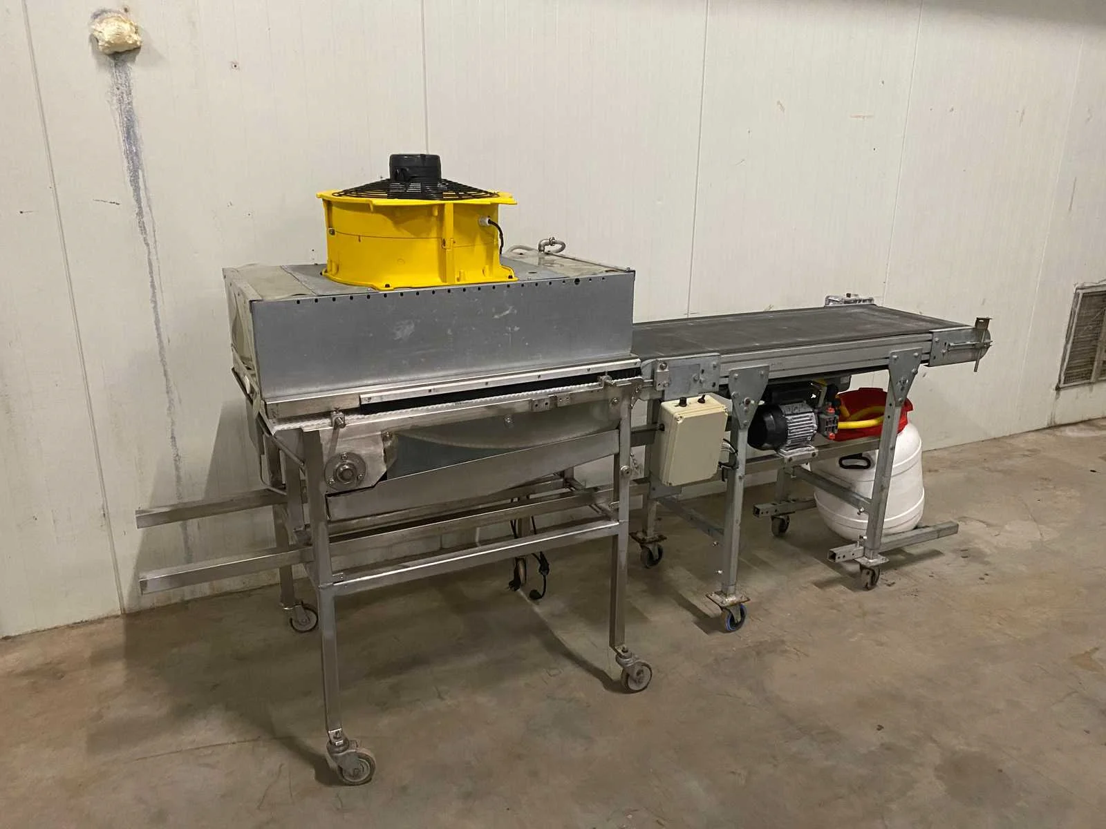 230V, ontsmettings sproeiers, Droog ventilator, toevoerband 500mm breed, interne band 2x 230mm breed verstelbaar Lengte: 2750cm Breedte: 1000cm Hoogte: 1550cm