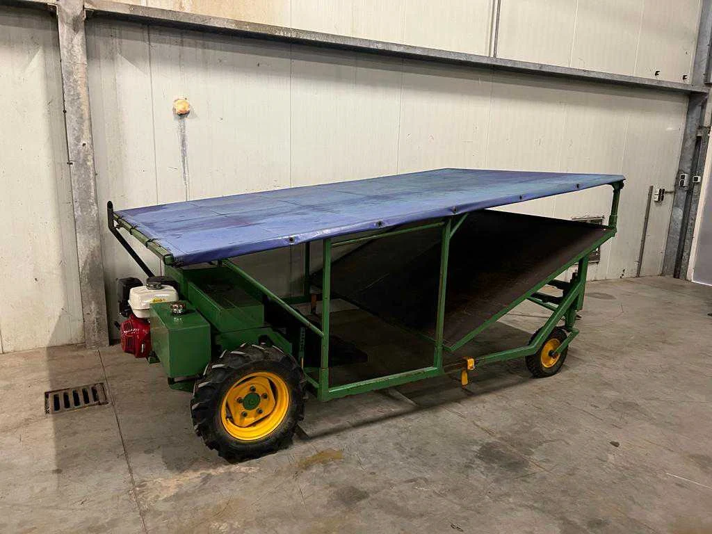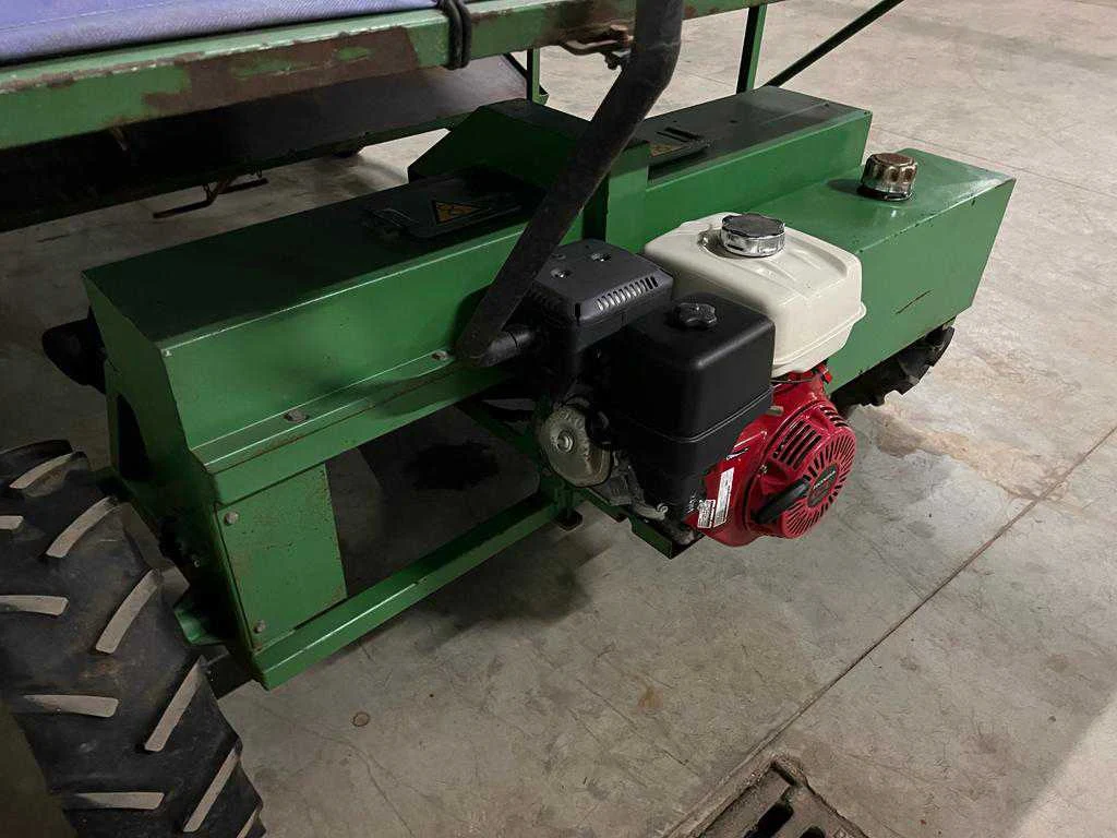 Honda GX340 benzinemotor, onafhankelijke wielbesturing middels hydrauliek, 2000x1600mm voorraadbak, huidige hartafstand 850mm, stoelen zijn in hoogte en in tussenafstand verstelbaar, Totale afmeting L: 3300mm Totale afmeting Breedte: 2000mm Totale afmeting Hoogte: 1350mm