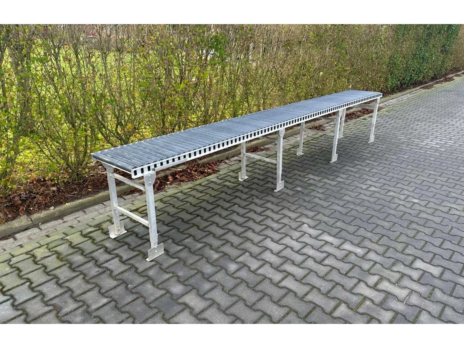 Rolbreedte: 490 x ø 50mm/ h.o.h. 50mm; poten in hoogte verstelbaar Totale afmeting L: 4500mm Totale afmeting Breedte: 550mm Totale afmeting Hoogte: 760mm