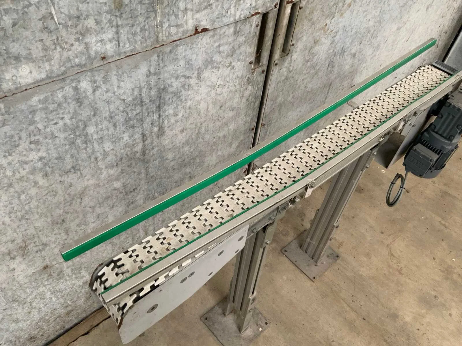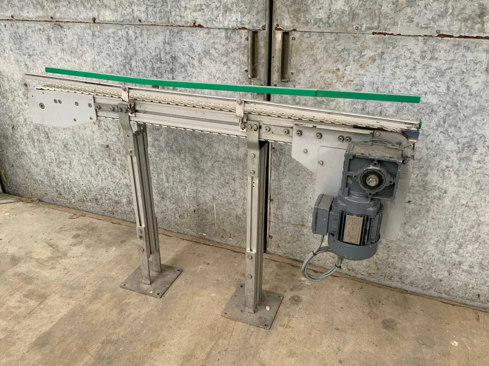 In hoogte verstelbaar, voorzien van kunststof band, kantgeleiders, elektrisch aangedreven, 400 volt Aansluiting: 400V Totale afmeting L: 1430mm Totale afmeting Breedte: 350mm Totale afmeting Hoogte: 885mm