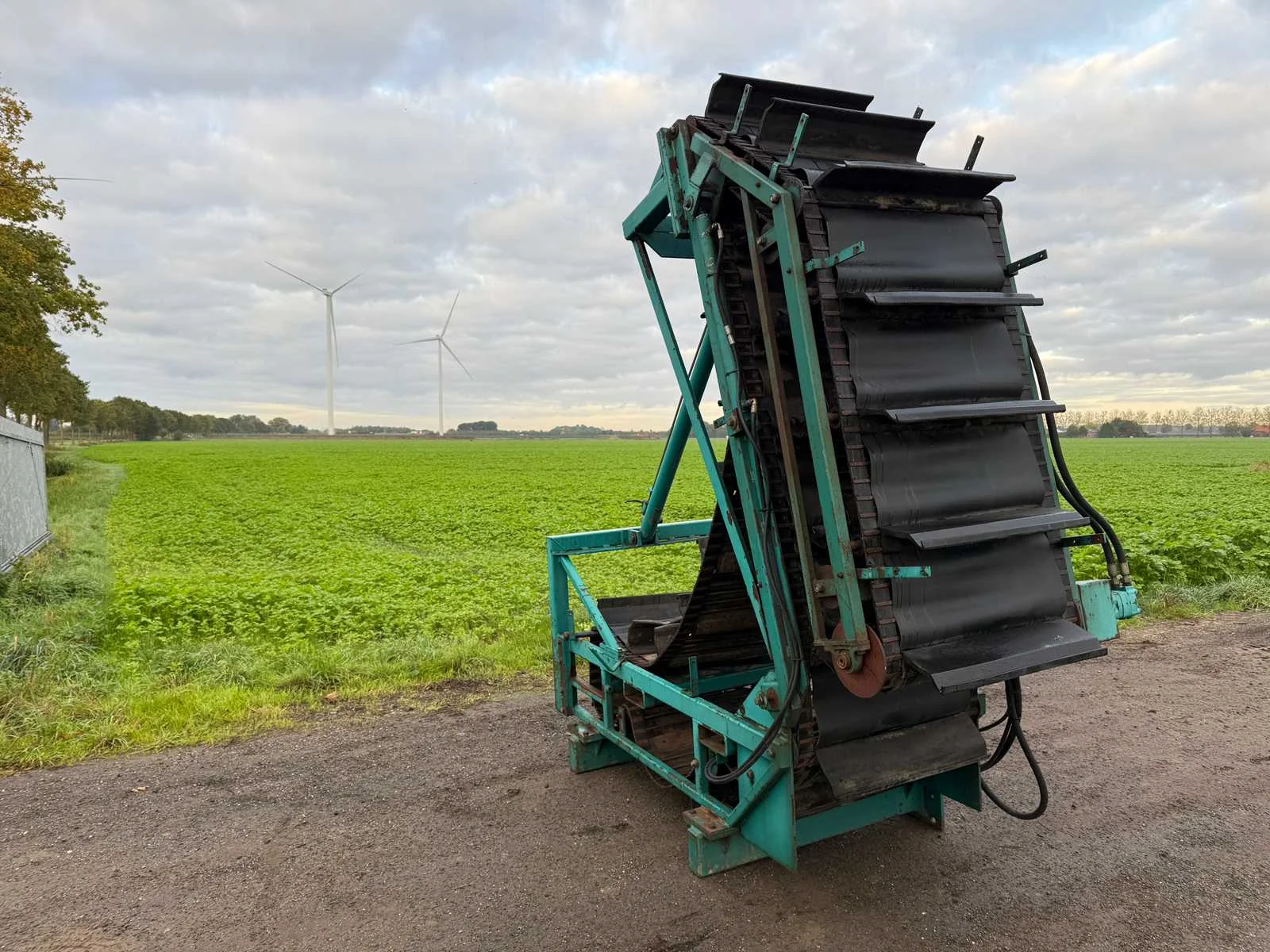 Hydraulisch aangedreven, Hydraulisch opklapbaar, bandbreedte 800mm, kammen 680mm breed, eindstuk 1500mm, schuin 2700mm, vlak deel onder 1600mm lang Merk: Botman Lengte: 260cm Breedte: 135cm Hoogte: 2950cm