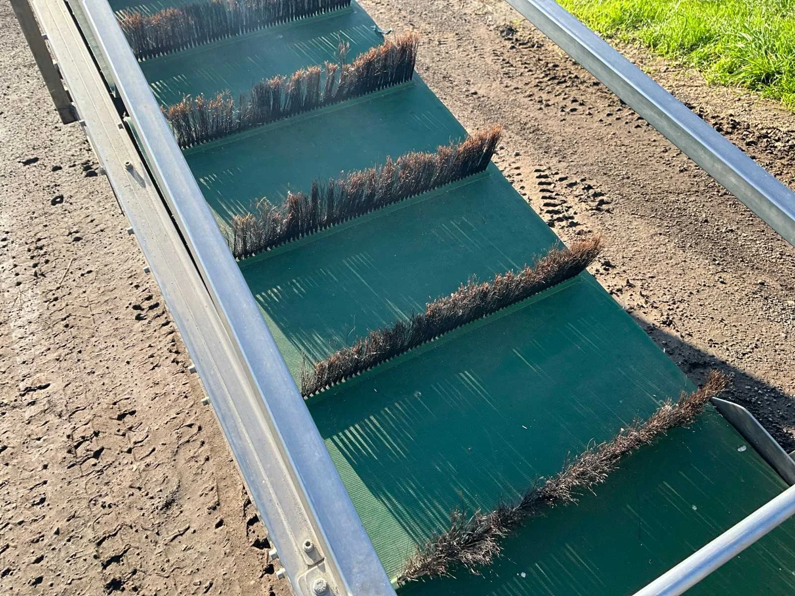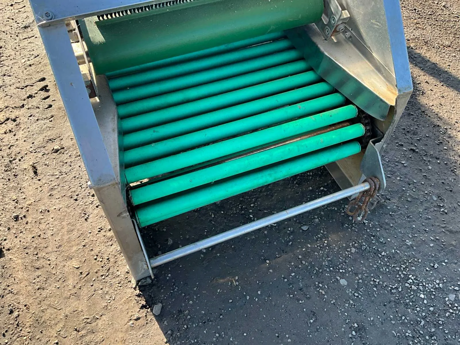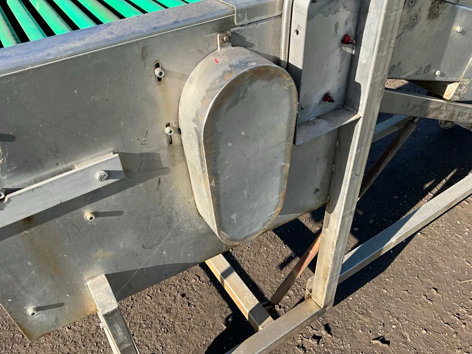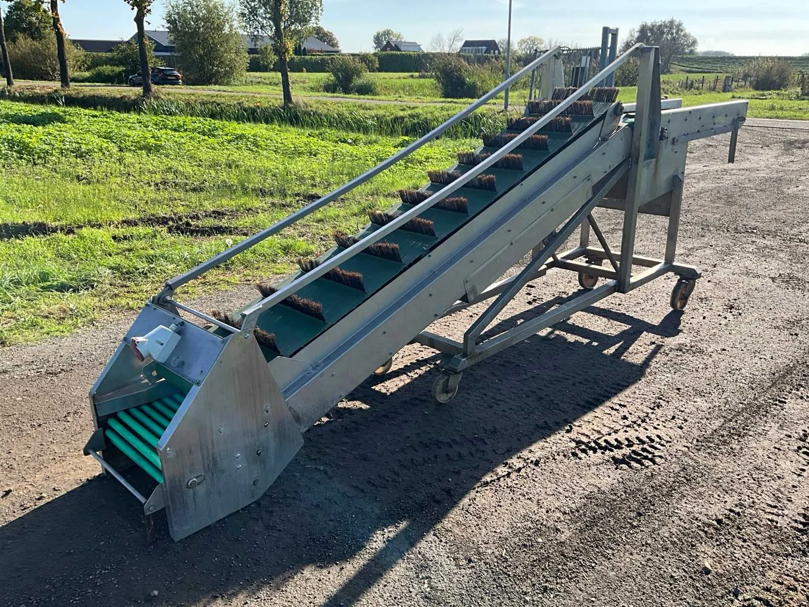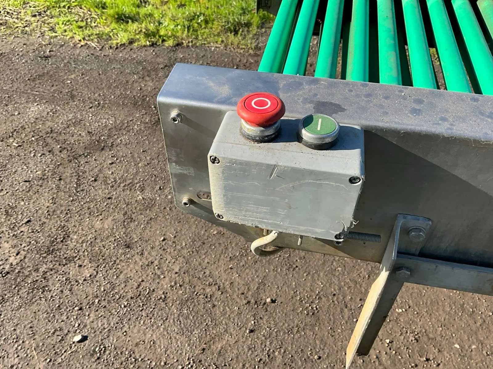 Bandbreedte 400mm, rollen 25mm doorsnee, borstelbaan, verrijdbaar, hoek verstelbaar, 400V 16A 5-polige stekker in, 2x 400V 16A 5-polige stekker uit, 230V stopcontact, RVS Lengte: 460cm Breedte: 80cm Hoogte: 150cm