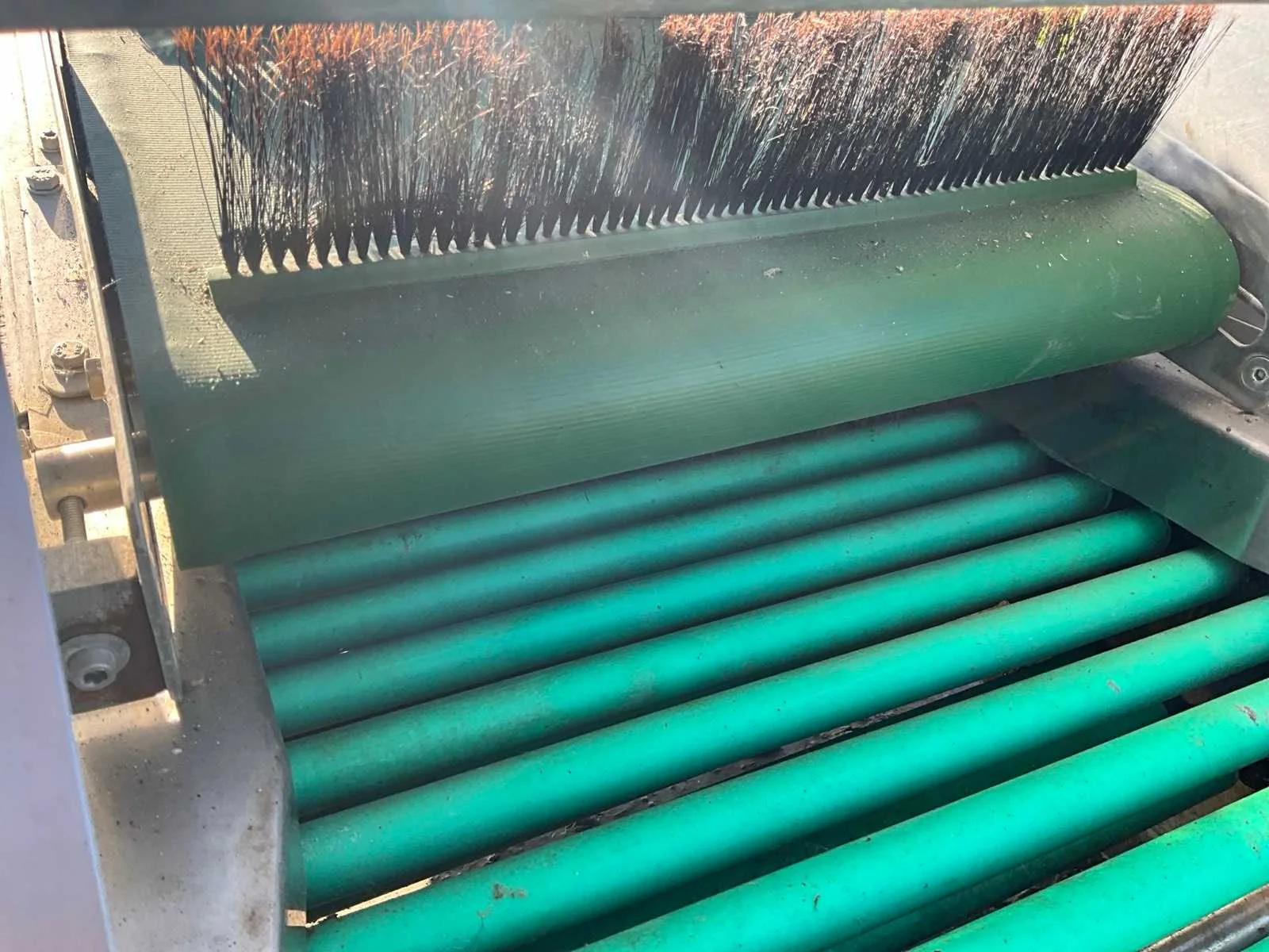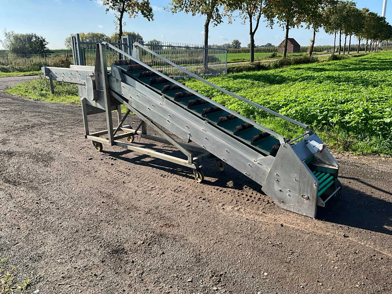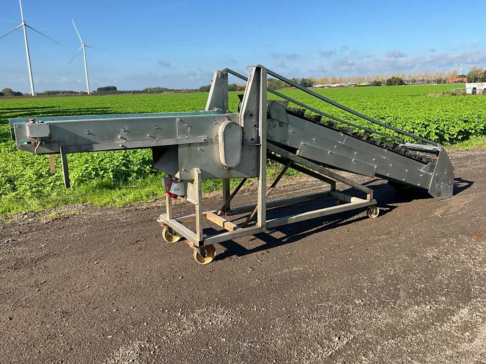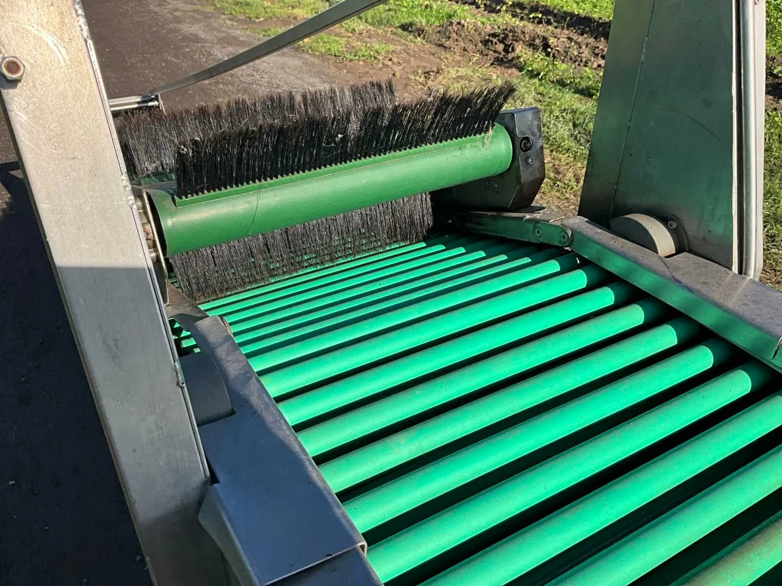 Bandbreedte 400mm, rollen 25mm doorsnee, borstelbaan, verrijdbaar, hoek verstelbaar, 400V 16A 5-polige stekker in, 2x 400V 16A 5-polige stekker uit, 230V stopcontact, RVS Lengte: 460cm Breedte: 80cm Hoogte: 150cm