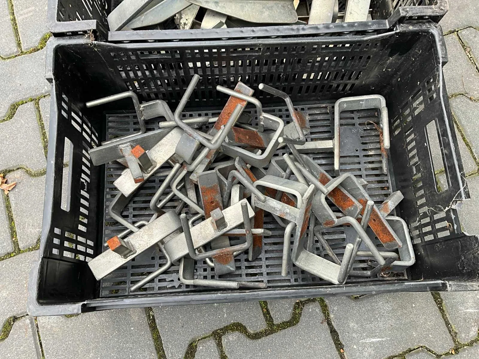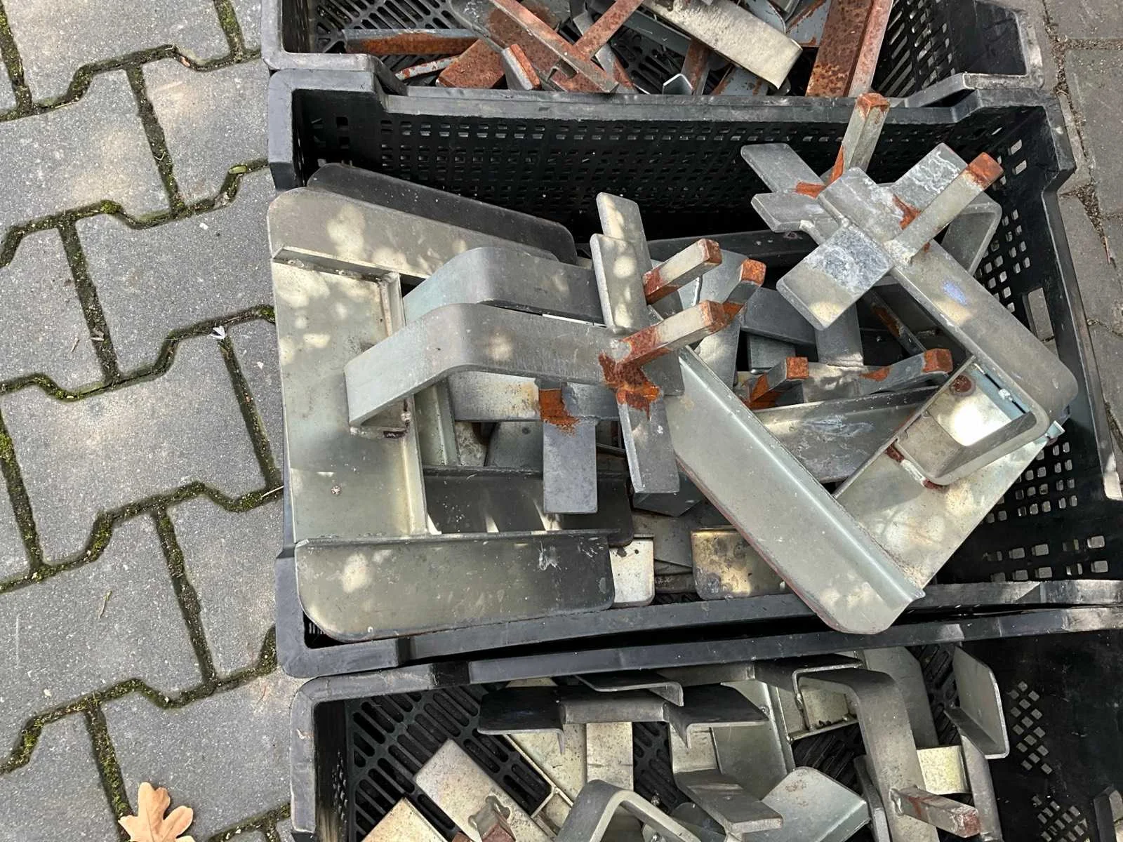 Diverse pothouders voor hero oppotmachine, op maat gesorteerd , diverse maten grondboor (maat 16, 15, 13, 10,5, 9, 8, 8,5, 5, 5,5, 6,5, 3,5, 2) diverse aandrukplaten, maten 13 6,5 verstelbaar, 14, 16, 9, 17, 12, 20, inclusief kratten (600x400mm) Merk: Heto