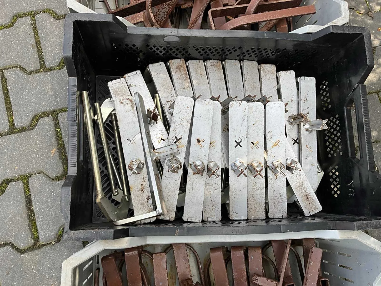 Diverse dubbele pothouders voor javo oppotmachine, 3 krat geschikt voor potten naast elkaar, 10x krat achter elkaar, op maat gesorteerd, maten: 8,5; 10,5, 7, 8, 11, 13, 8,5, 11, 10, 15, 14, 17, 17, inclusief kratten Merk: Javo