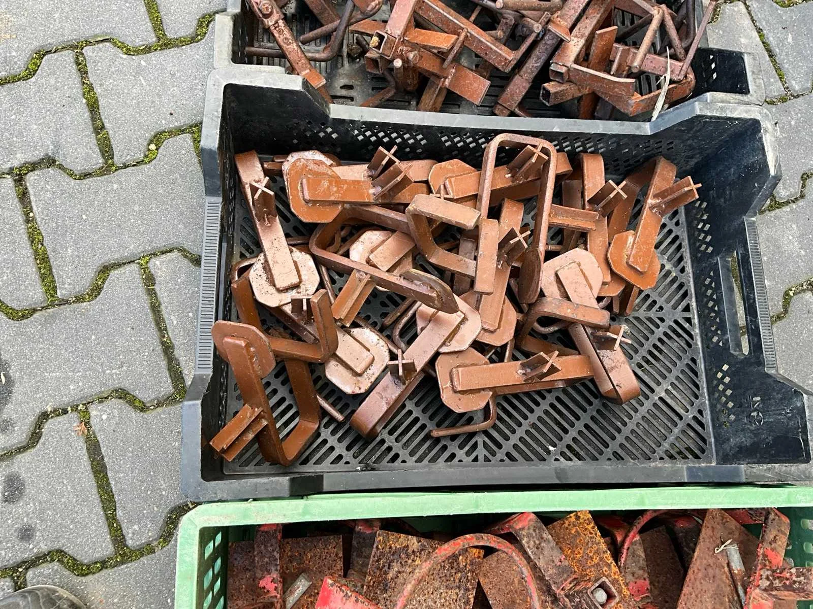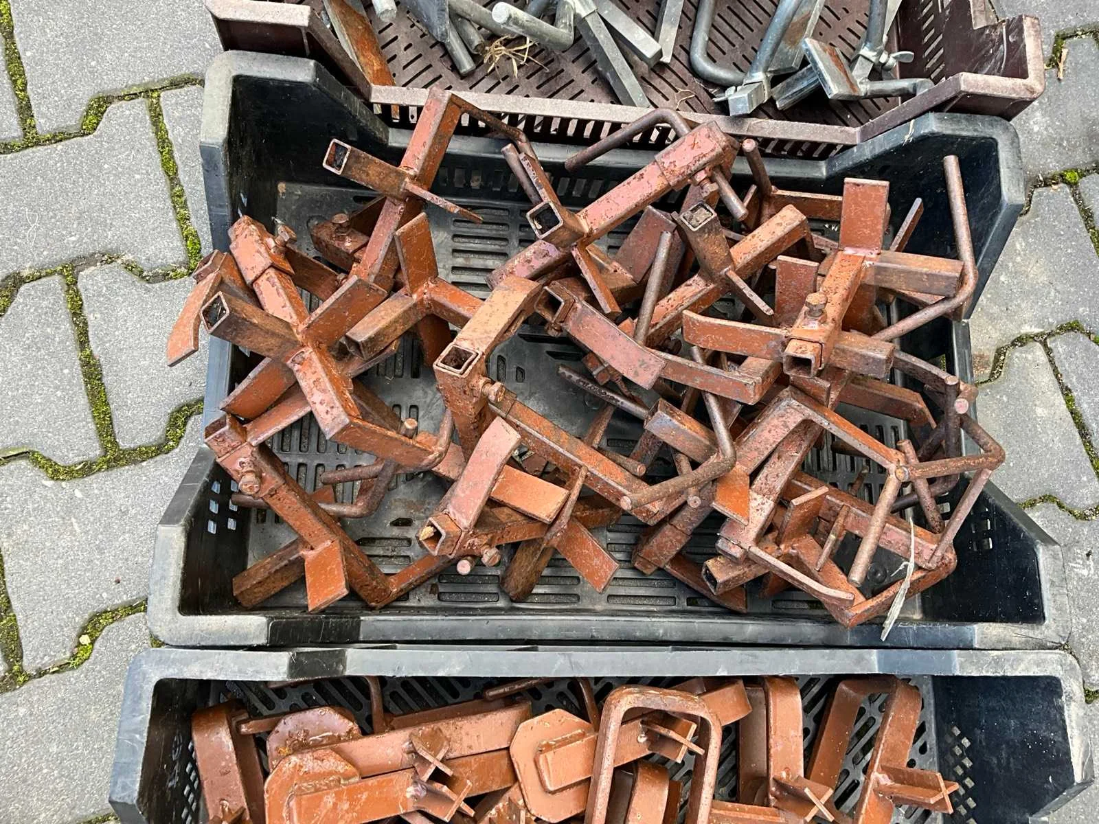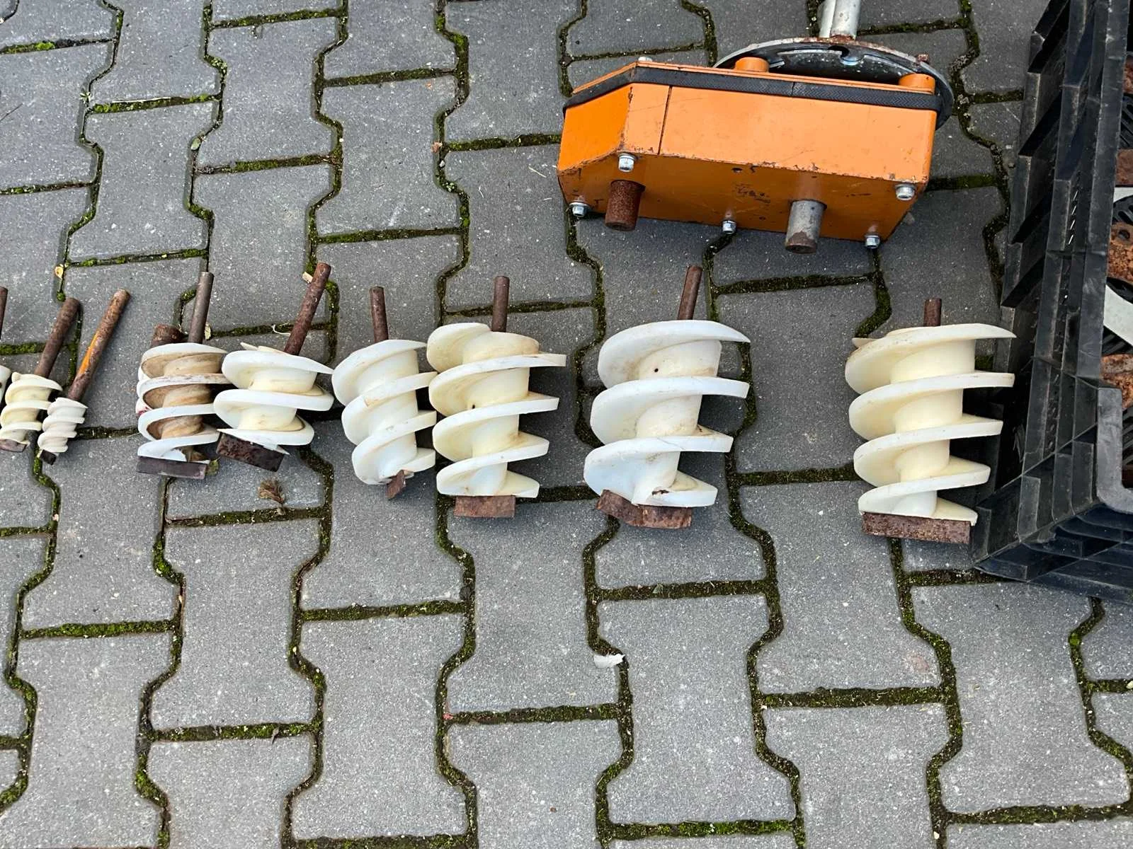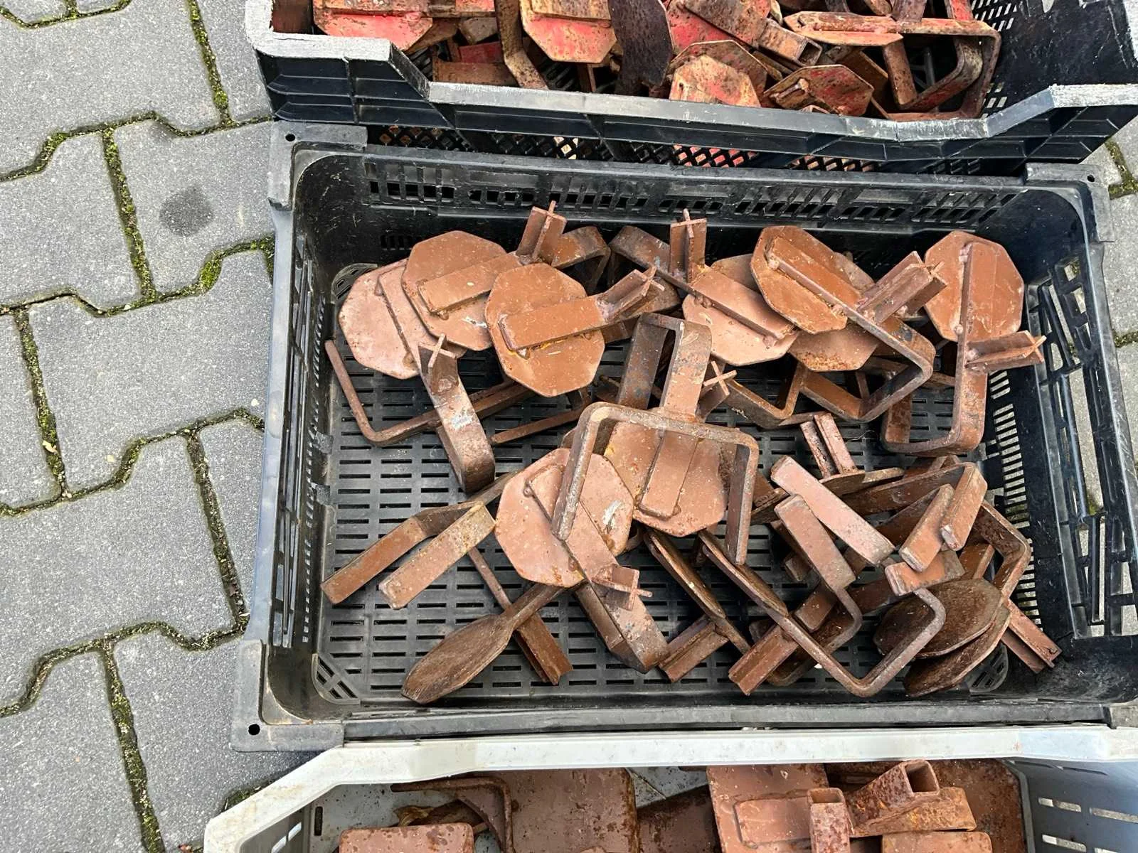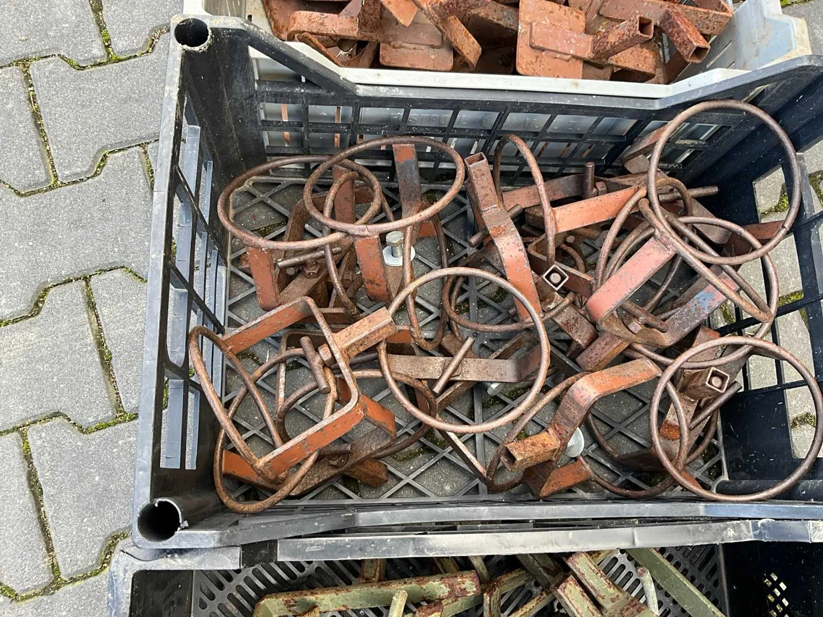 Diverse pothouders voor javo oppotmachine, op maat gesorteerd, maten:8; 7; 16,5; 15; 16; 11 verstelbaar; 17; 9; 14; 23; 11; 12; 13; 14; 24; 16; 10; 11; 15; 9,5; 15,5; 12; 10,5; 12,5; 12, inclusief kratten, diverse grondboren (maten 3,5; 4; 3; 5; 13; 13,5; 14; 15), Diverse aandrukplaten, dubbele boorkop Merk: Javo