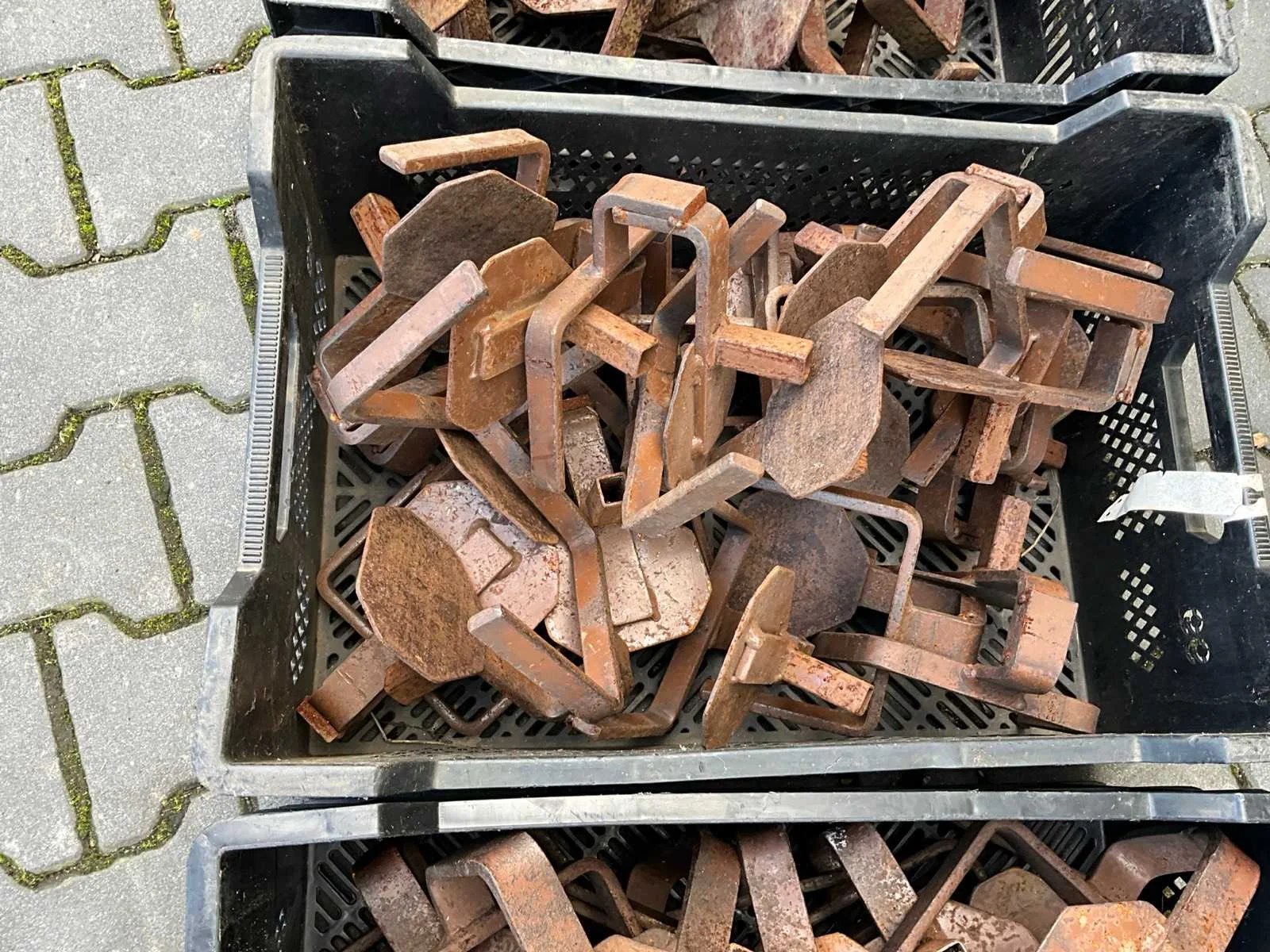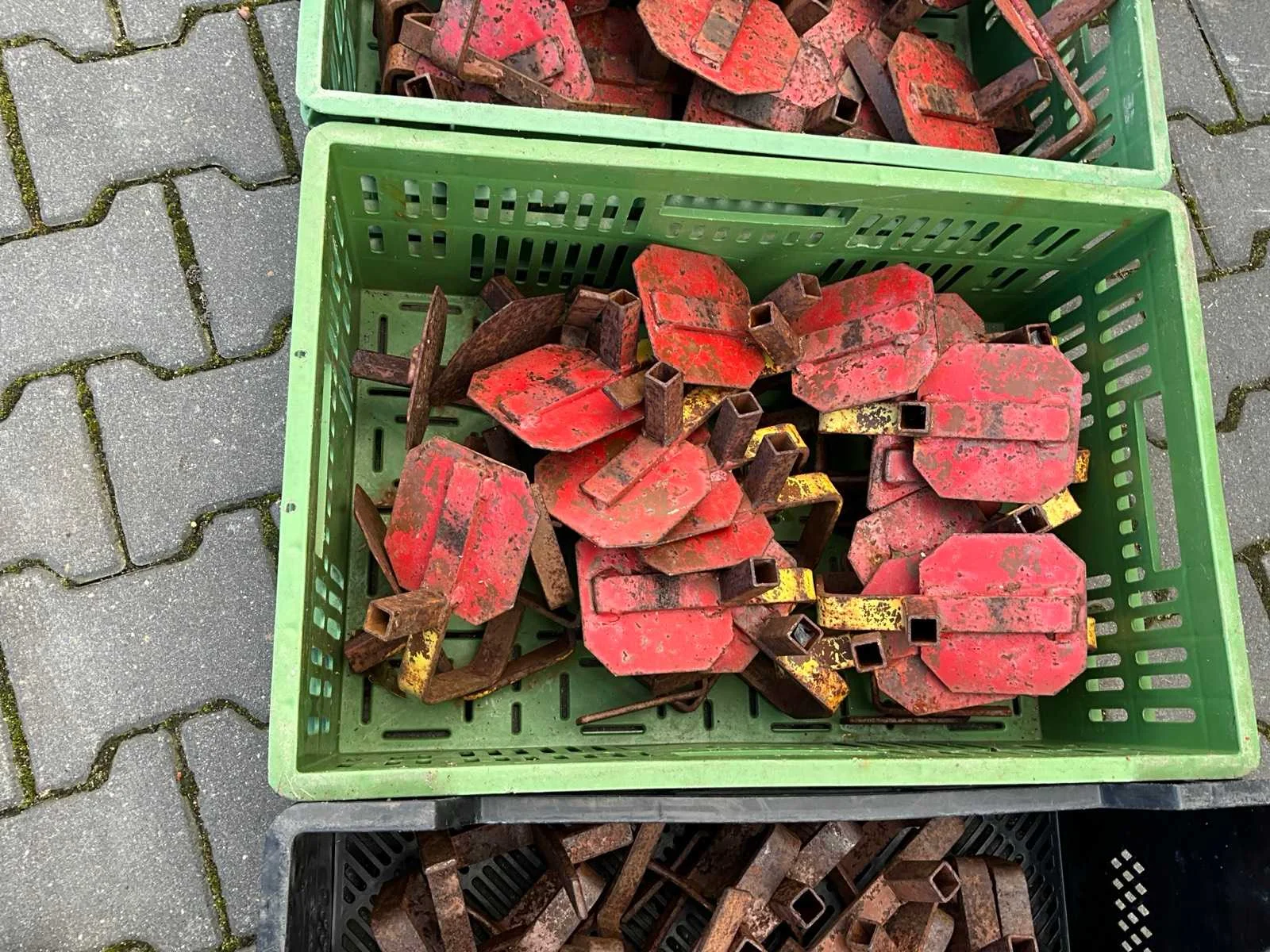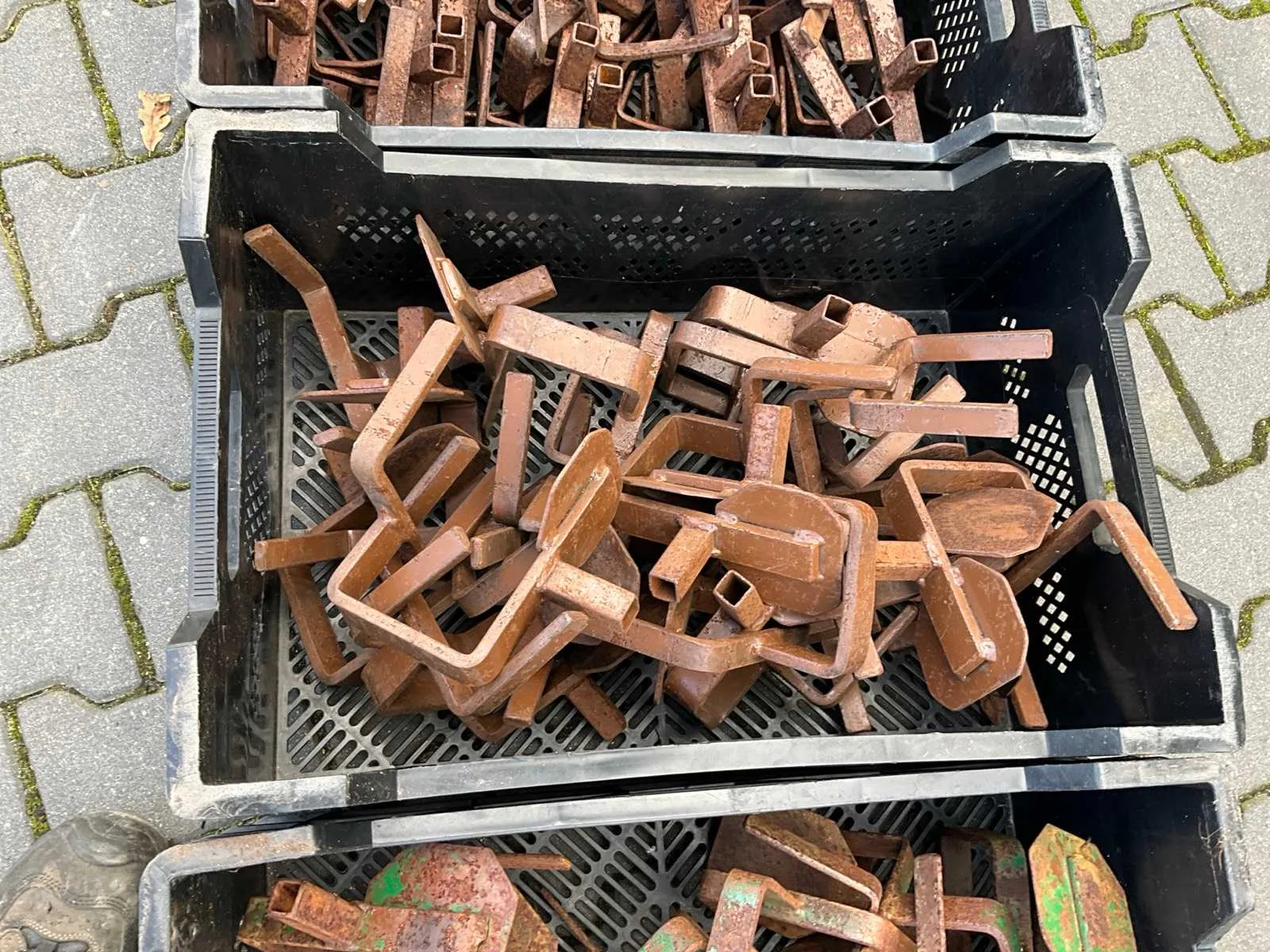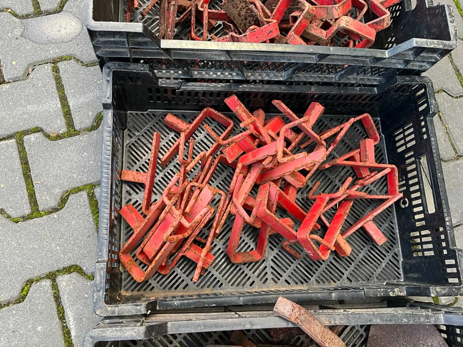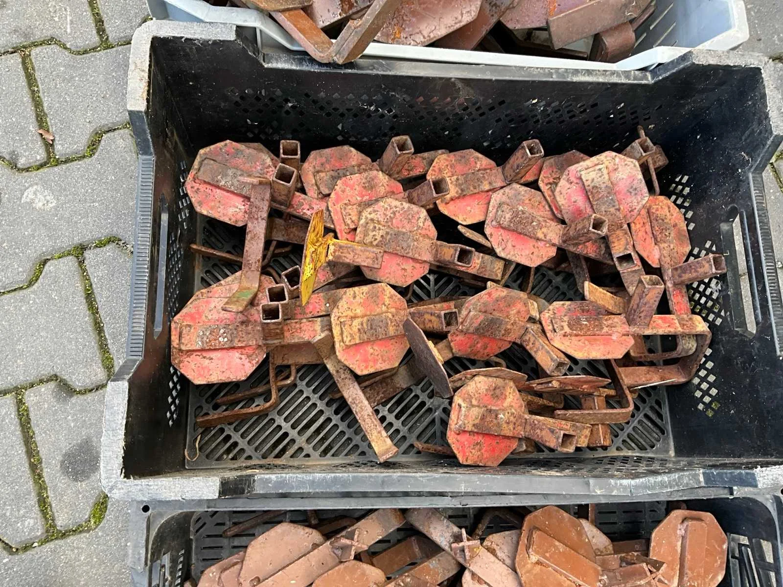 Diverse pothouders voor javo oppotmachine, op maat gesorteerd, maten:8; 7; 16,5; 15; 16; 11 verstelbaar; 17; 9; 14; 23; 11; 12; 13; 14; 24; 16; 10; 11; 15; 9,5; 15,5; 12; 10,5; 12,5; 12, inclusief kratten, diverse grondboren (maten 3,5; 4; 3; 5; 13; 13,5; 14; 15), Diverse aandrukplaten, dubbele boorkop Merk: Javo