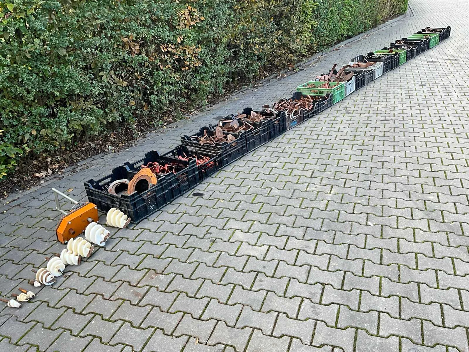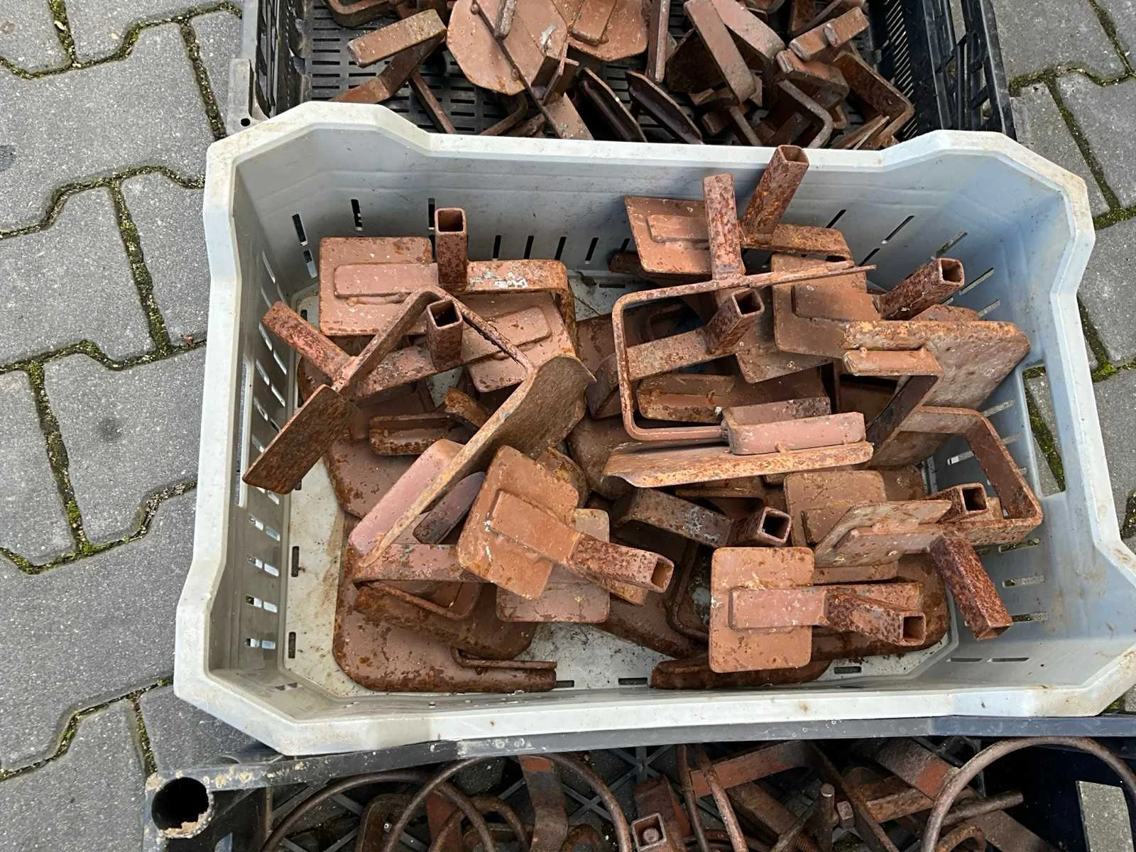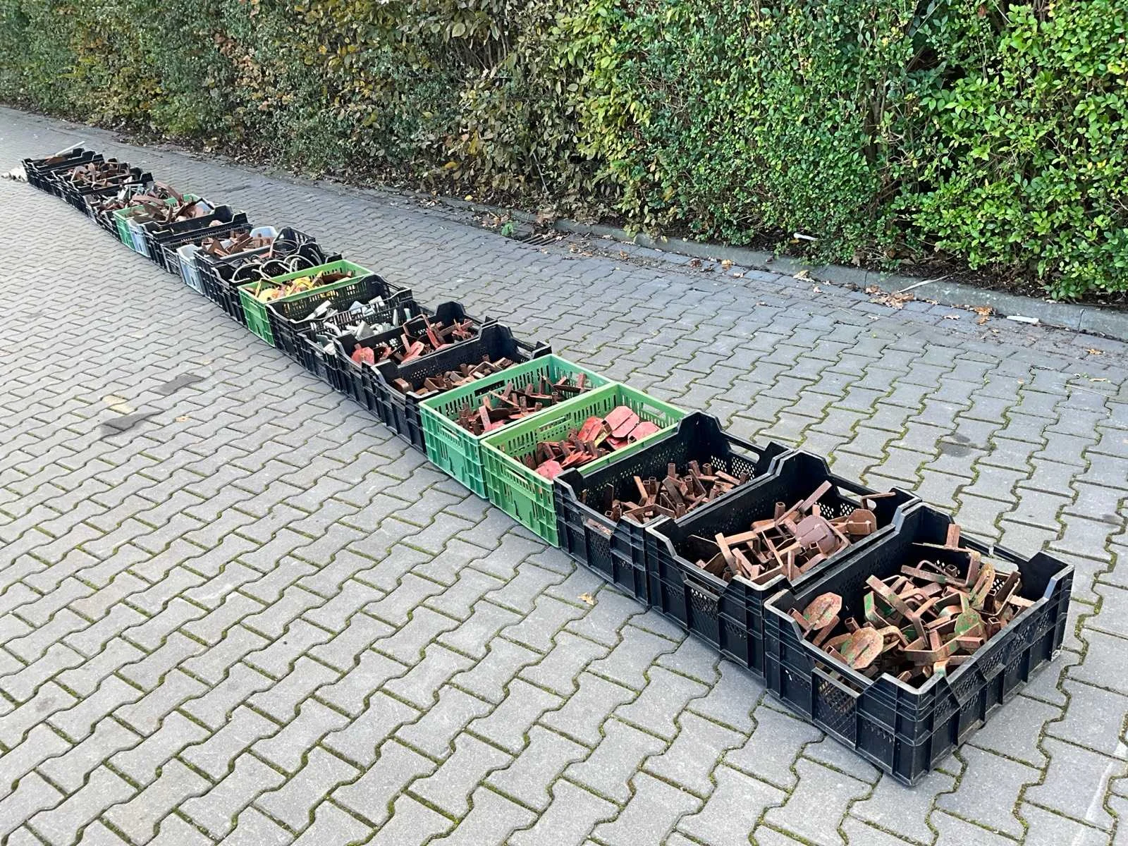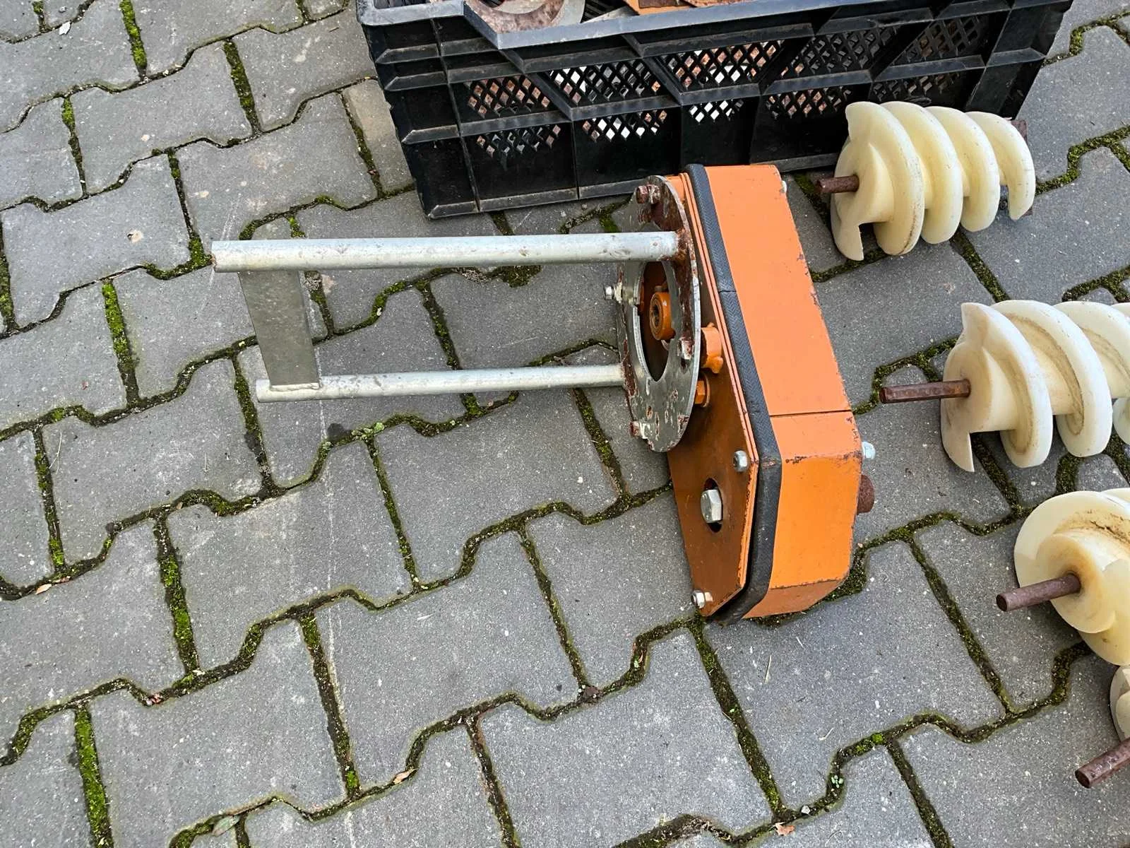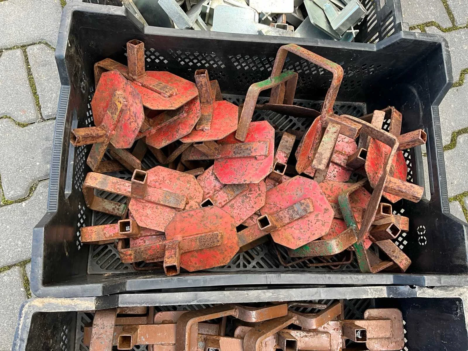 Diverse pothouders voor javo oppotmachine, op maat gesorteerd, maten:8; 7; 16,5; 15; 16; 11 verstelbaar; 17; 9; 14; 23; 11; 12; 13; 14; 24; 16; 10; 11; 15; 9,5; 15,5; 12; 10,5; 12,5; 12, inclusief kratten, diverse grondboren (maten 3,5; 4; 3; 5; 13; 13,5; 14; 15), Diverse aandrukplaten, dubbele boorkop Merk: Javo