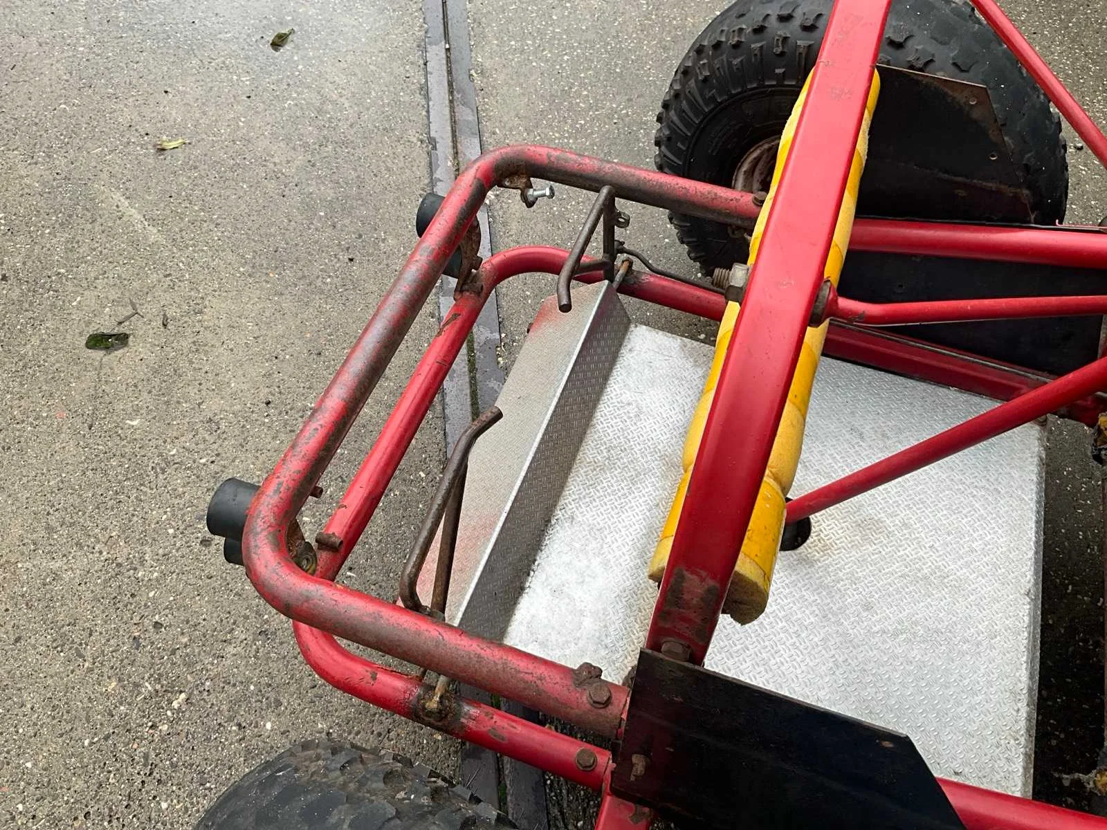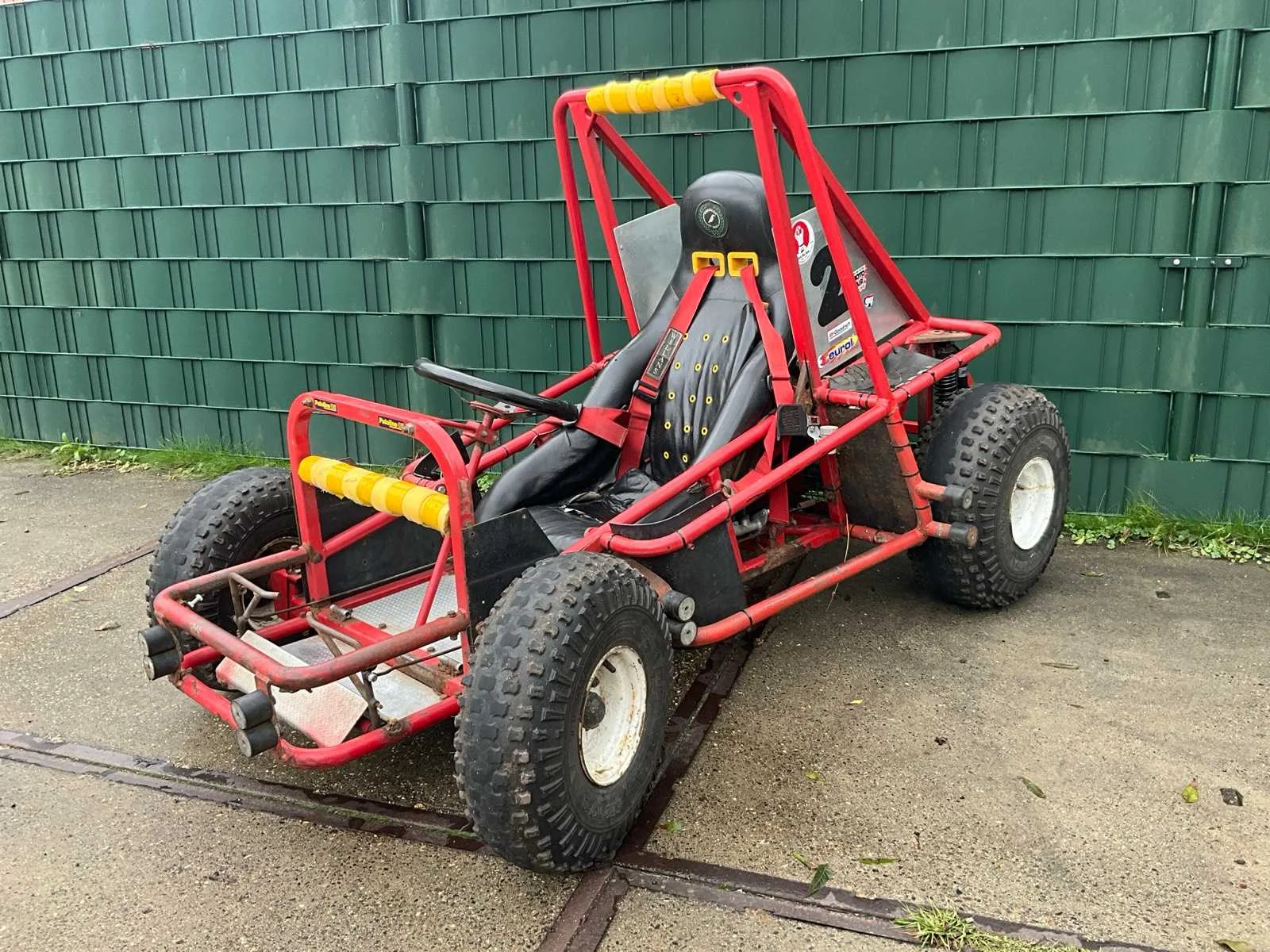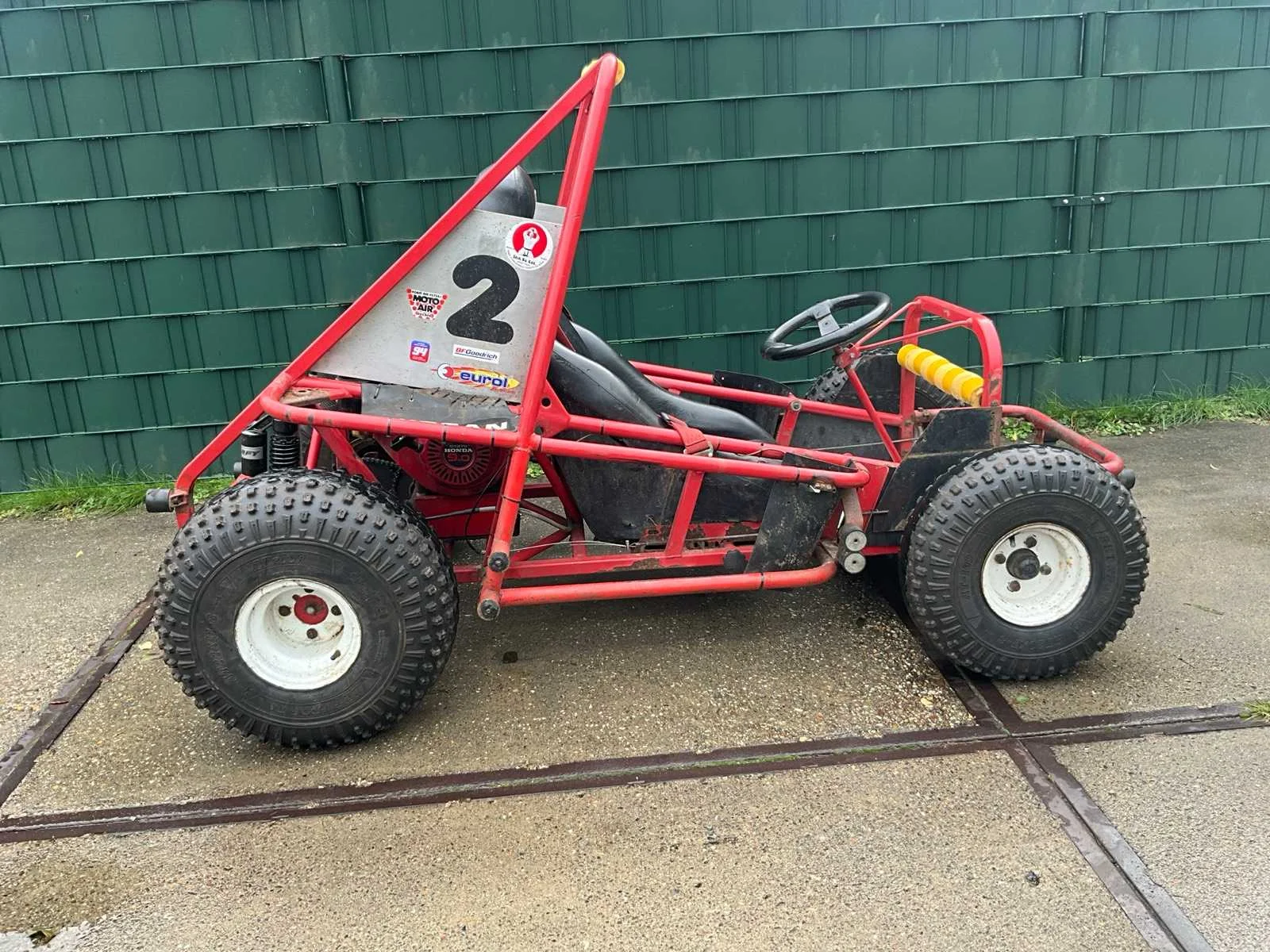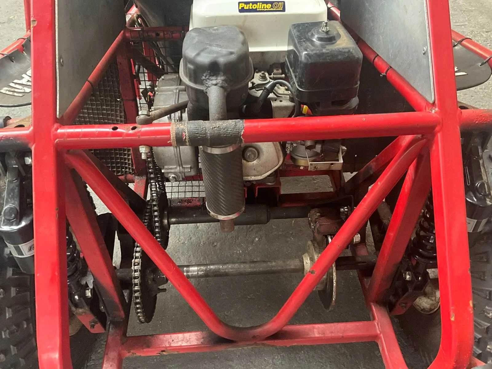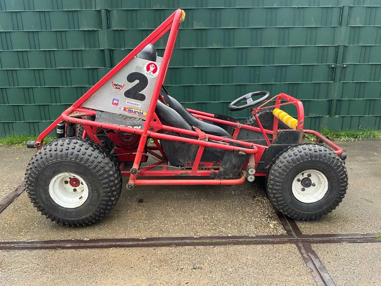 Crossbuggy/Crosskart voorzien van; Honda Motor-H GX270; Brandstoftype: Benzine; Capaciteit: 270 cm³; Aantal cilinders: 1; Vermogen: 6.2 kW; Maximaal vermogen: 8.3 pk; Type koeling: Lucht; Krukas type: Recht; Krukas diameter: 25 mm; Krukas stand: Horizontaal; Met brandstoftank: Ja; Brandstoftank capaciteit: 5.3; Start en loopt Type: Crossbuggy Vermogen (kW): 6,2kW Vermogen (pk): 8,3 Kleur: Rood Lengte: 215cm Breedte: 120cm Hoogte: 130cm Materiaal: Metaal