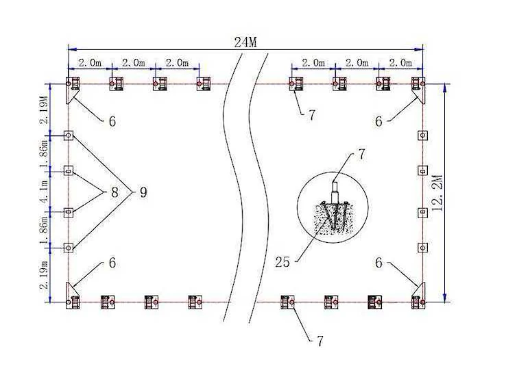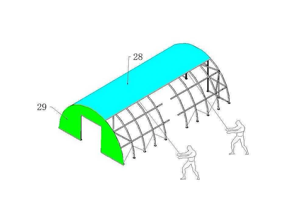 Opslagtent / garage; v.v. buizensysteem; gegalvaniseerd Ruimte tussen bogen 2400 mm Maat boog Φ 56x86x2 mm Maat gording Φ 48x1,5 mm; deur (afm. 396x451 cm); materiaal 420 gram PVC; kleur wit; inclusief montage handleiding; ongebruikt in 2 metalen kisten Zie voor meer info downloads; Transportafmeting metalen krat: 2950x750x1000 mm (lxbxh) Merk: Easy-Going Type: (24x12,20x6,10 meter) Bouwjaar: 2025 Eigen gewicht: 2240kg Totale afmeting L: 24000mm Totale afmeting Breedte: 12100mm Totale afmeting Hoogte: 6100mm GS Code: 63062200